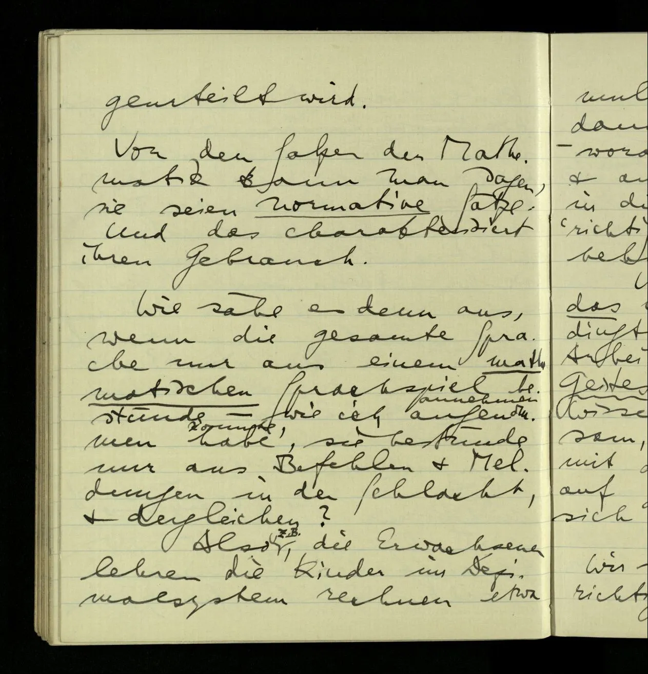 30.09.1940 Zu sagen, Mathematik beruhe auf Erfahrung, wäre als sagte man die Nützlichkeit der Erfahrung beruhe auf Erfahrung. Oder: man denke, weil sich Denken als nützlich erwiesen habe.