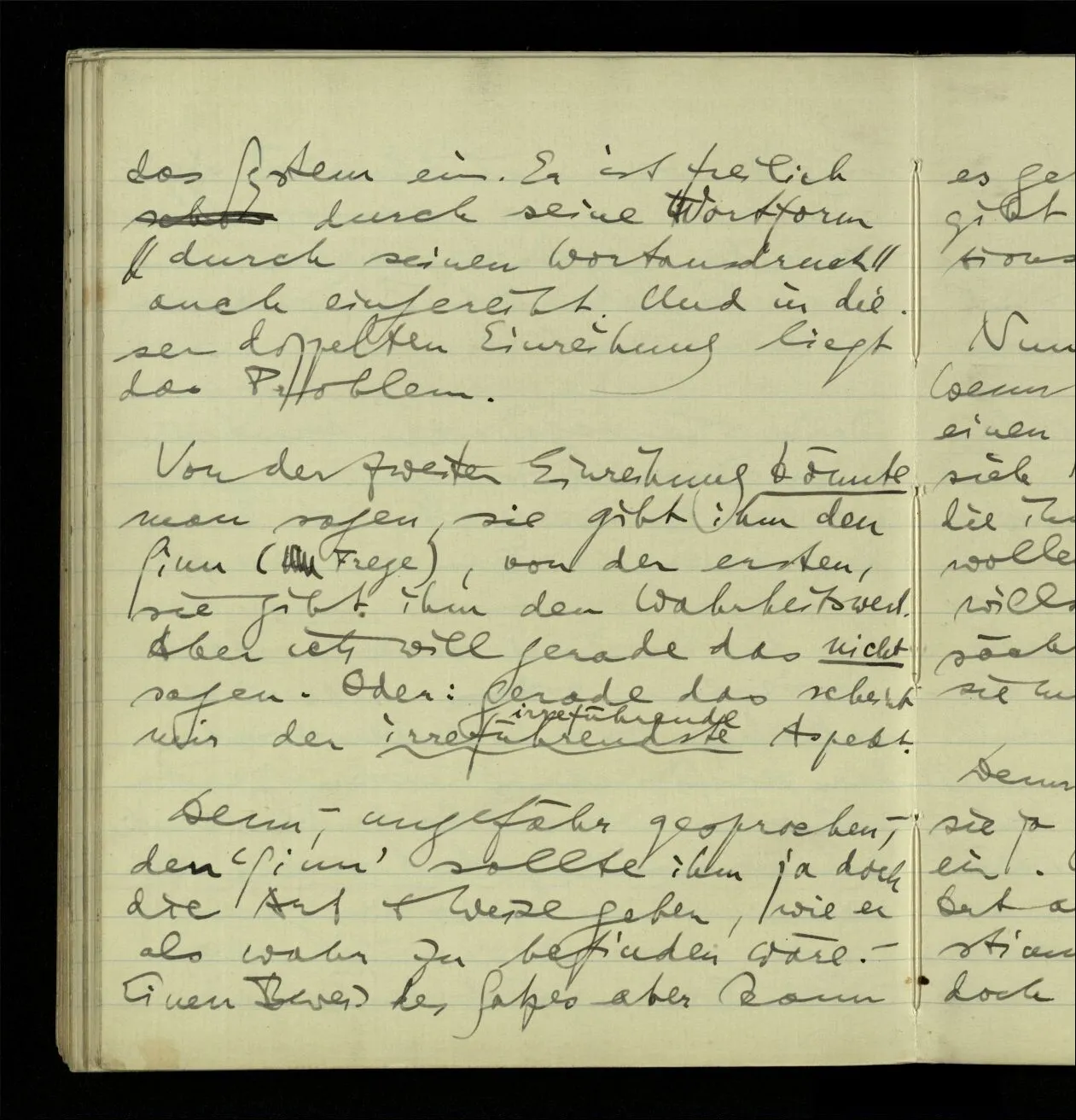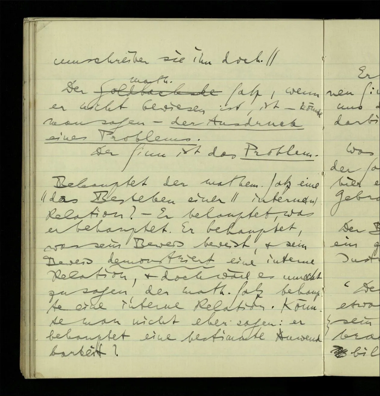 Der math. Satz, wenn er nicht bewiesen ist, ist – könnte man sagen – der Ausdruck eines Problems. Der Sinn ist das Problem.