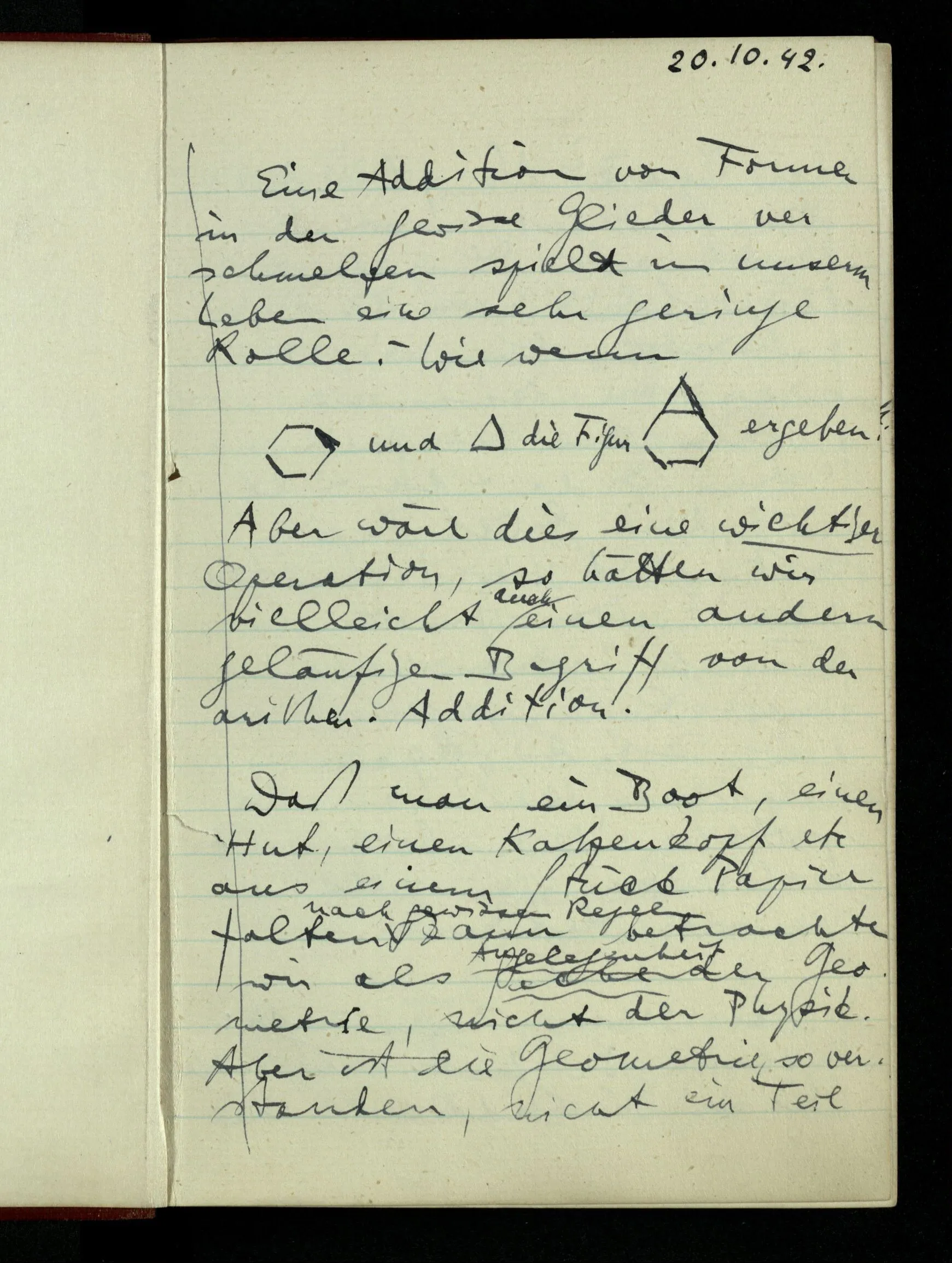 20.10.1942 Eine Addition von Formen in der gewisse Glieder verschmelzen spielt in unserm Leben eine sehr geringe Rolle. – Wie wenn