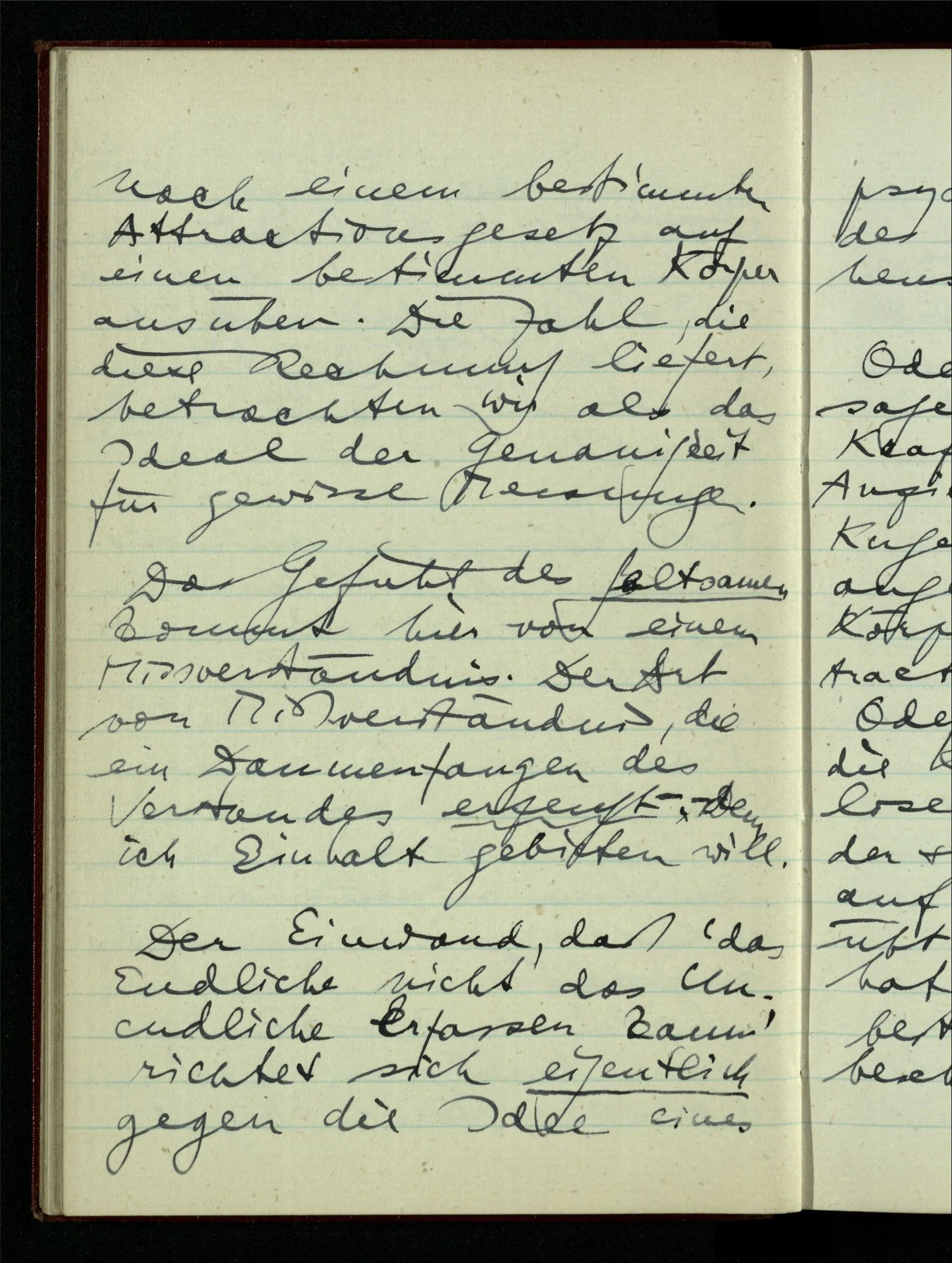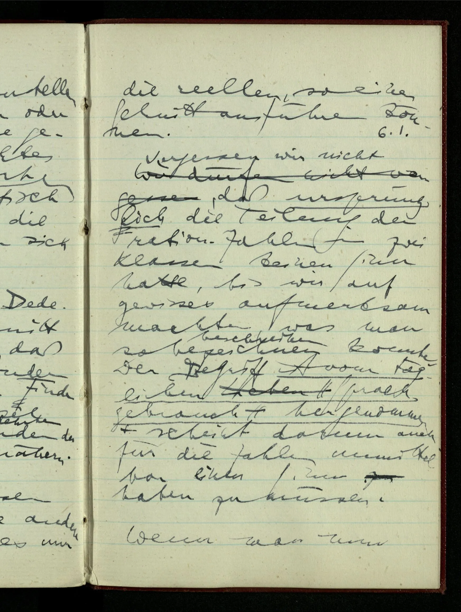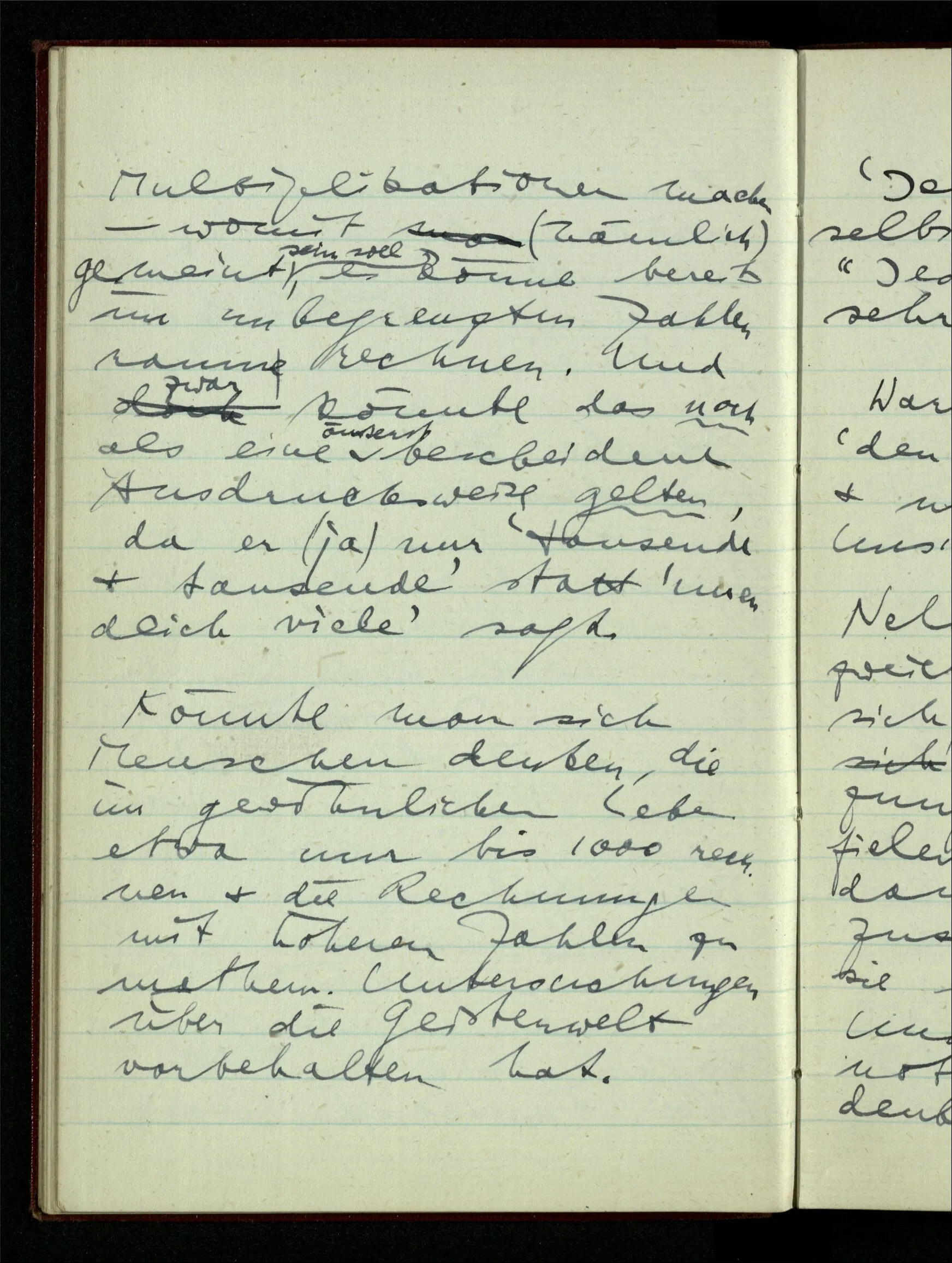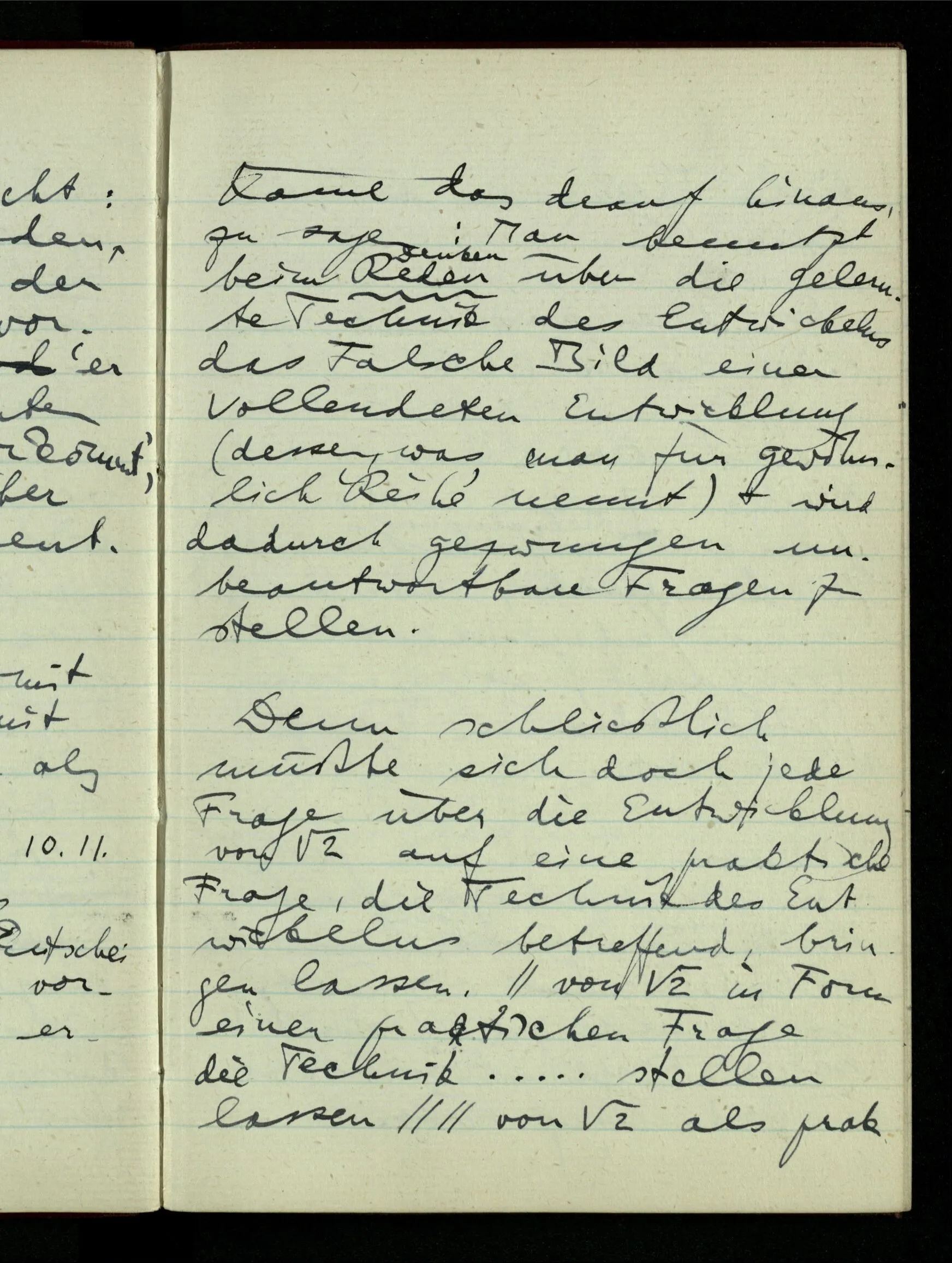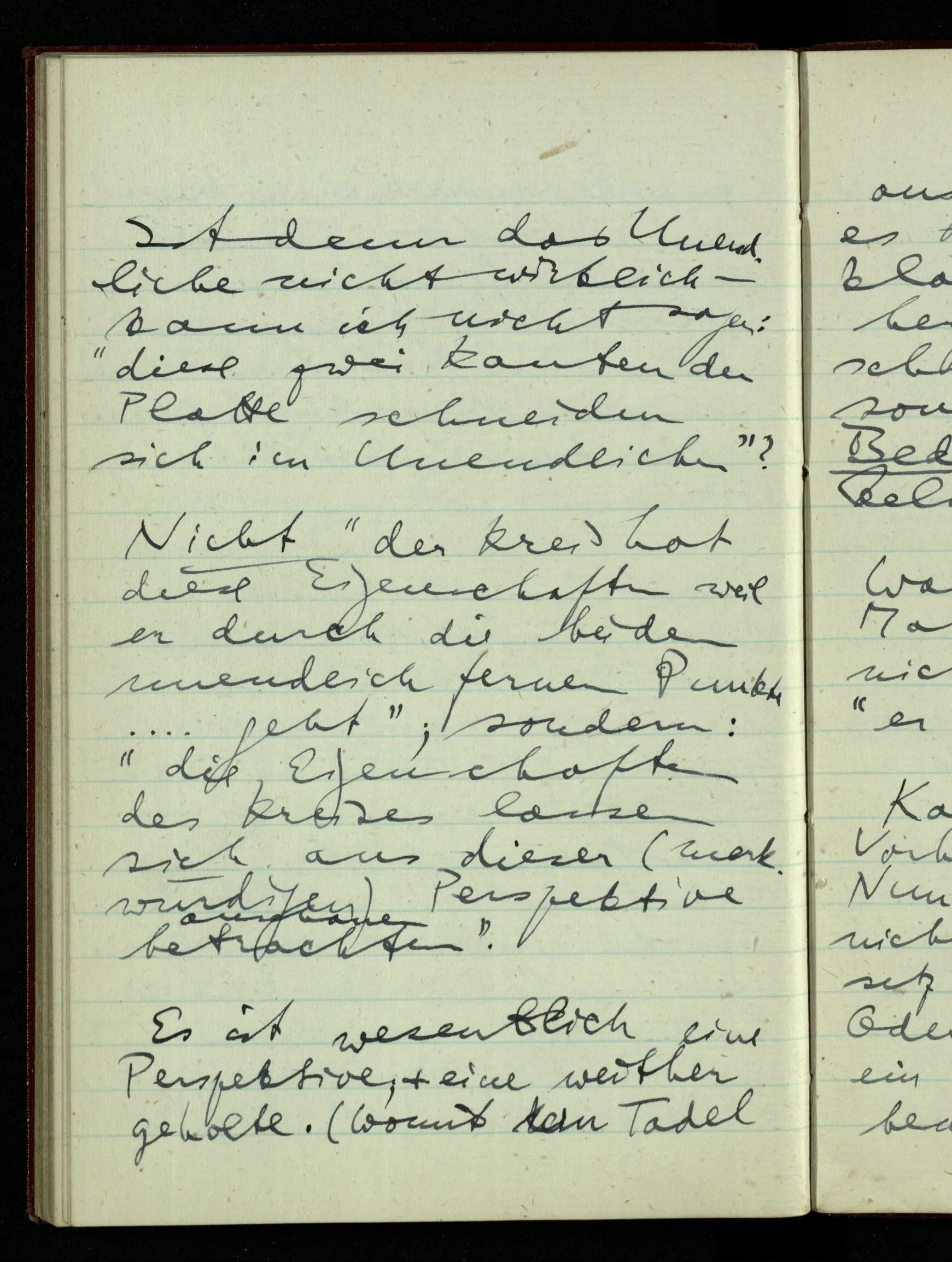 23.12.1942 Ich will, daß alle Zeichnungen, die aus diskreten Punkten & Strichen bestehen, wie sie in den Büchern die Lehre von den irrationalen Zahlen, des Limes, der Stätigkeit, etc. begleiten, sich auf die Wahl diskreter Zahlen & Zahlenkombinationen beziehen, & nicht auf Funktionen, irrationale Zahlen, etc.