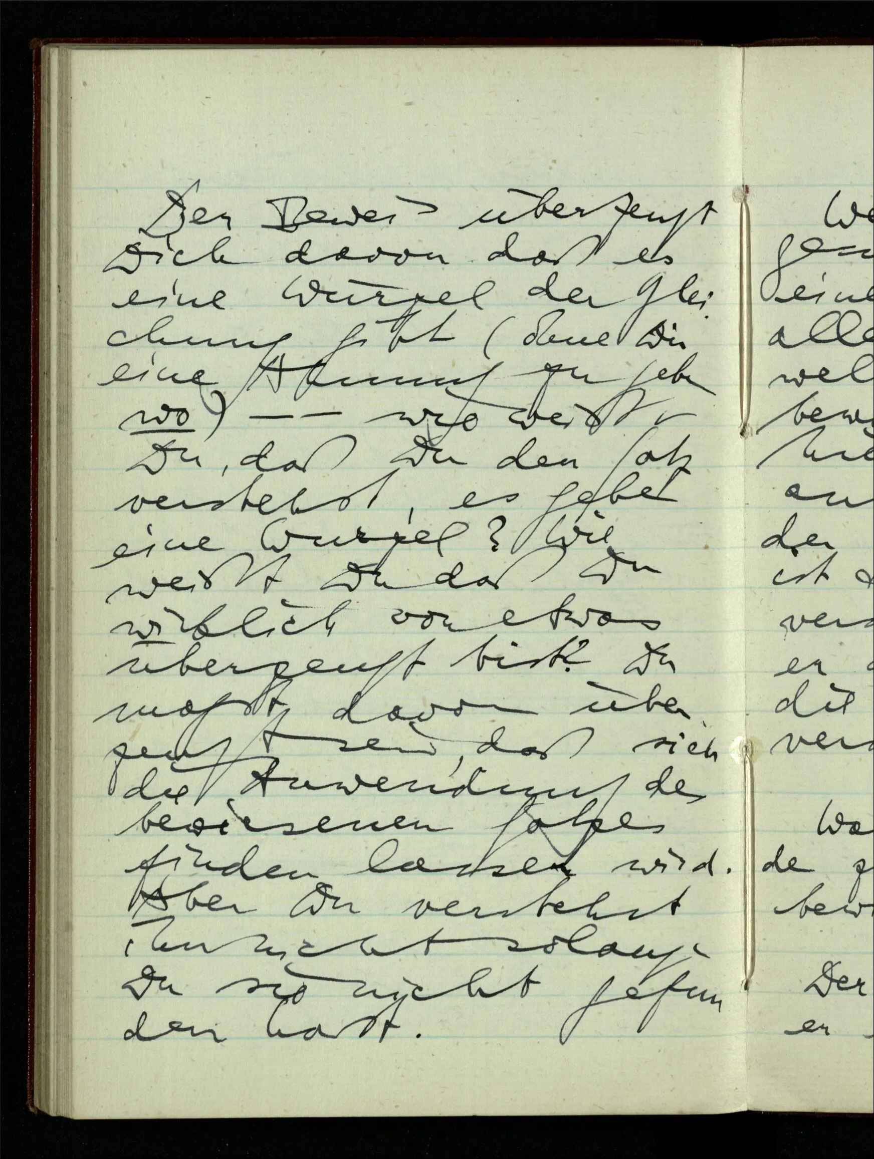 Die Kontinuität des Fadens soll so erklärt werden: daß er, gleichsam, nichts von der einen Seite auf die andere durchläßt.