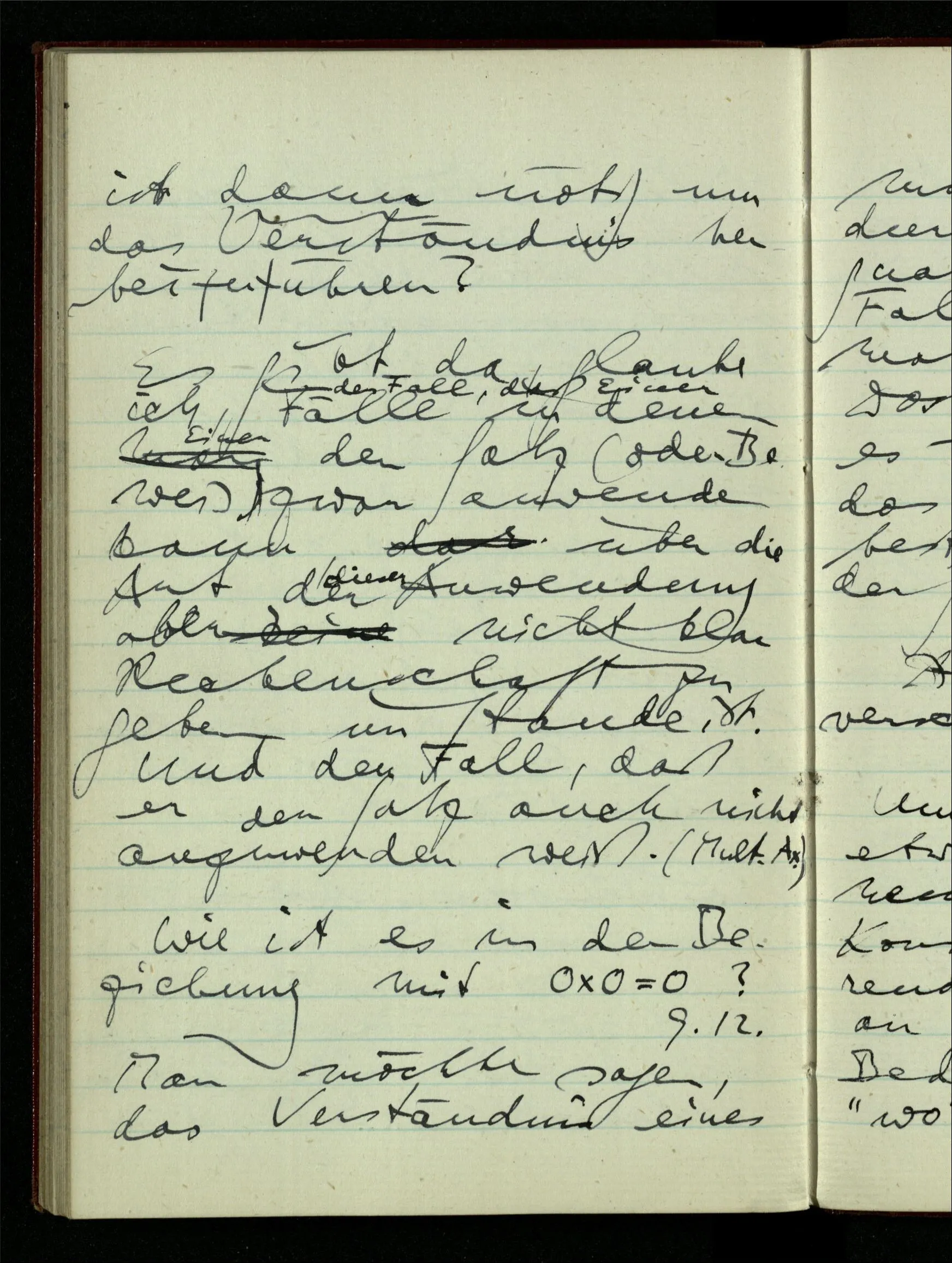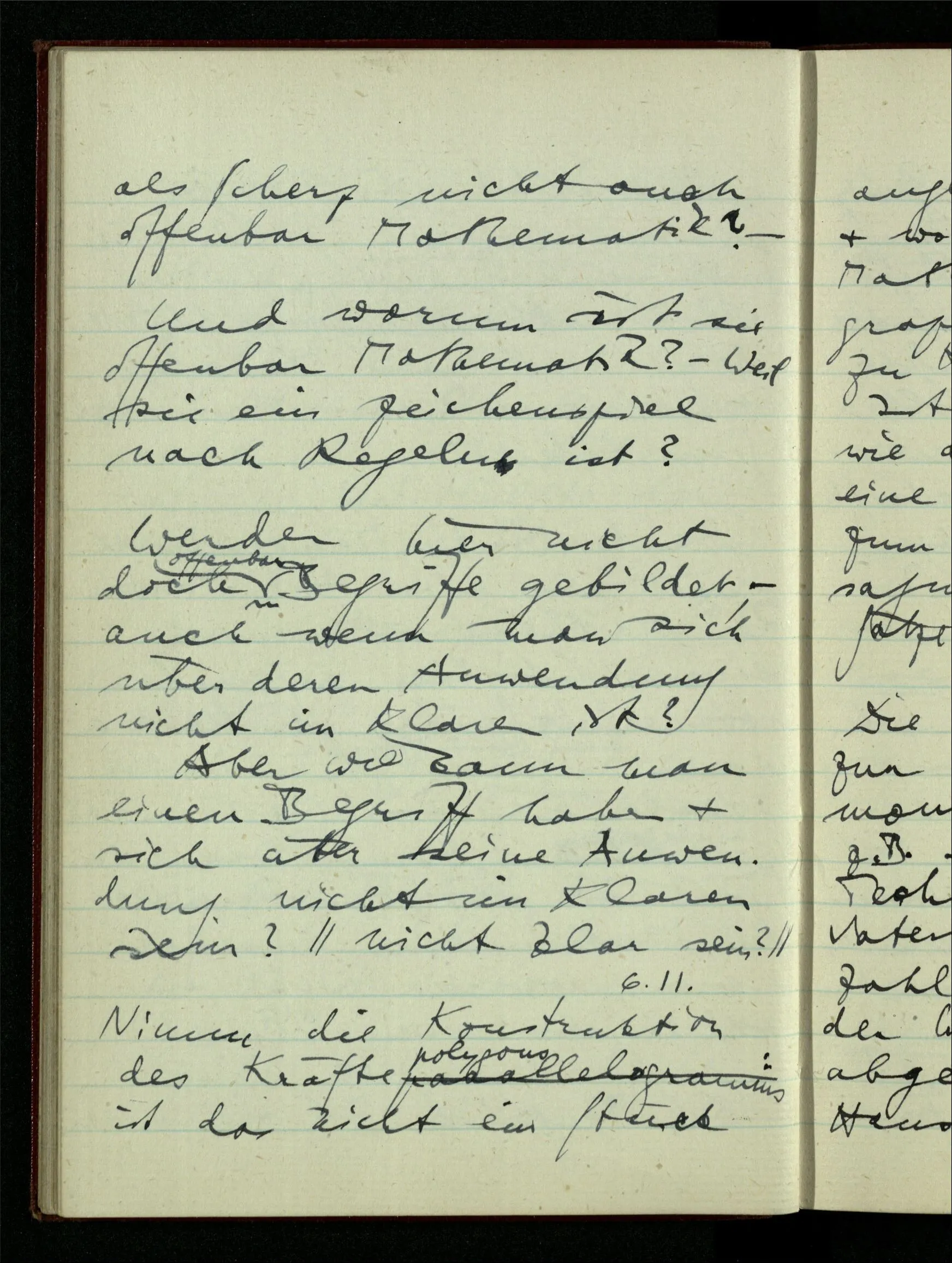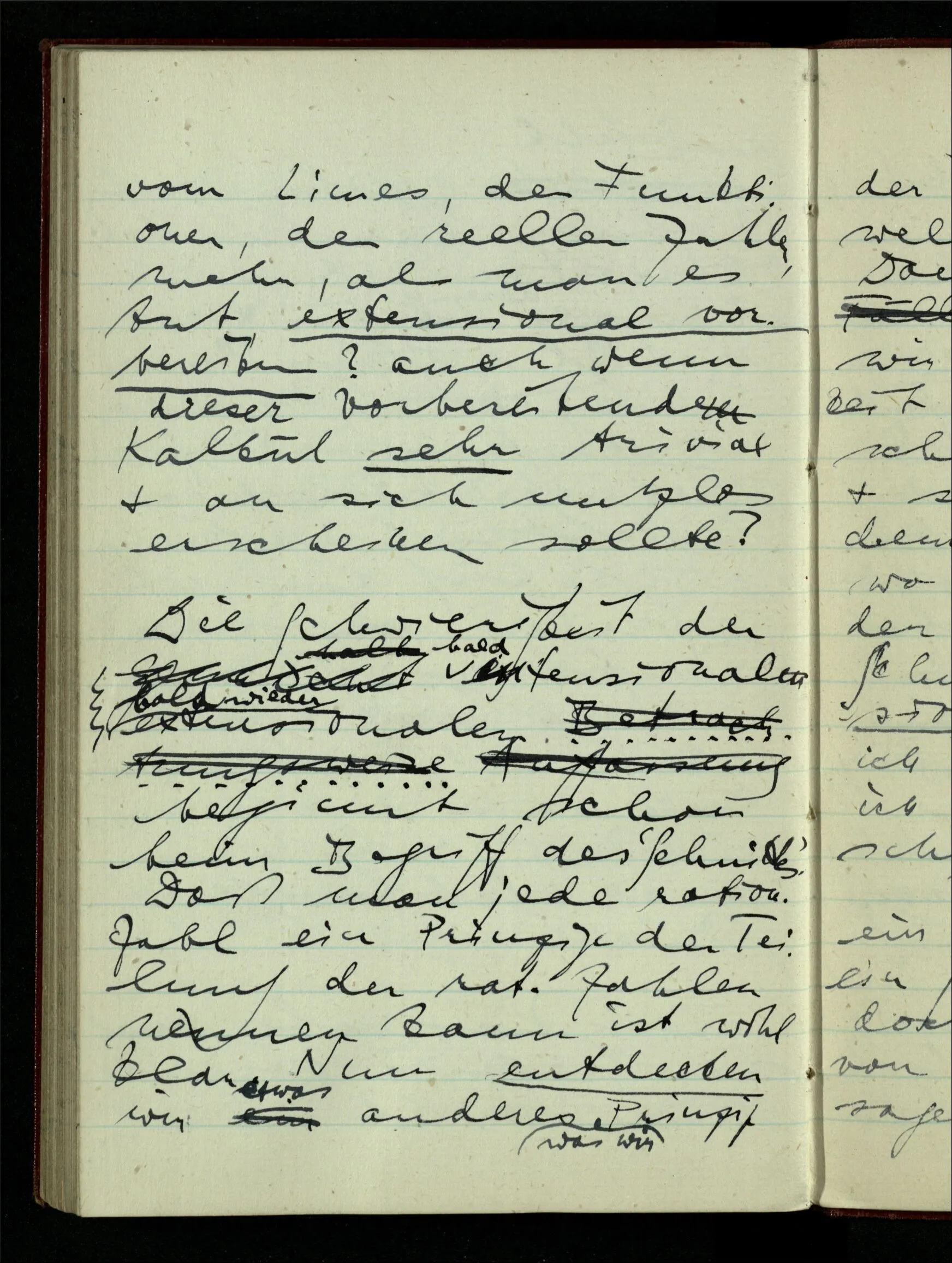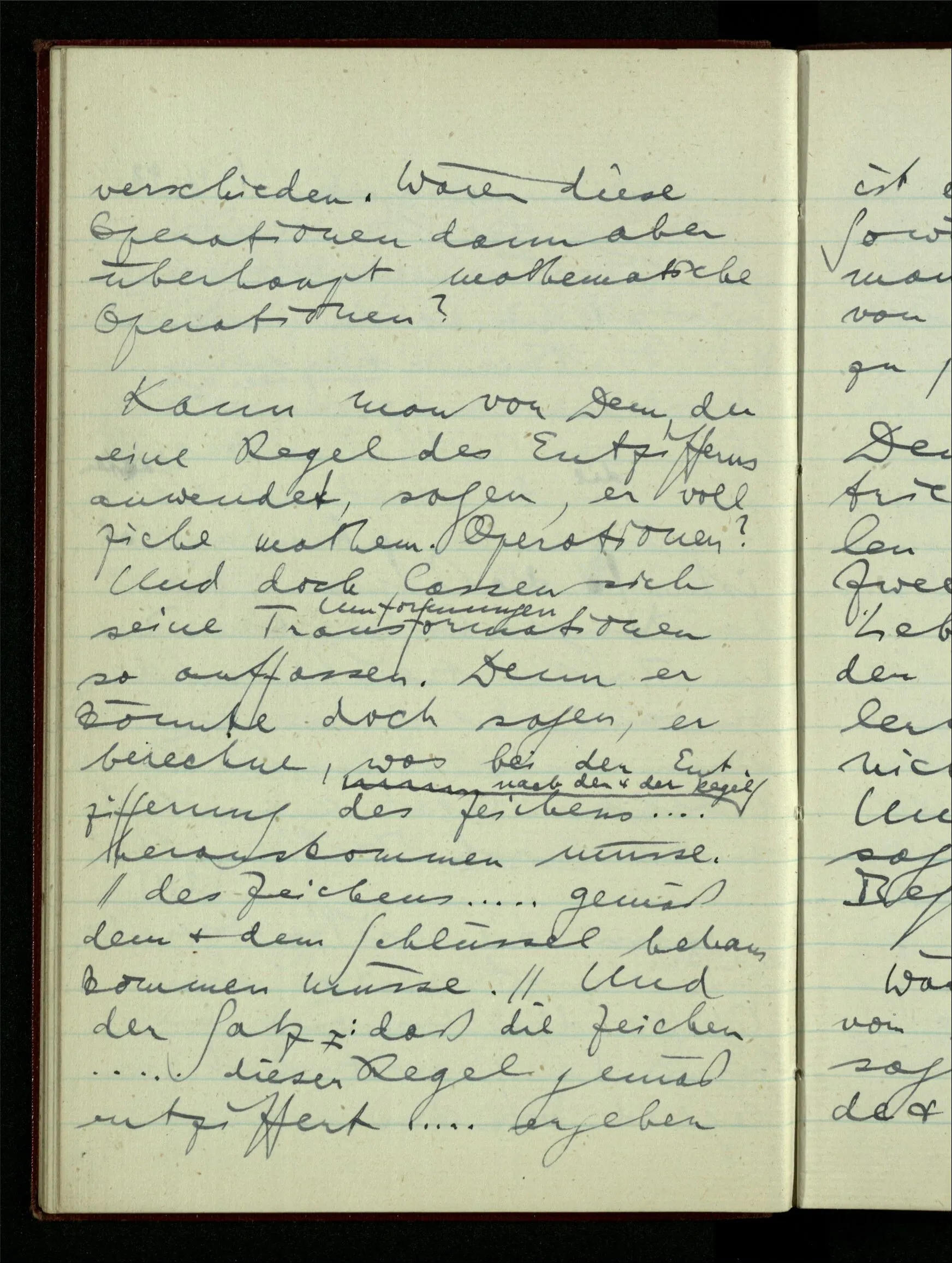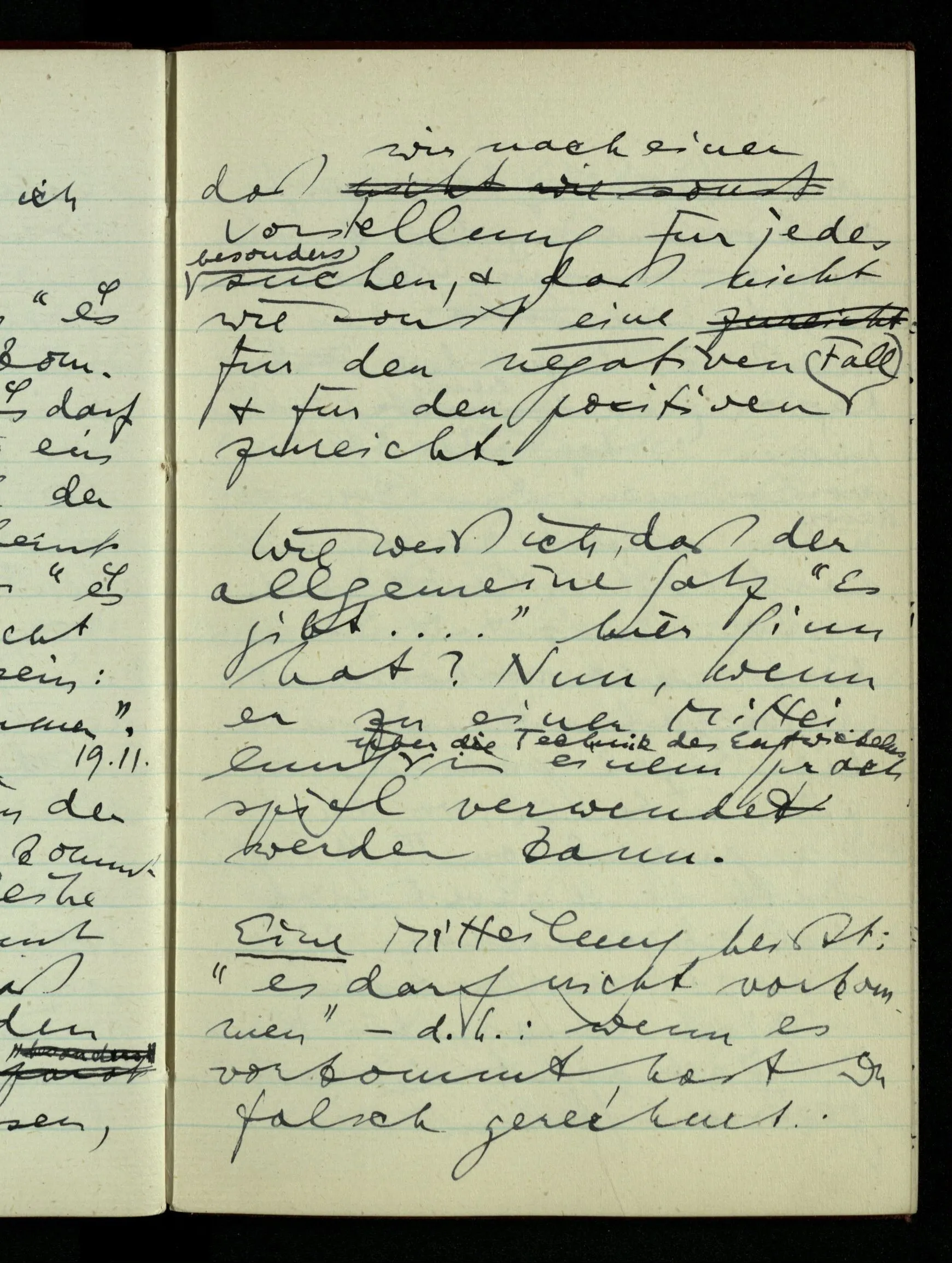 29.12.1942 Was an meinen Spekulationen über einen extensiven Kalkül, der sich mit dem der einzelnen Funktionen verbinden ließe, nicht in Ordnung ist: ich bin ganz unklar darüber, was die Anwendung so eines Kalküls unabhängig von den Funktionen sein könnte.