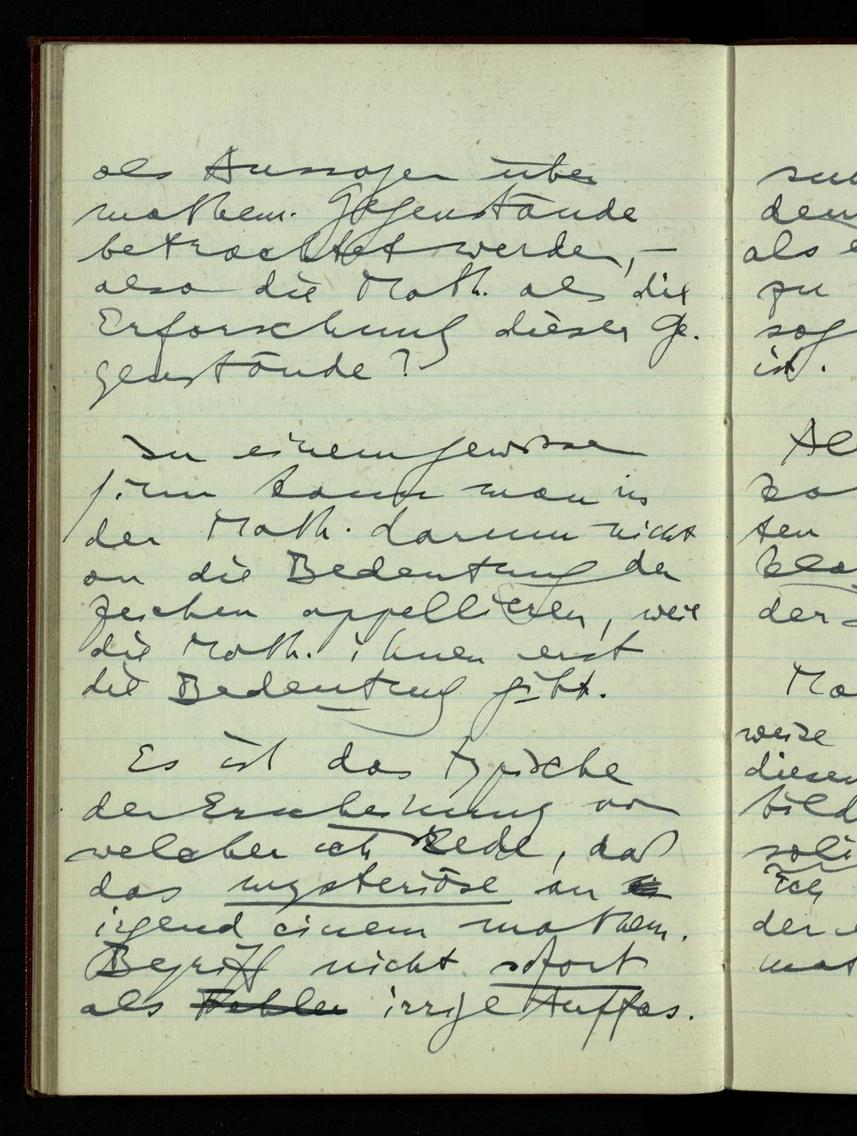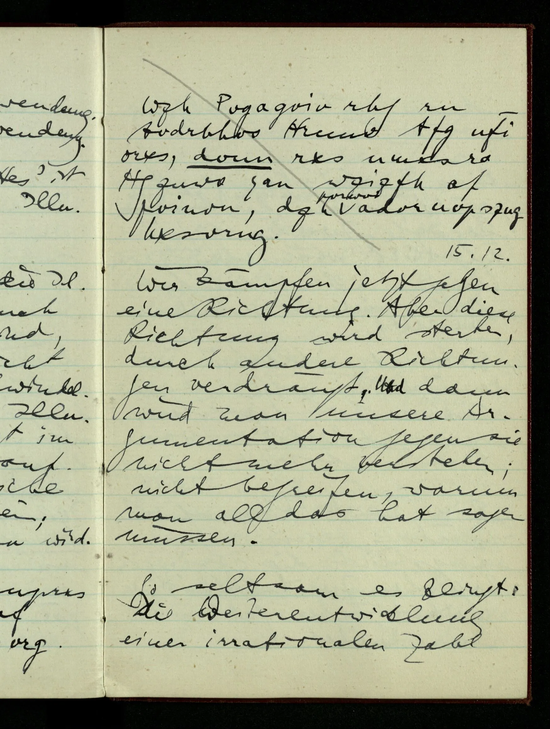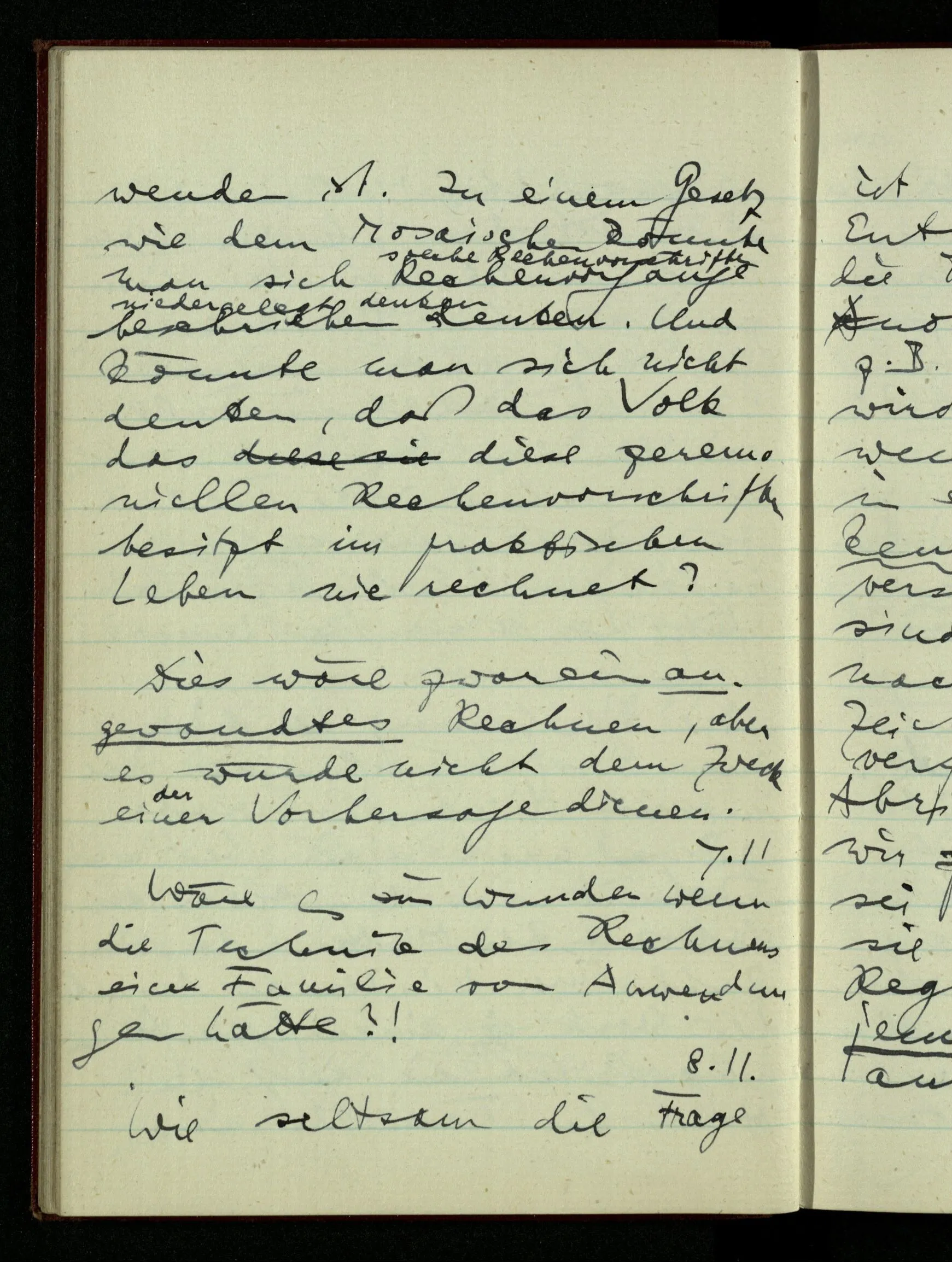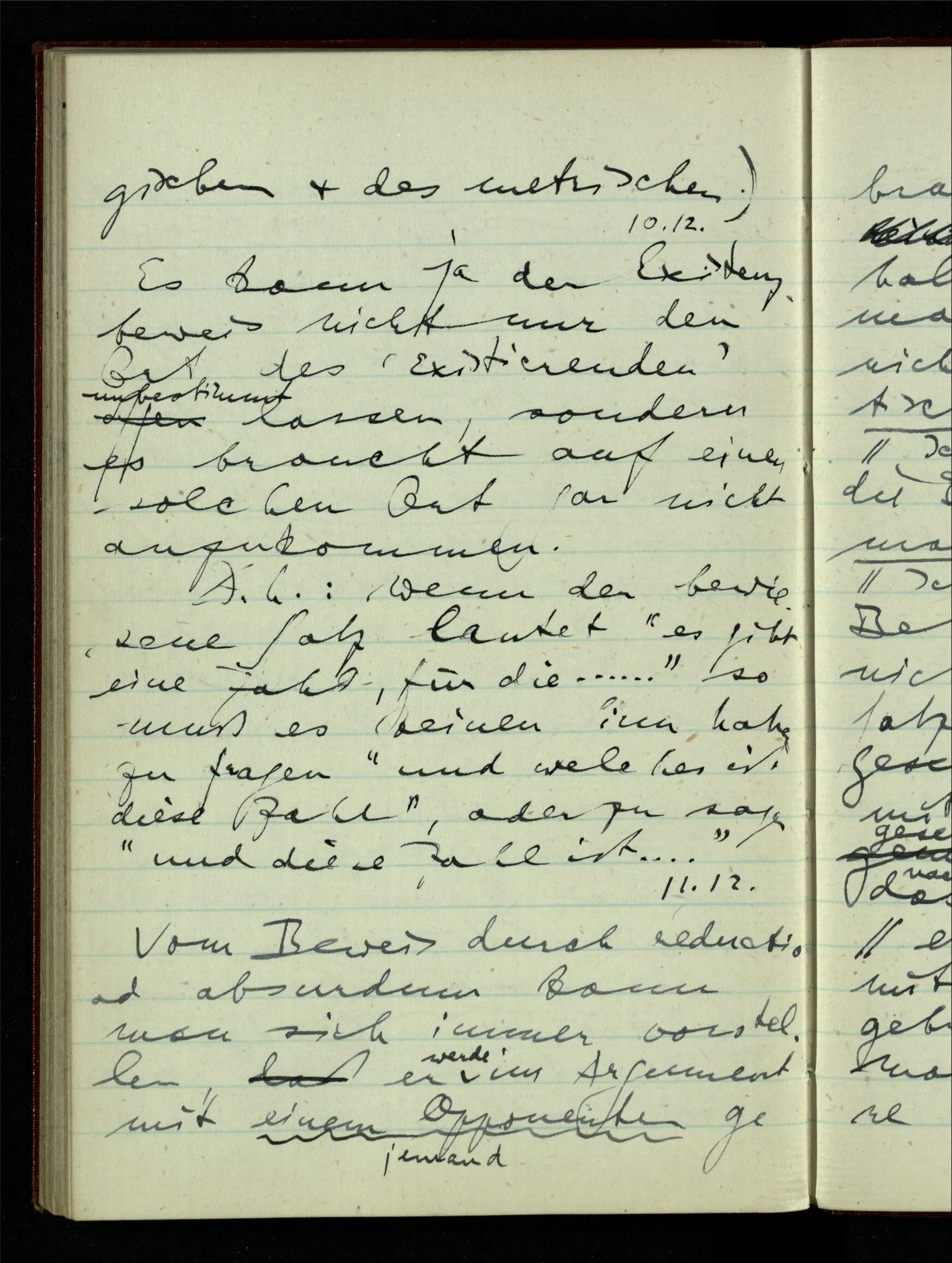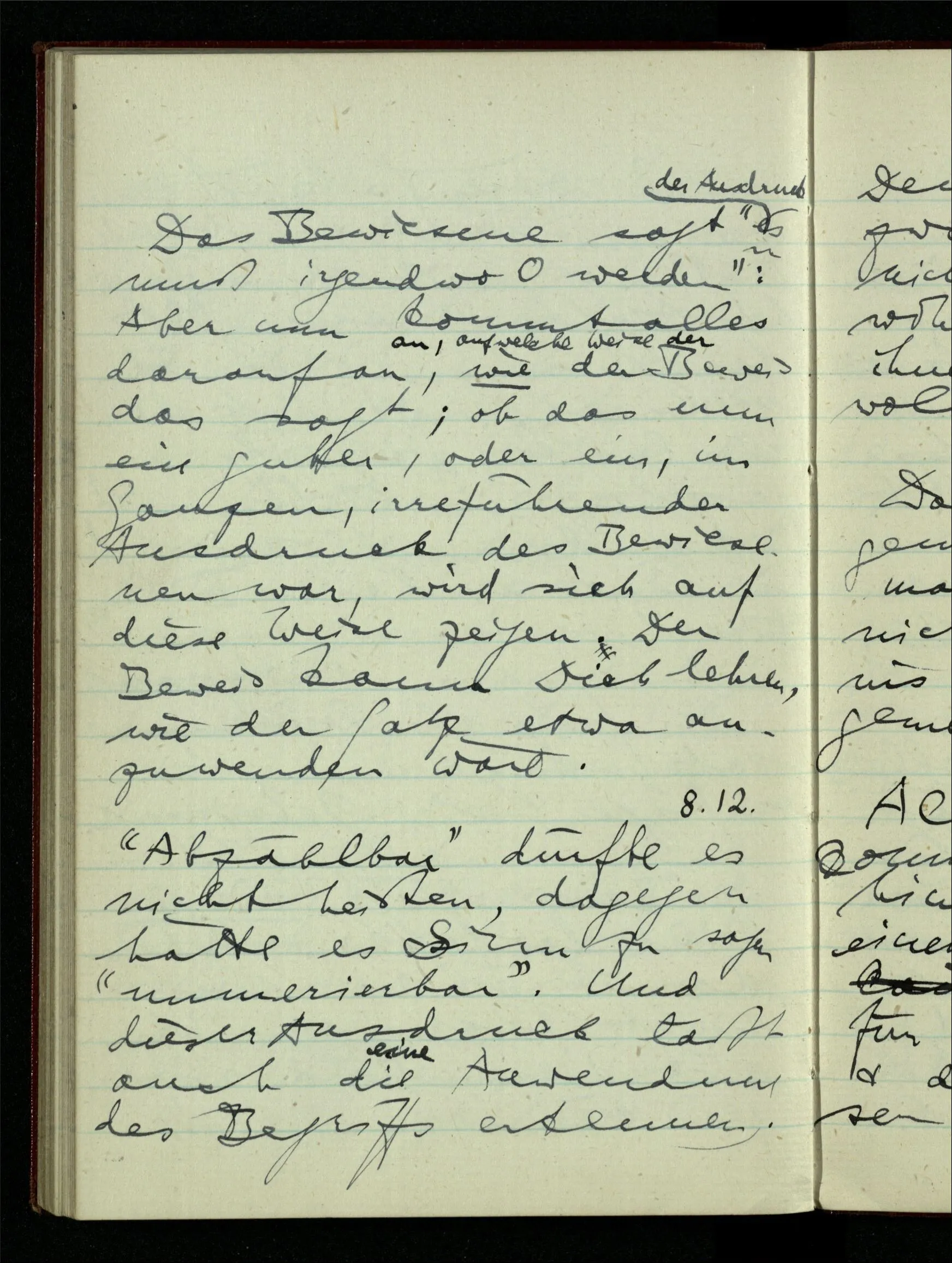 29.12.1942 Was an meinen Spekulationen über einen extensiven Kalkül, der sich mit dem der einzelnen Funktionen verbinden ließe, nicht in Ordnung ist: ich bin ganz unklar darüber, was die Anwendung so eines Kalküls unabhängig von den Funktionen sein könnte.