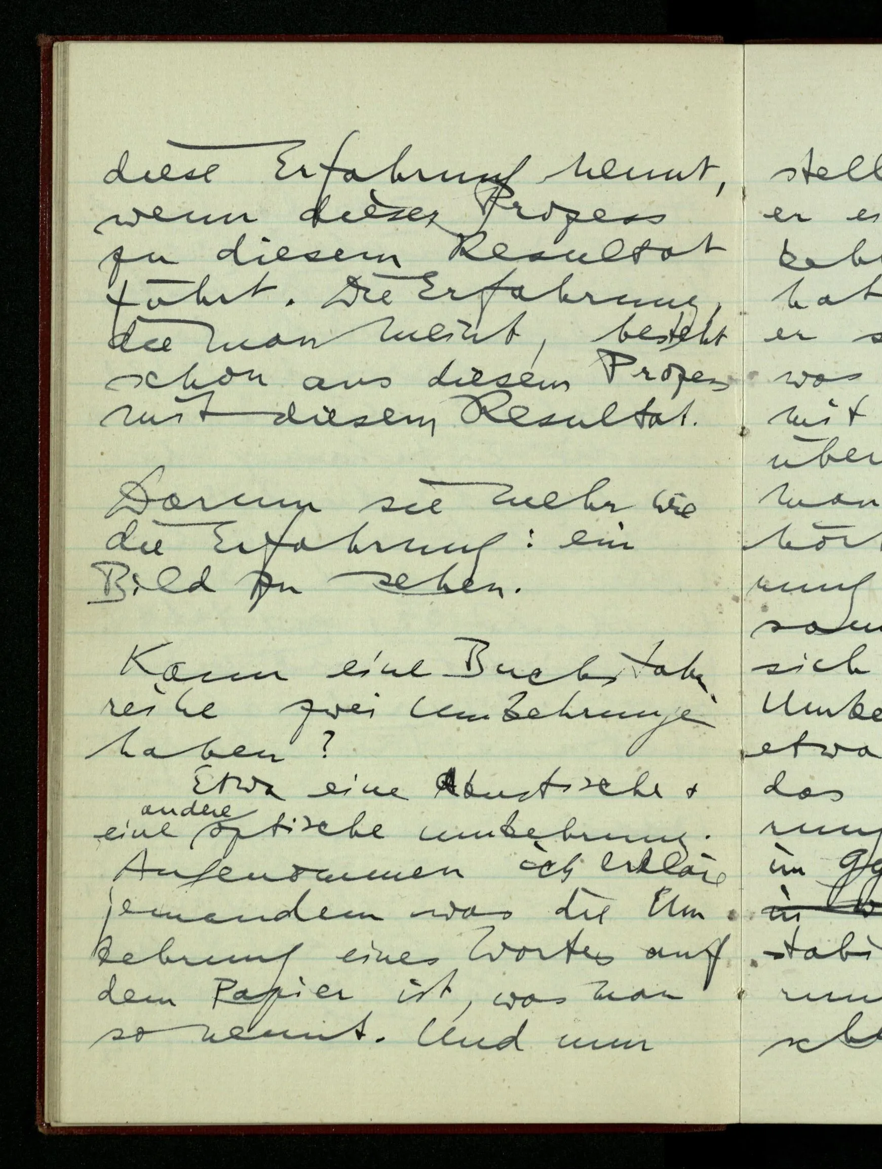 Warum man eigentlich nicht sagen kann, daß man jenen formalen Satz aus der Erfahrung lernt – weil man es erst dann diese Erfahrung nennt, wenn dieser Prozeß zu diesem Resultat führt. Die Erfahrung, die man meint, besteht schon aus diesem Prozeß mit diesem Resultat.