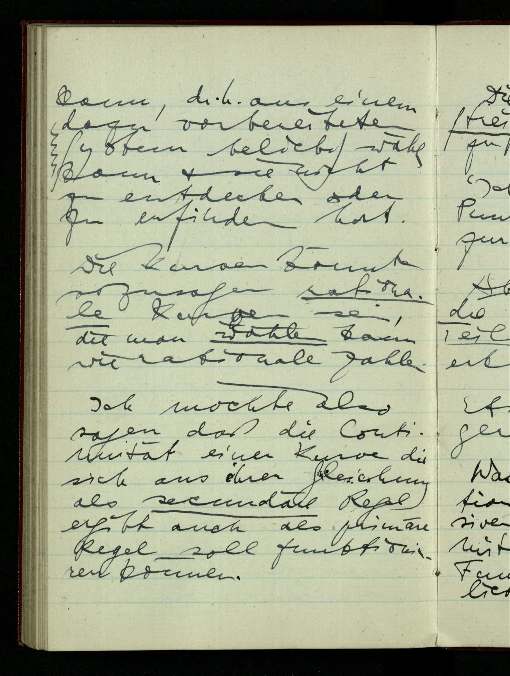 Ich möchte also sagen daß die Kontinuität einer Kurve die sich aus ihrer Gleichung als sekundäre Regel ergibt auch als primäre Regel soll funktionieren können.