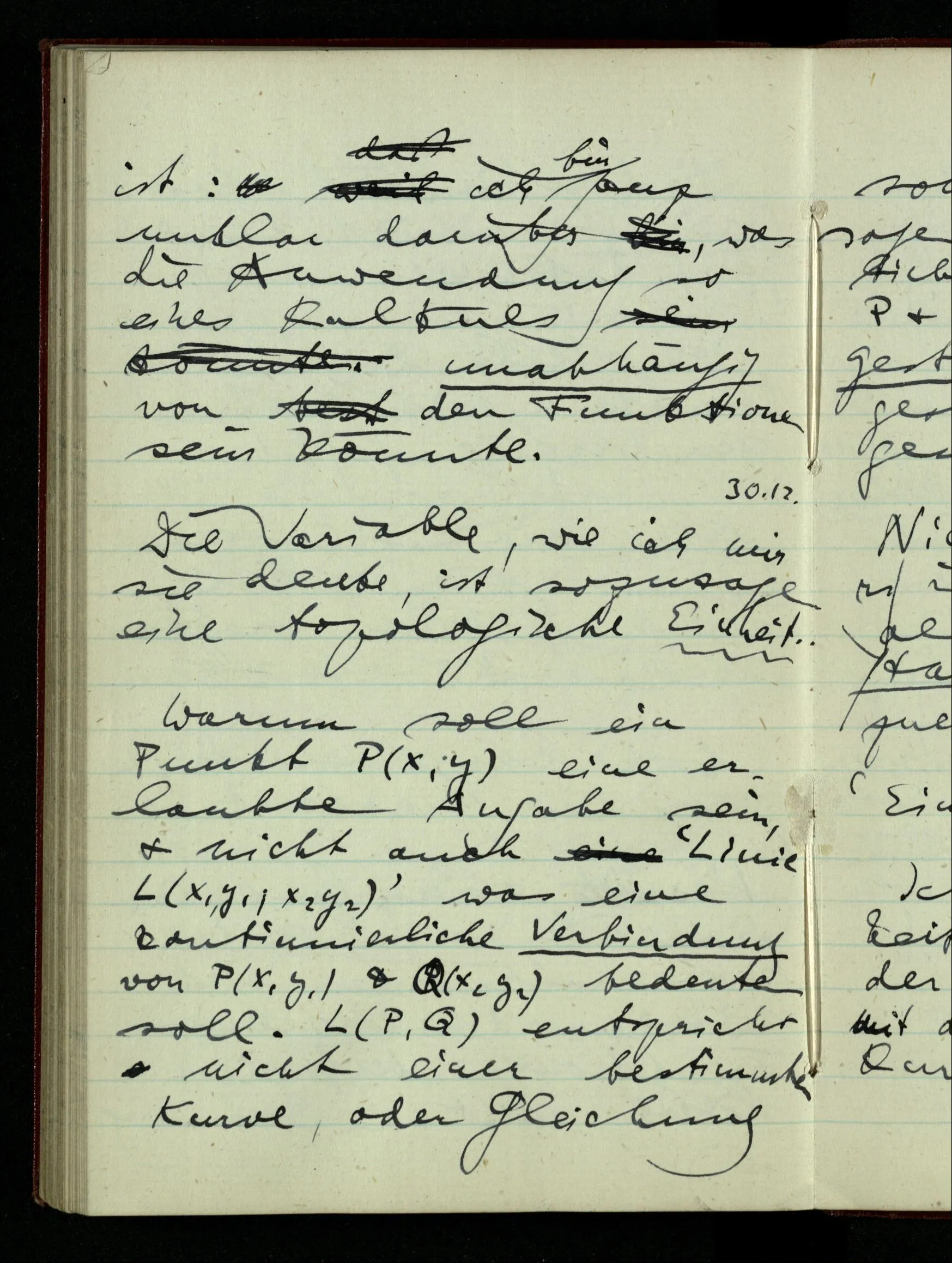 30.12.1942 Die Variable, wie ich mir sie denke, ist sozusagen eine topologische Einheit.