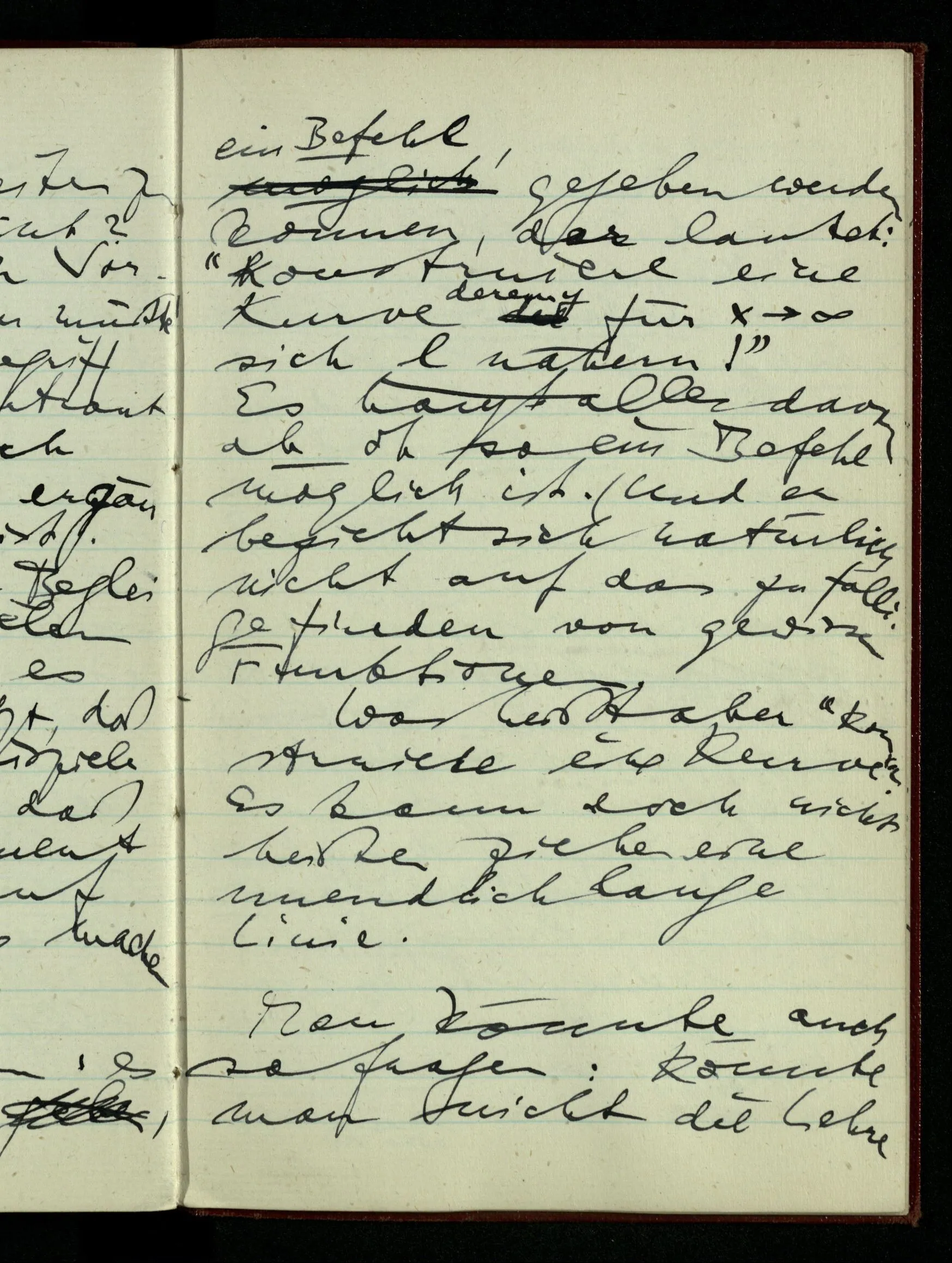 Ich will sagen: es muß ein Gesetz, ein Befehl, gegeben werden können, der lautet: “Konstruiere eine Kurve deren y für x → ∞ sich ℓ nähern!”