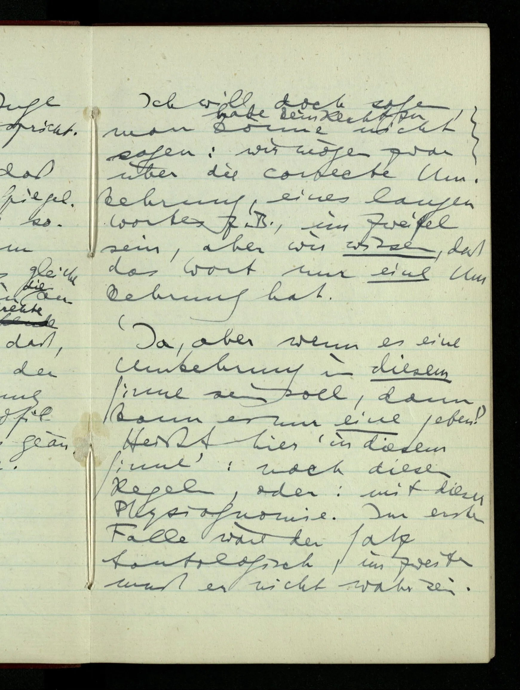 Ich will doch sagen, man könne nicht sagen: wir mögen zwar über die korrekte Umkehrung, eines langen Wortes z.B., im Zweifel sein, aber wir wissen, daß das Wort nur eine Umkehrung hat.