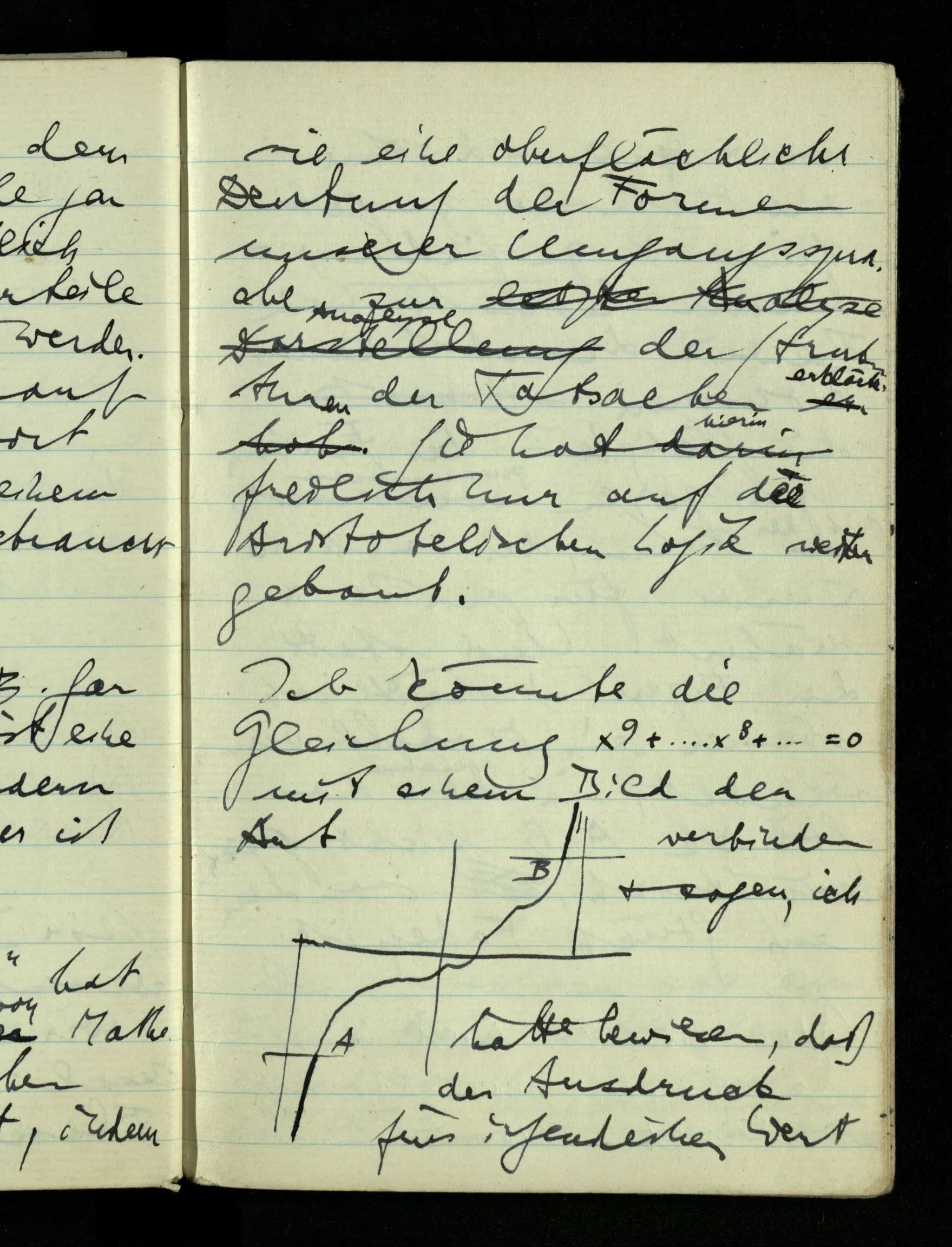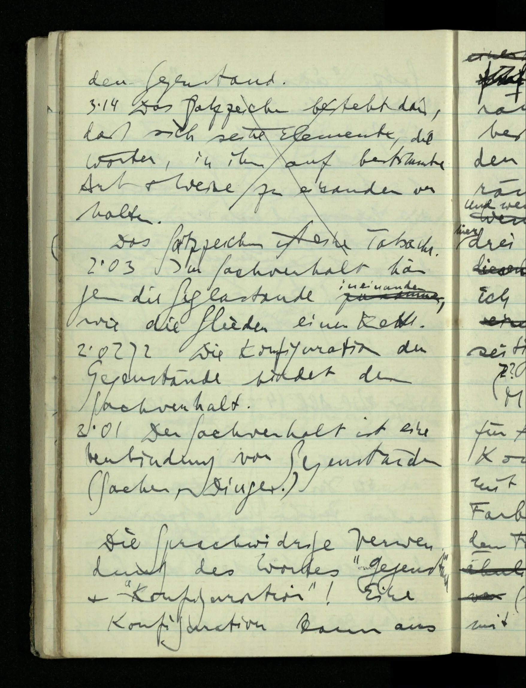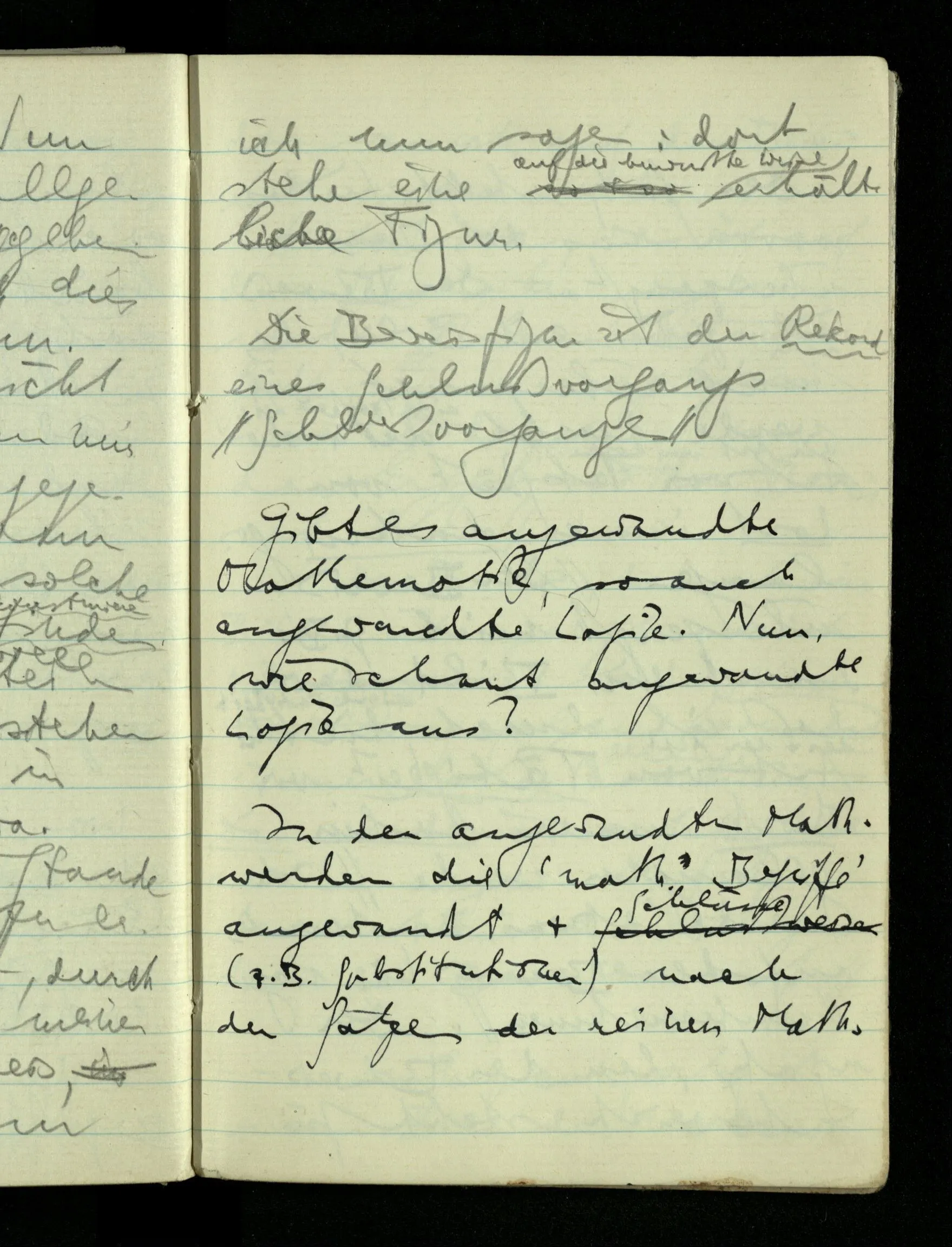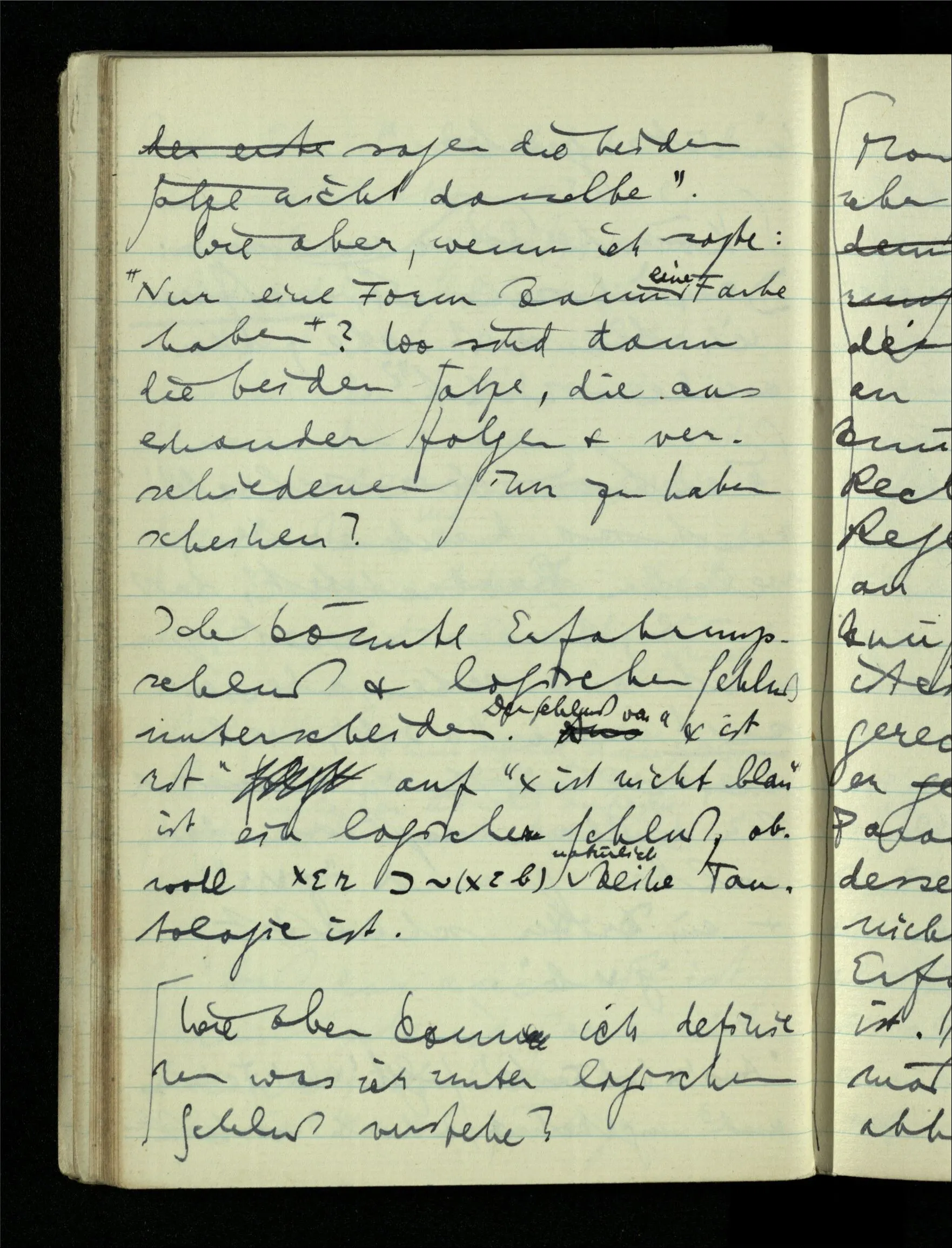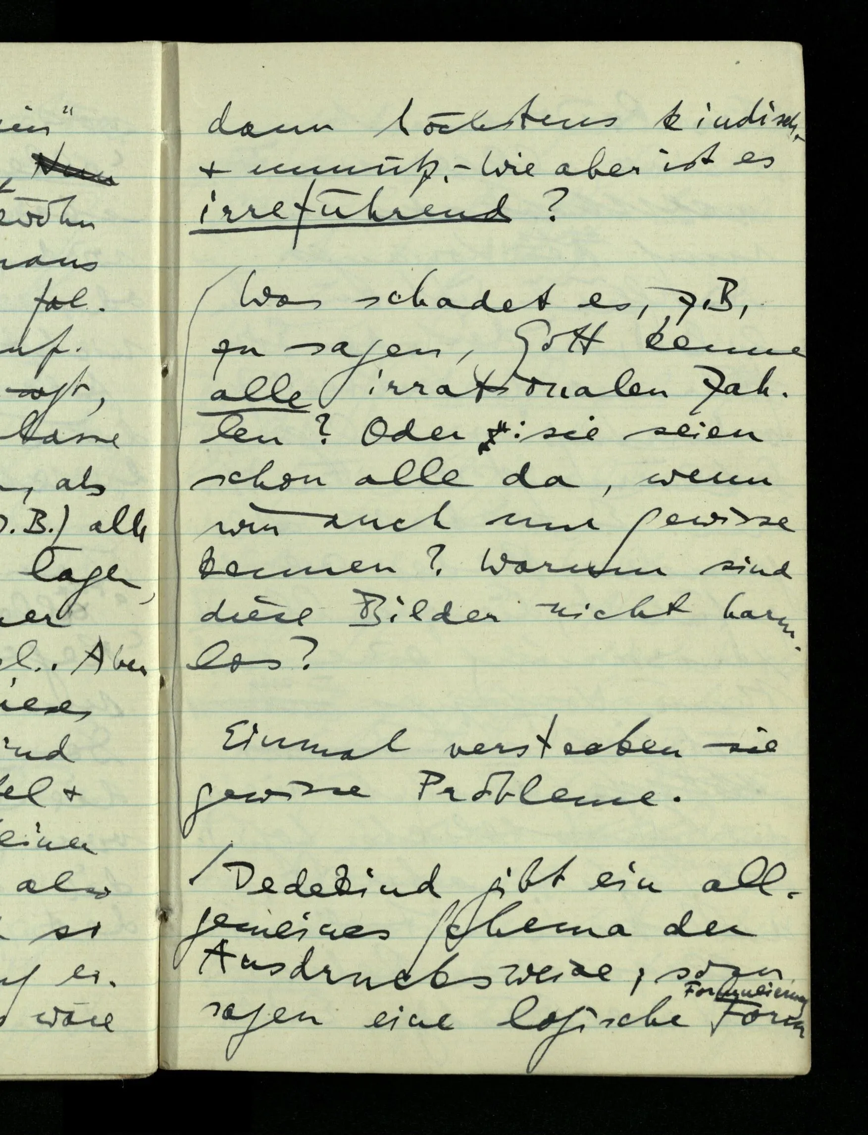 08.01.1943 Die extensionalen Erklärungen der Funktionen, der reellen Zahlen, etc. übergehen alles Intensionale – obwohl sie es voraussetzen – & beziehen sich auf die immer wiederkehrende äußere Form.