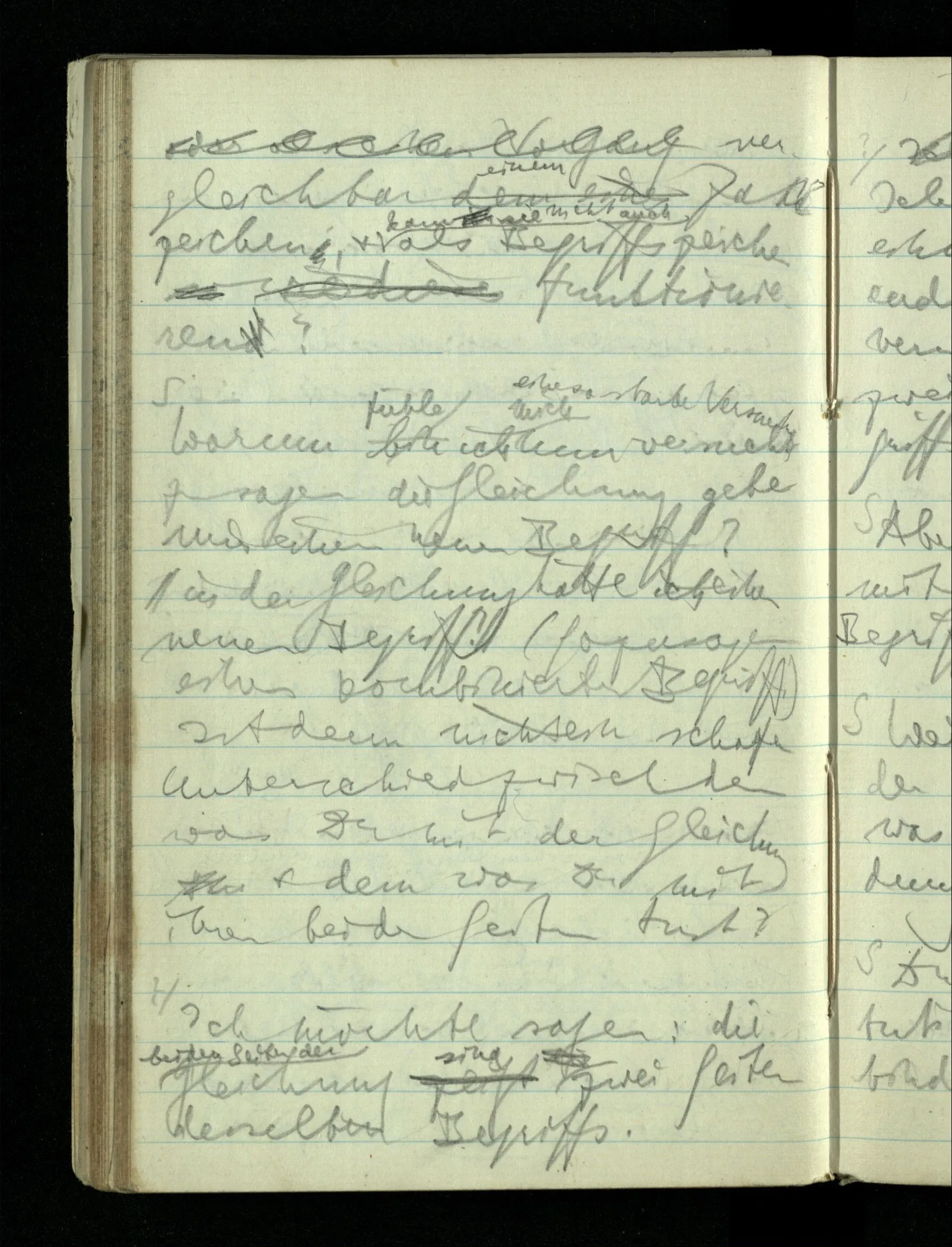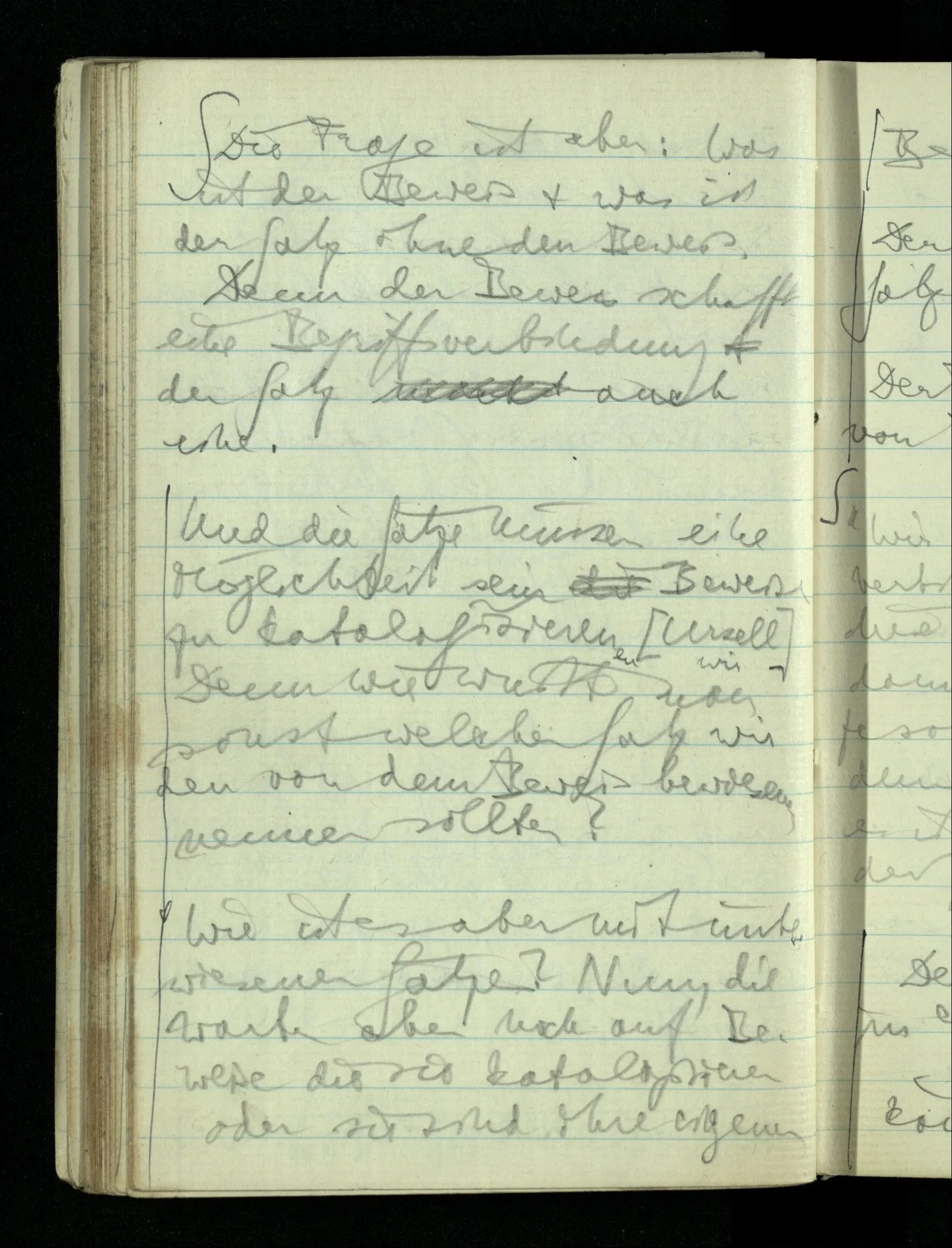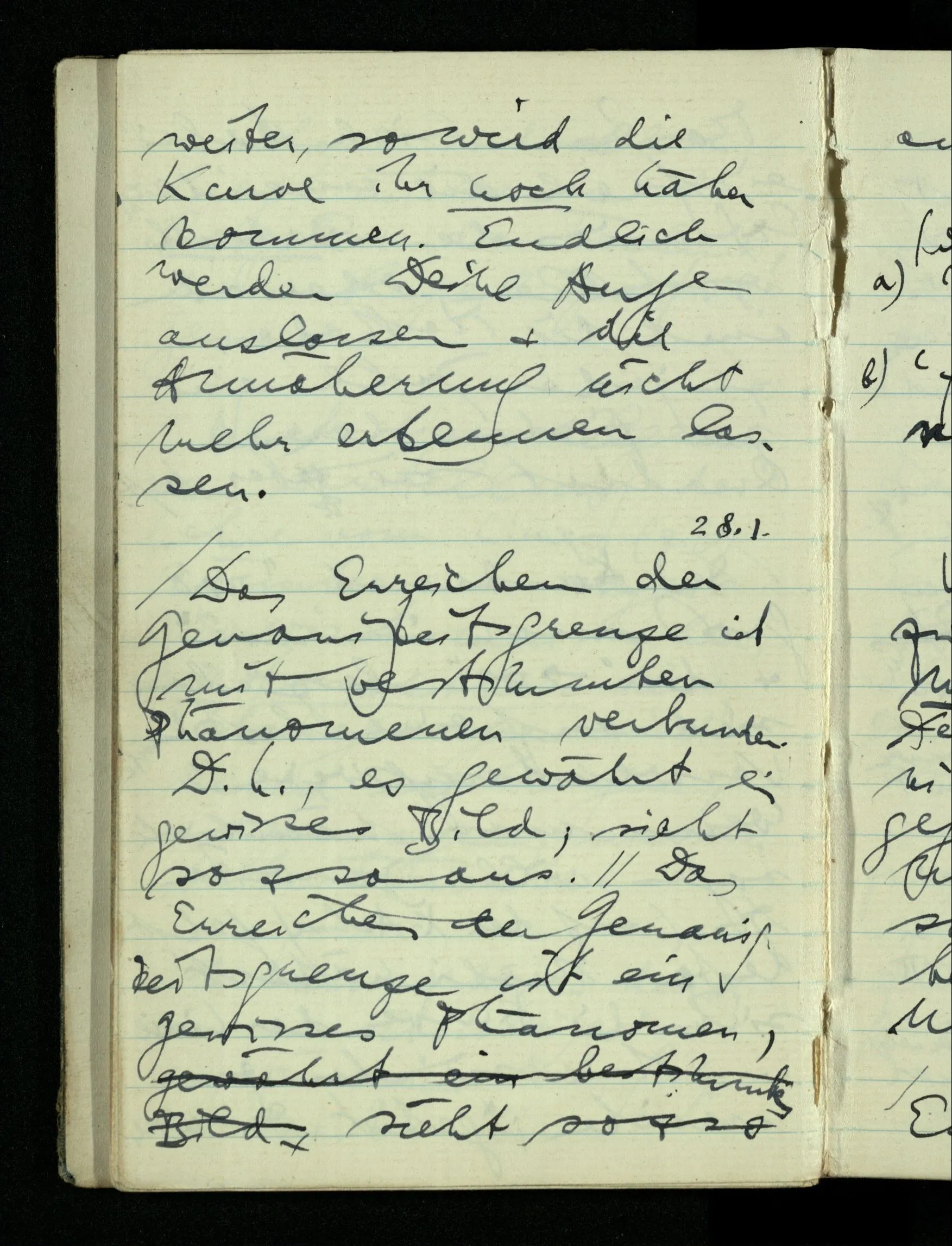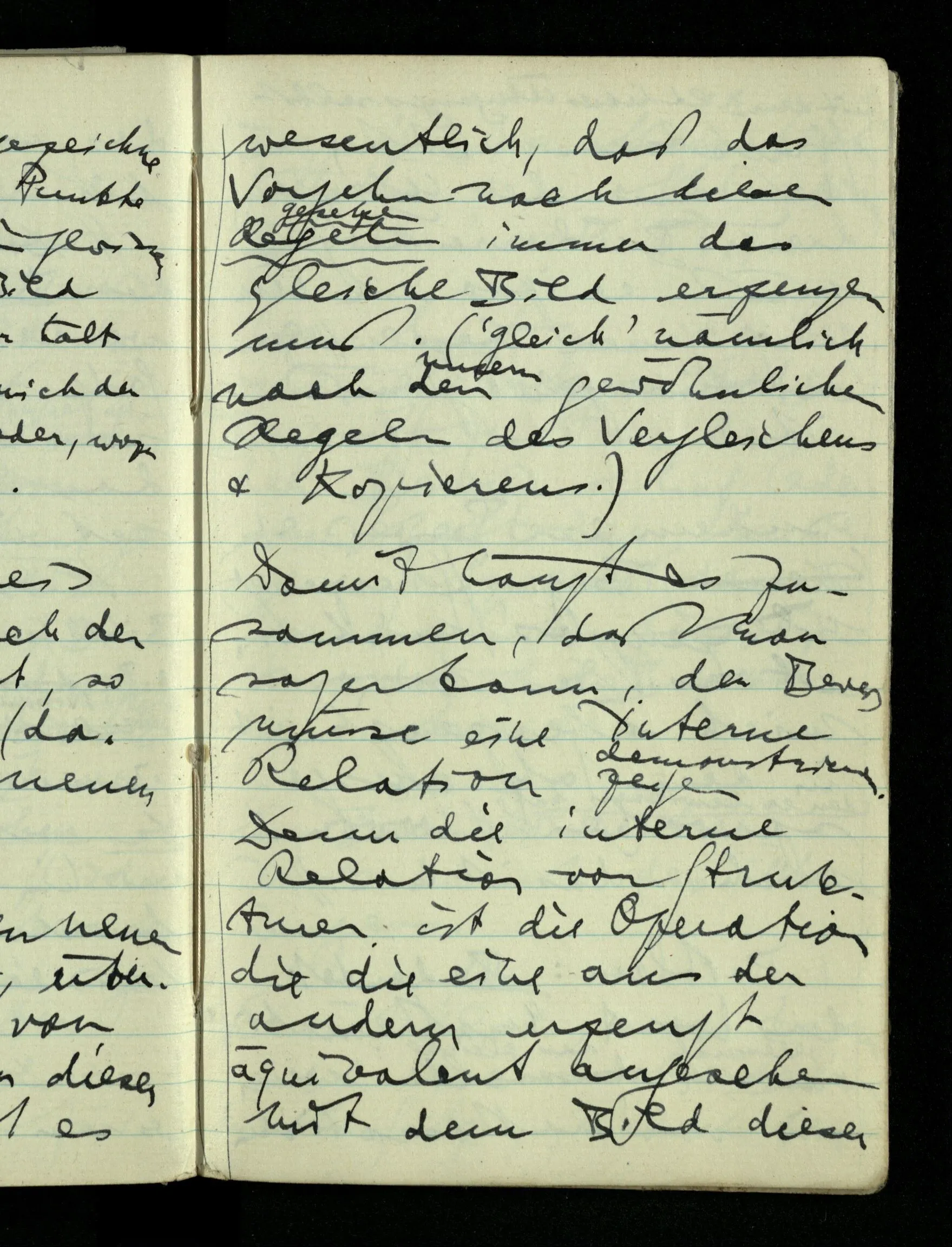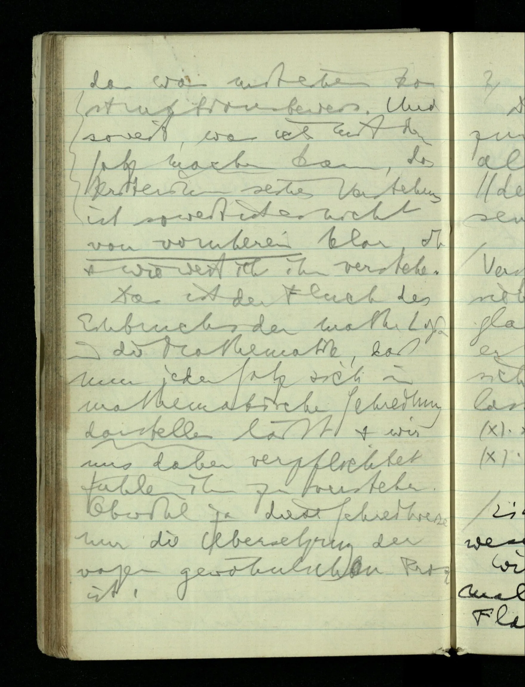 08.01.1943 Die extensionalen Erklärungen der Funktionen, der reellen Zahlen, etc. übergehen alles Intensionale – obwohl sie es voraussetzen – & beziehen sich auf die immer wiederkehrende äußere Form.