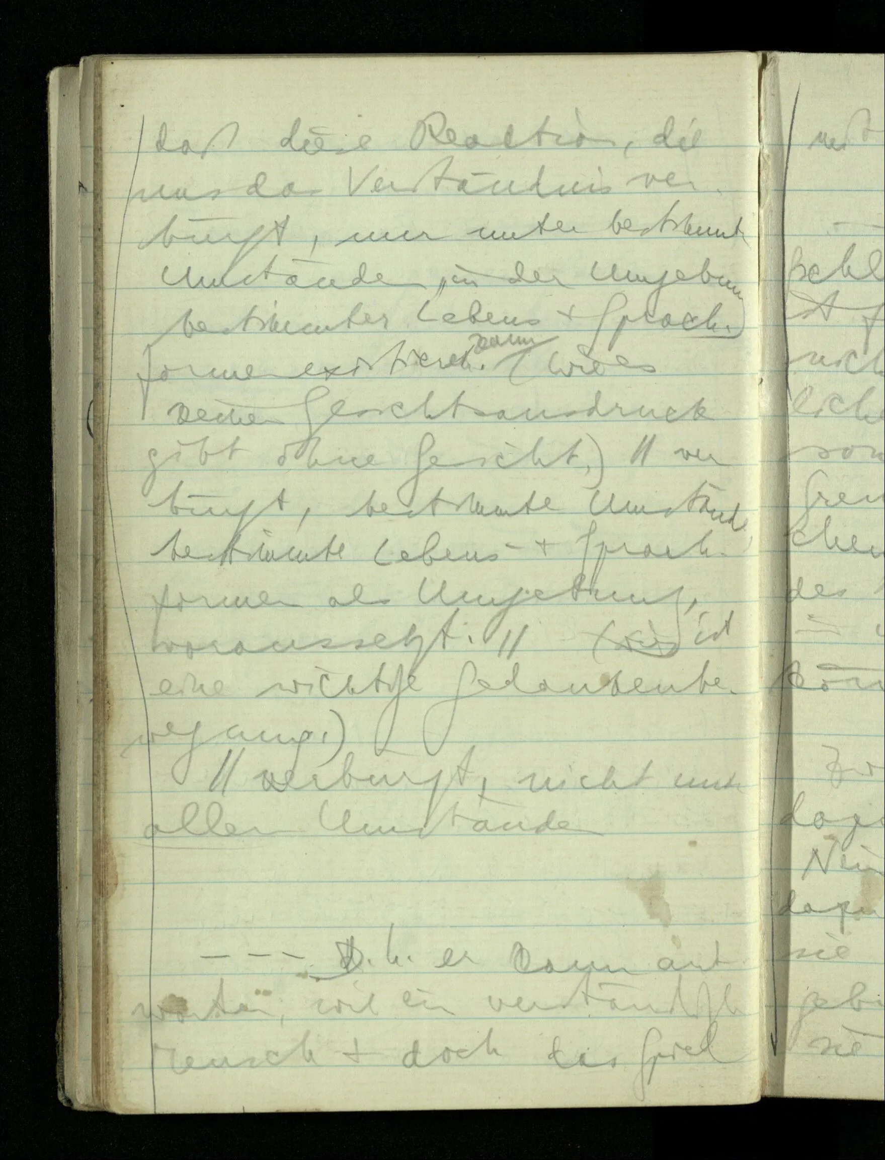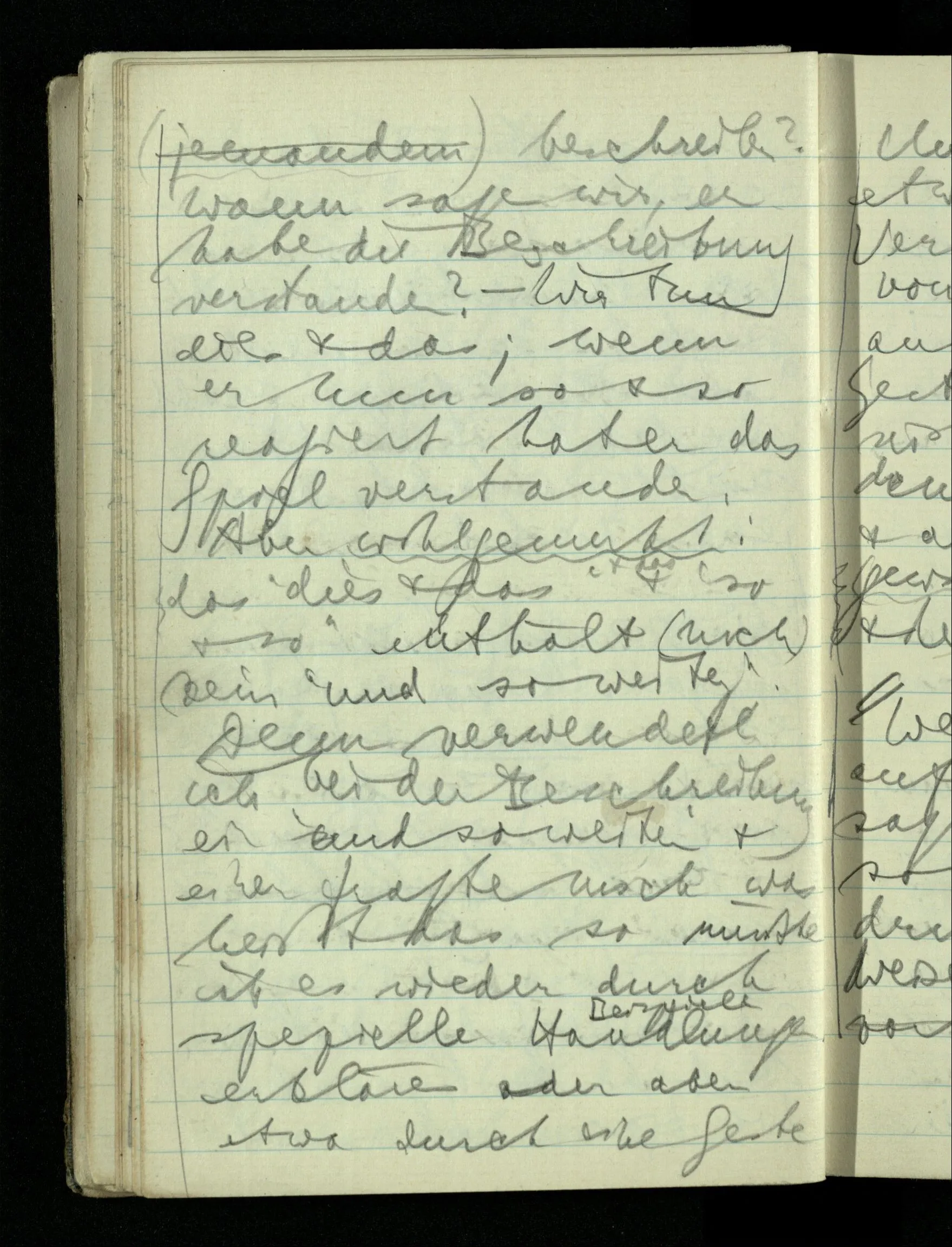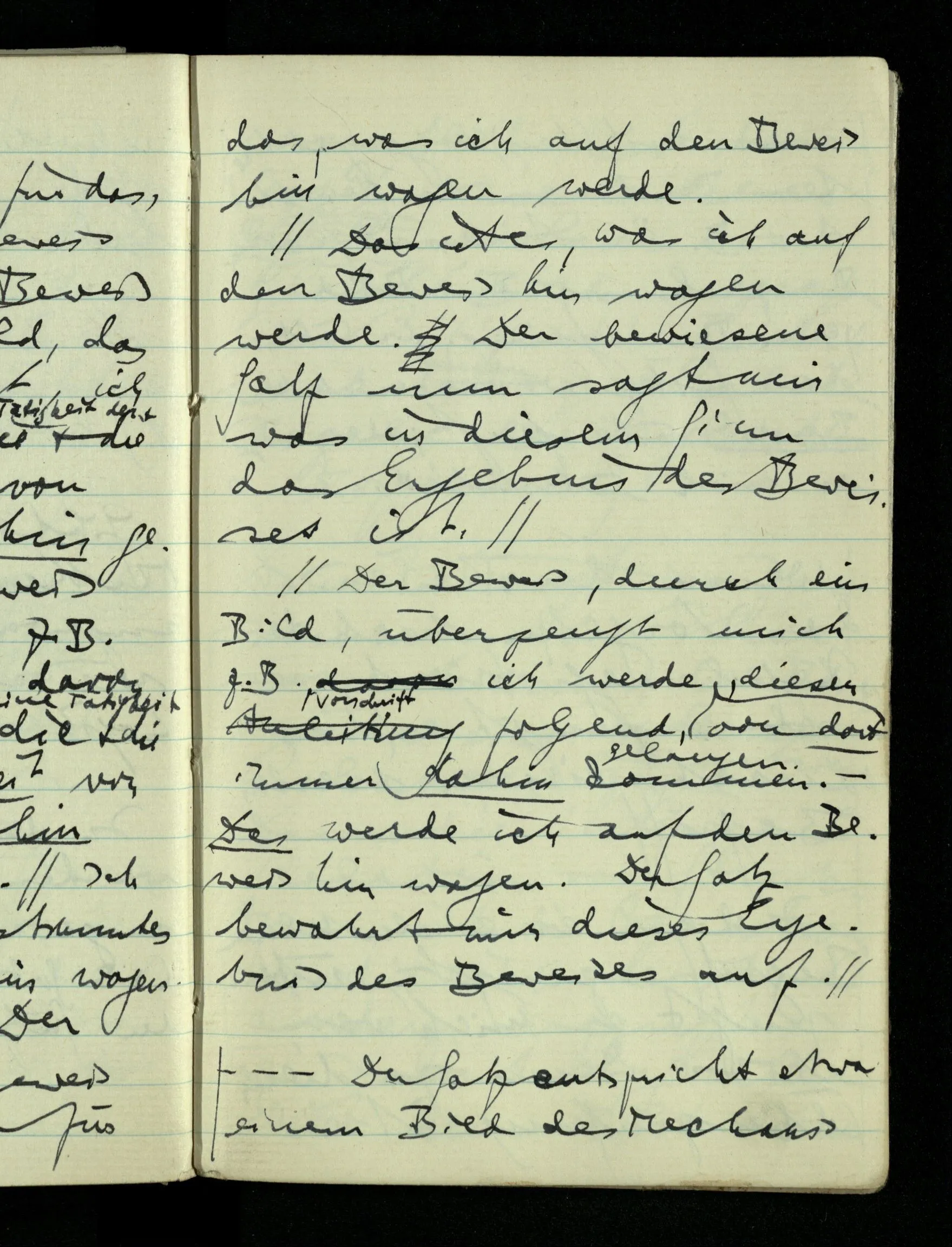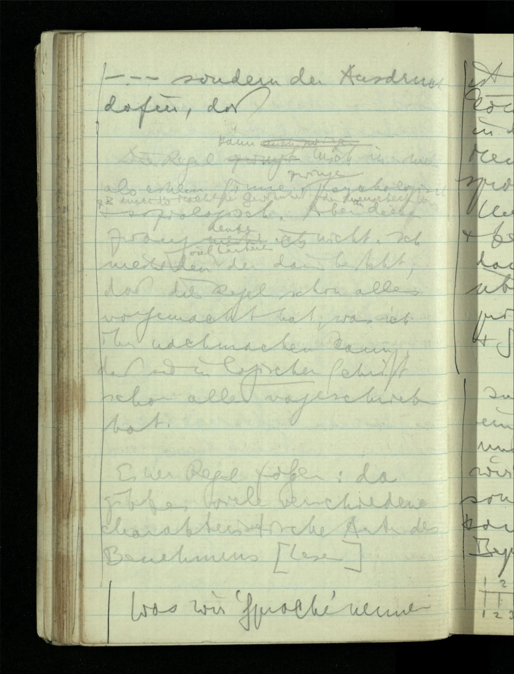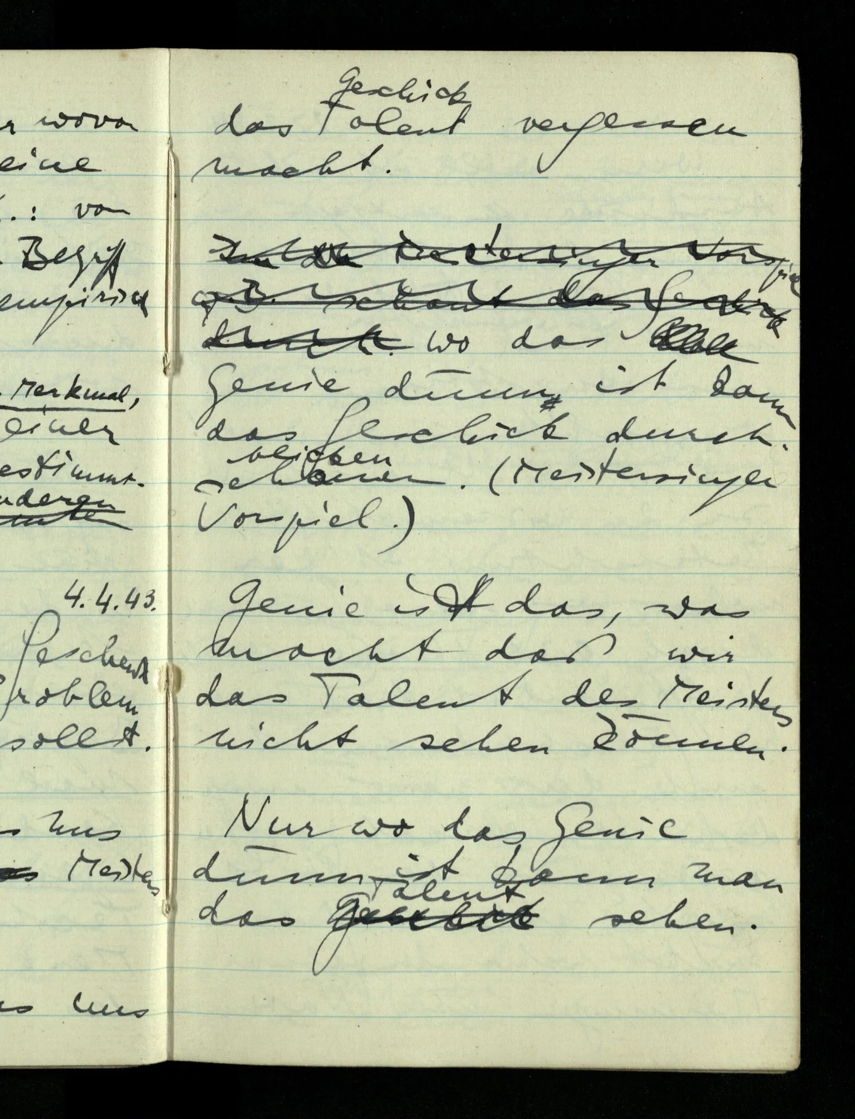 08.01.1943 Die extensionalen Erklärungen der Funktionen, der reellen Zahlen, etc. übergehen alles Intensionale – obwohl sie es voraussetzen – & beziehen sich auf die immer wiederkehrende äußere Form.