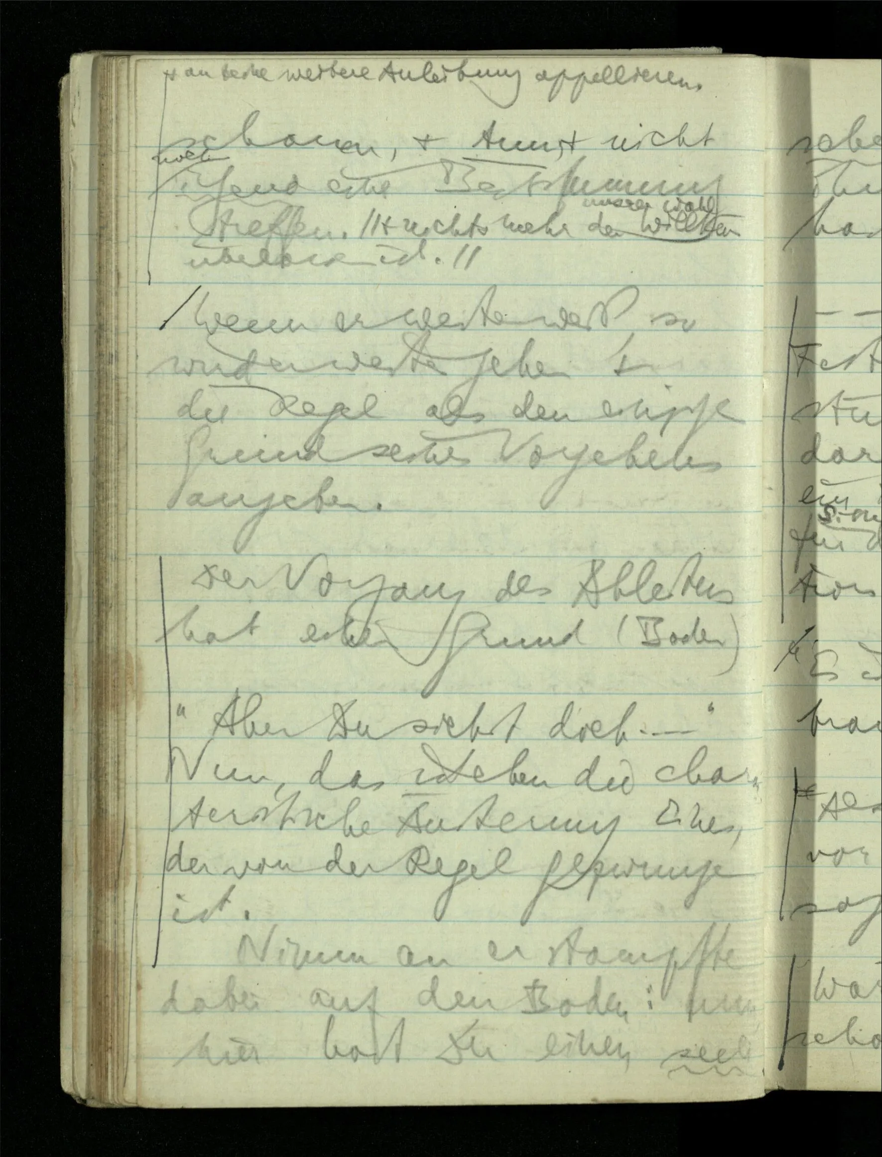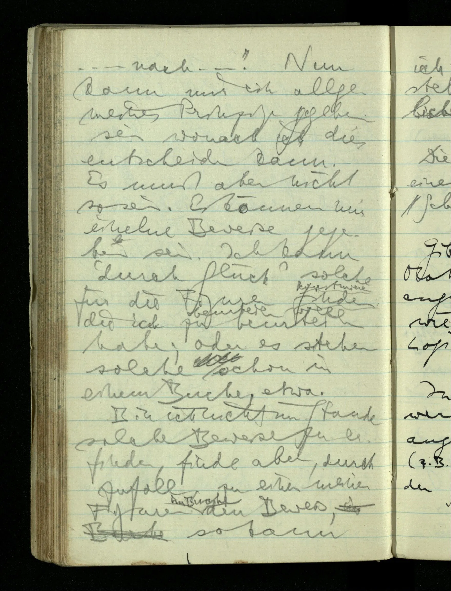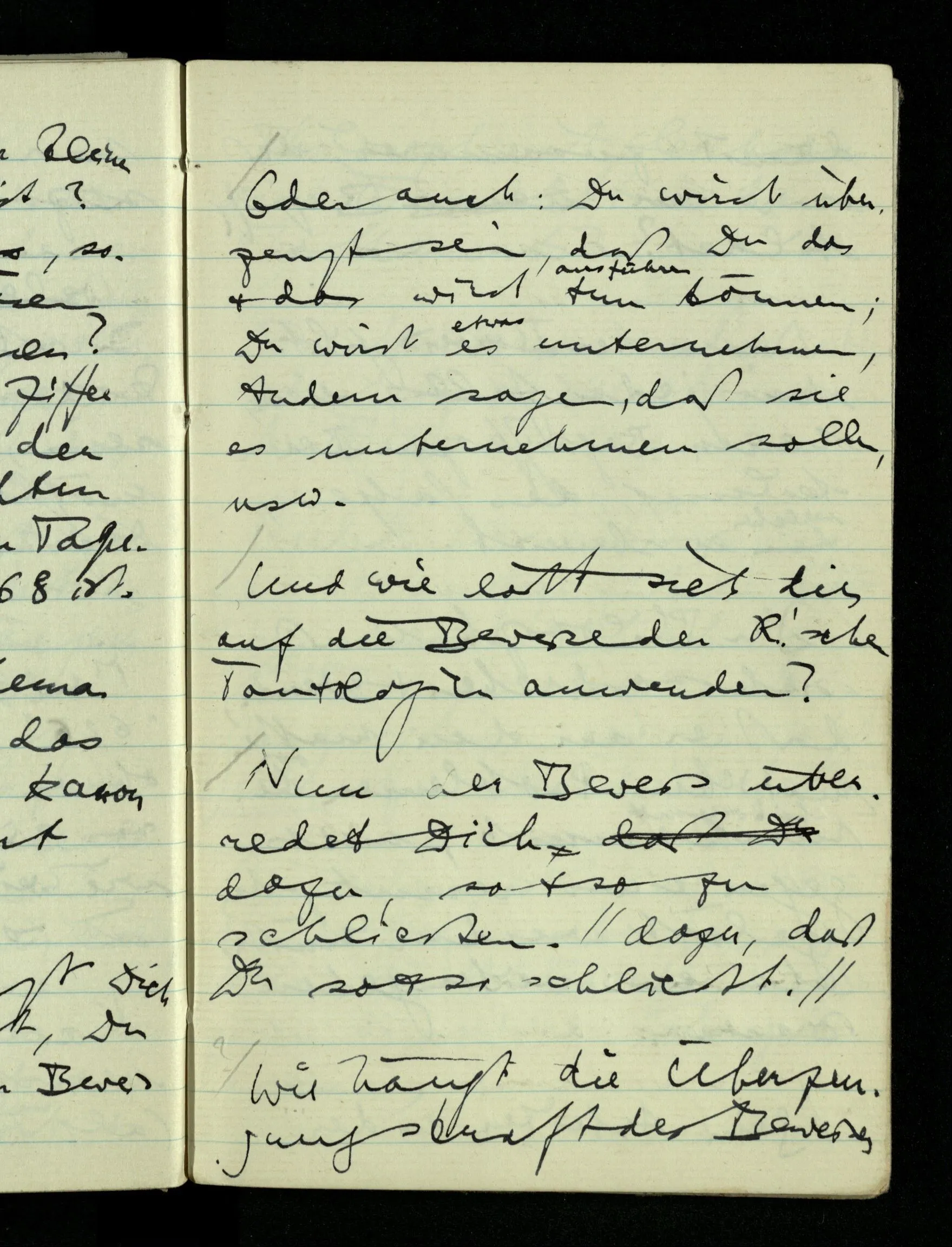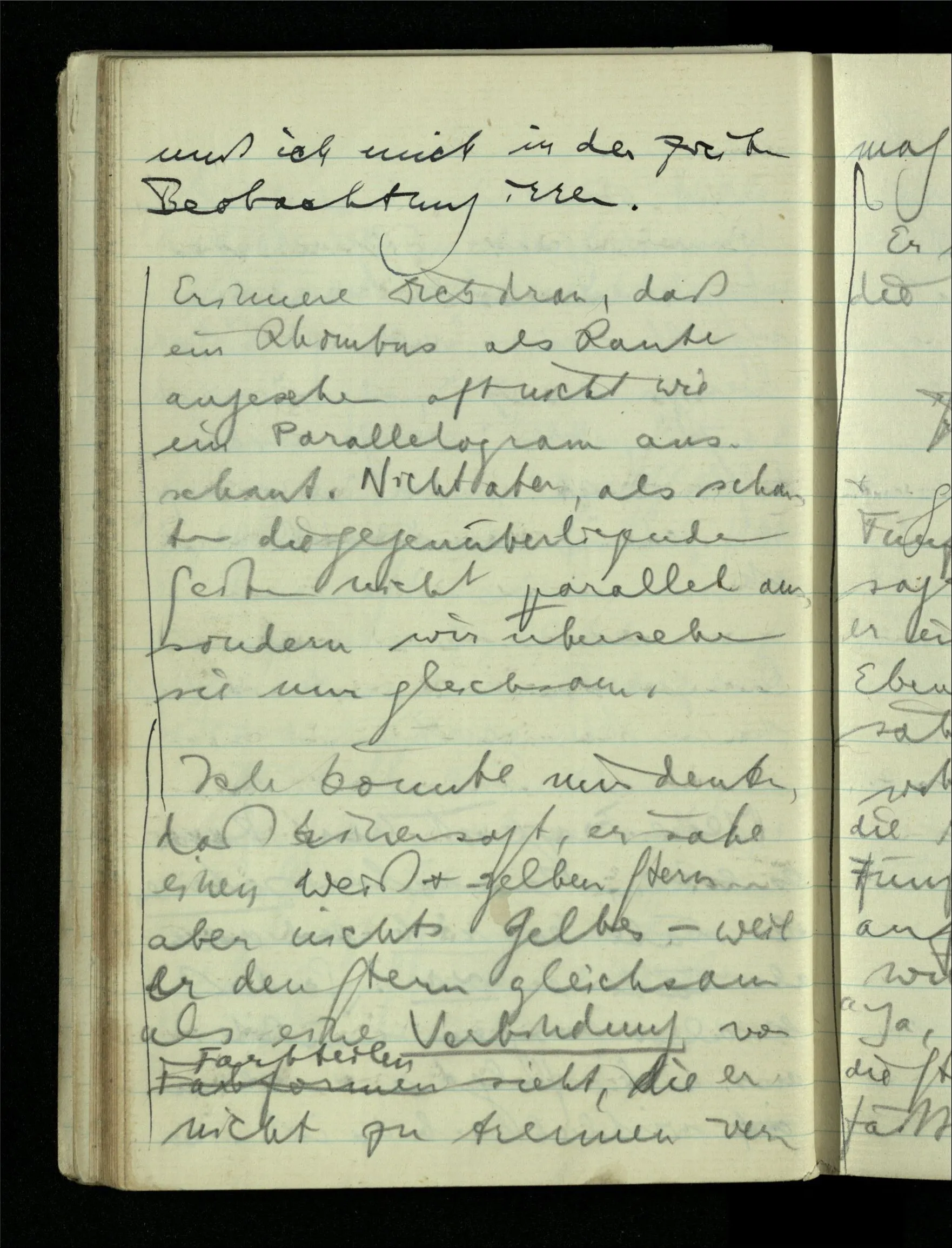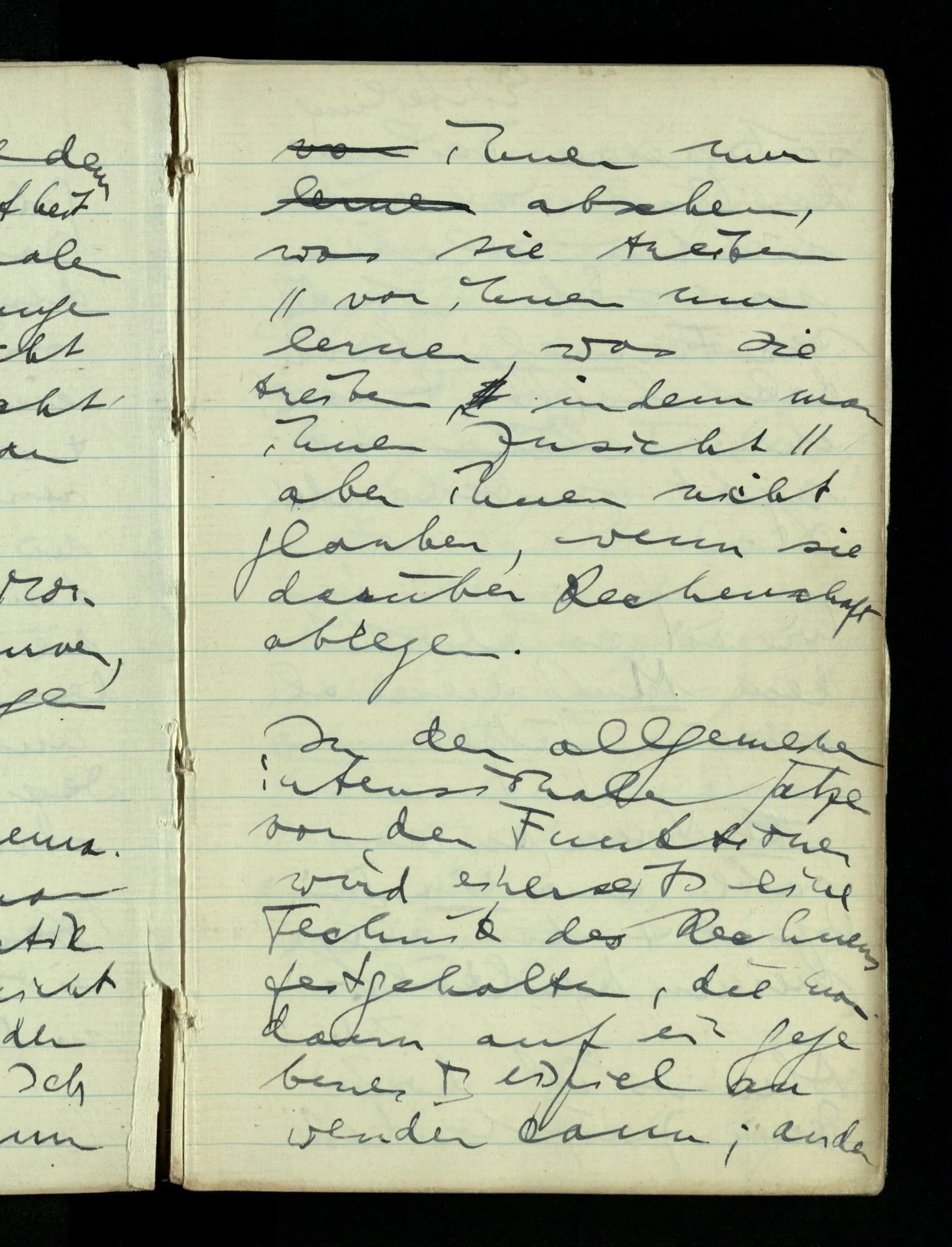 09.01.1943 Unsre Schwierigkeit fängt eigentlich schon mit der unendlichen Geraden an; obwohl wir schon als Knaben lernen, eine Gerade habe kein Ende, & ich weiß nicht, daß diese Idee irgend jemand Schwierigkeiten bereitet hätte. Wie, wenn ein Finitist versuchte diesen Begriff durch den einer geraden Strecke von bestimmter Länge zu ersetzen?!