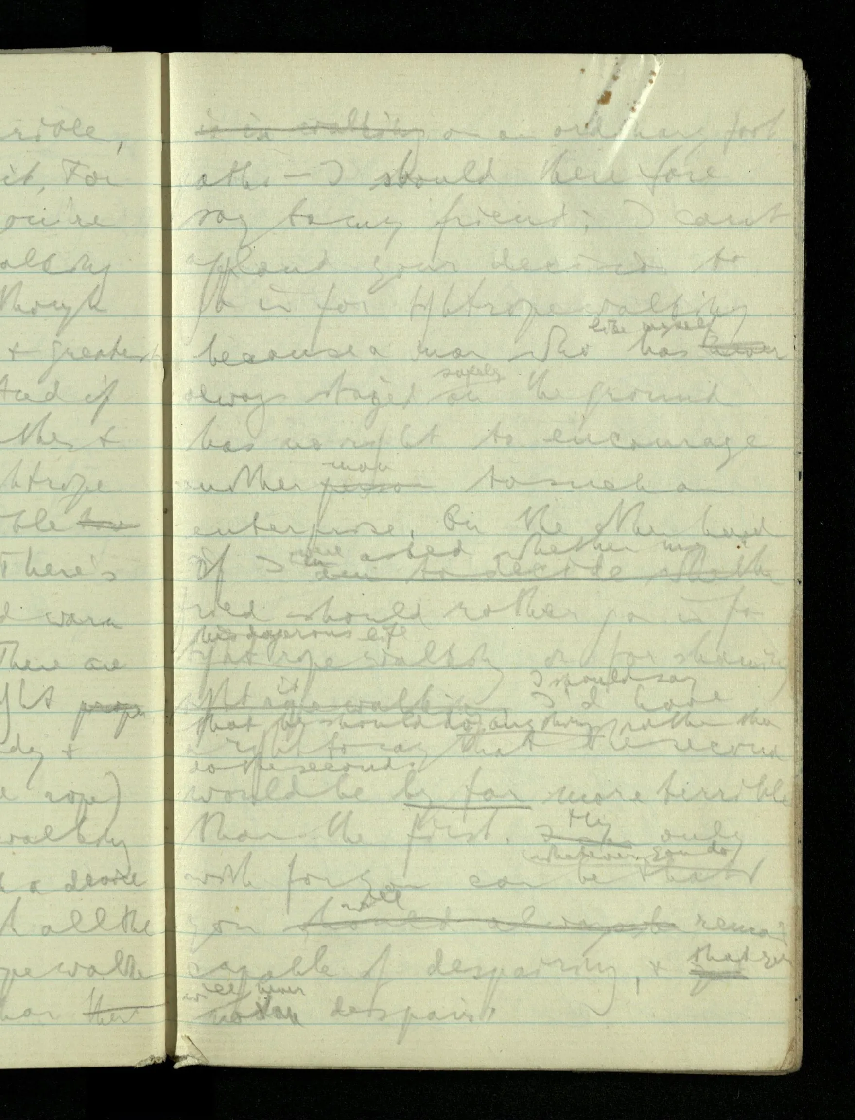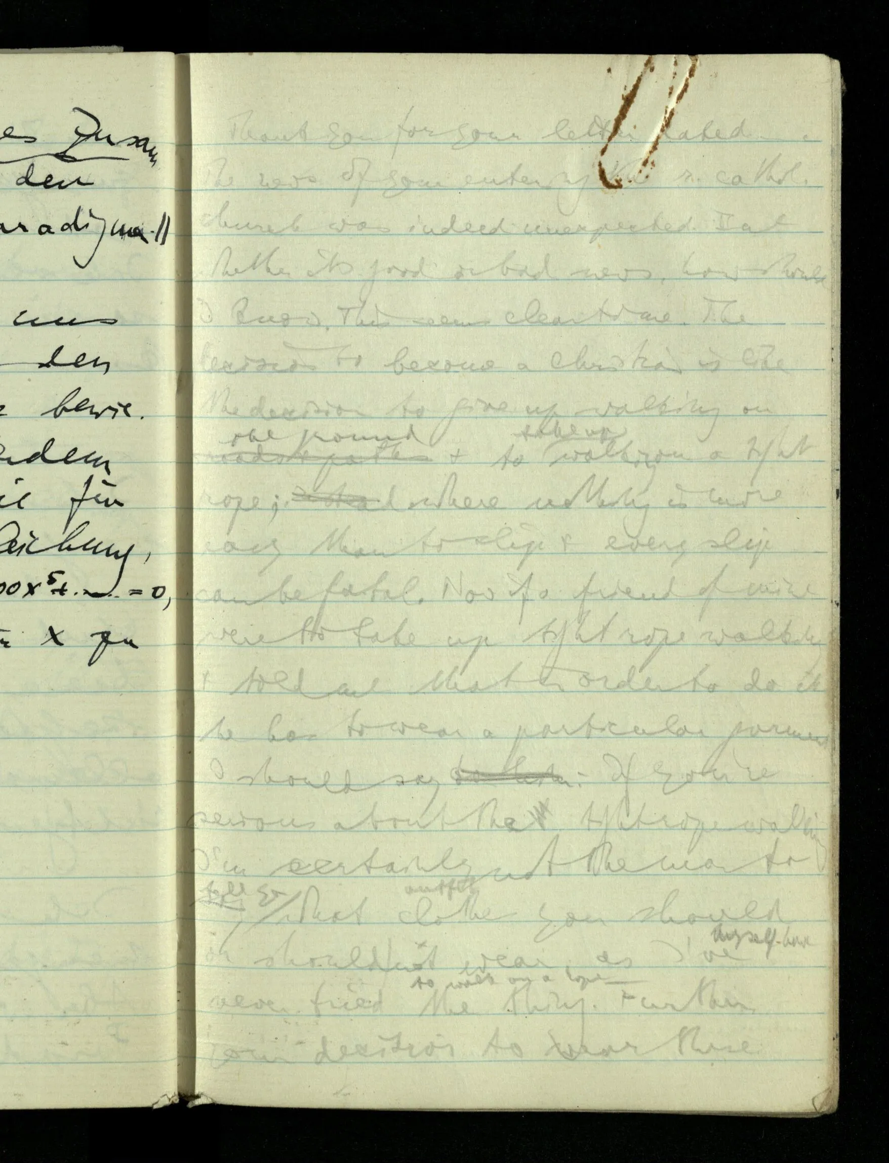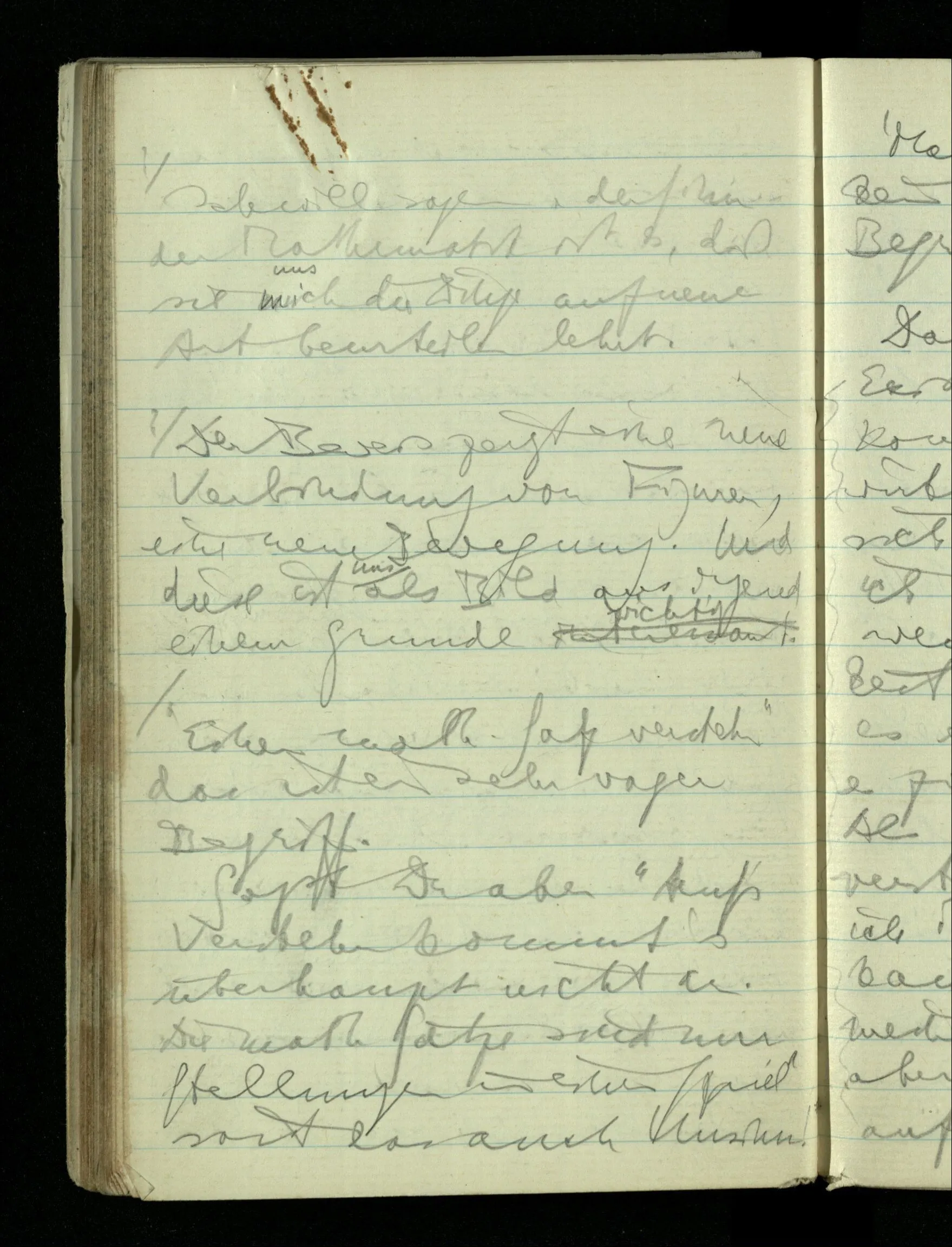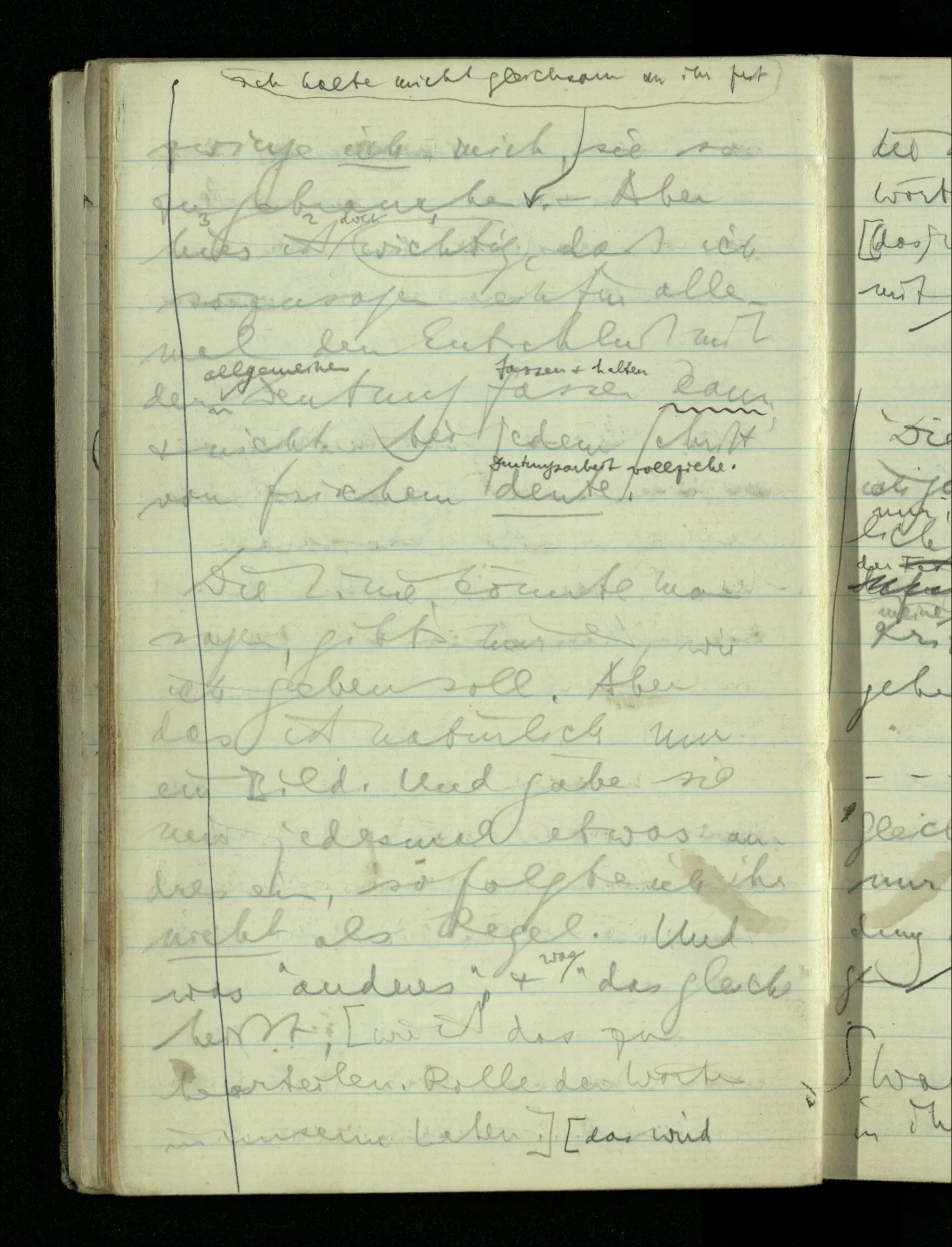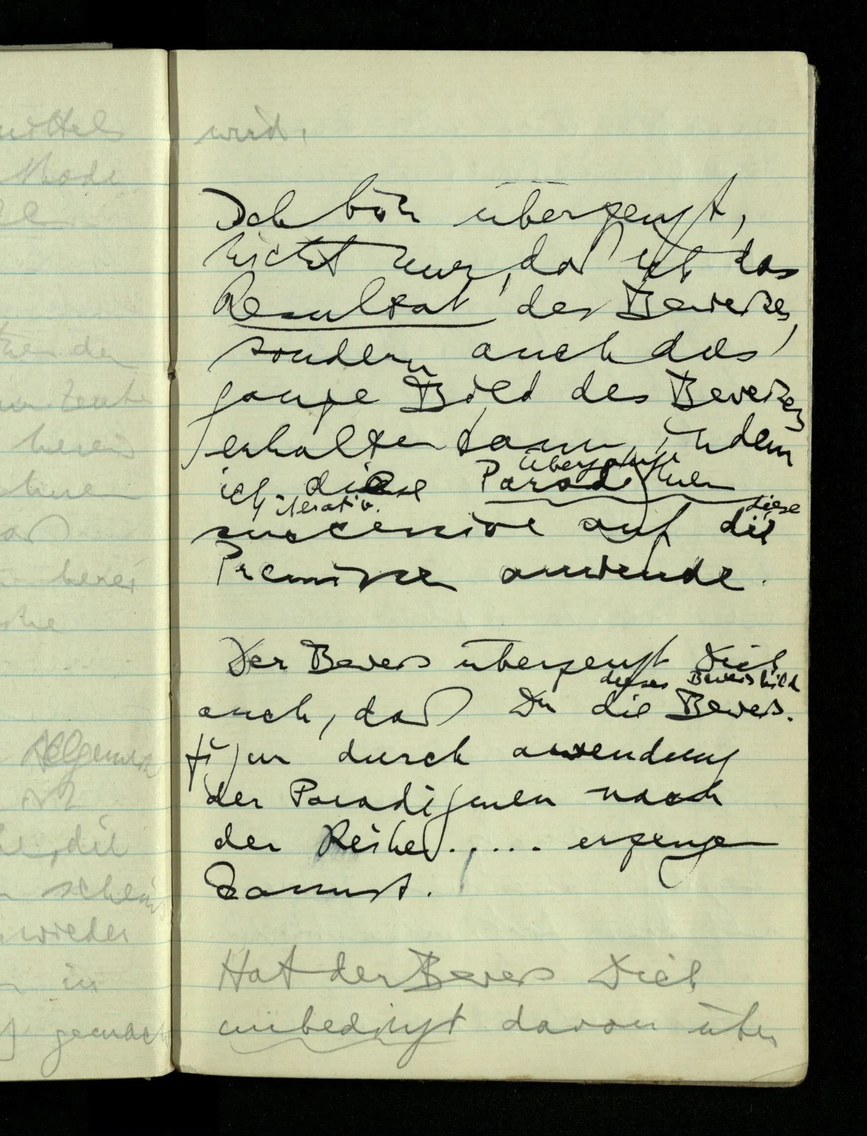 09.01.1943 Unsre Schwierigkeit fängt eigentlich schon mit der unendlichen Geraden an; obwohl wir schon als Knaben lernen, eine Gerade habe kein Ende, & ich weiß nicht, daß diese Idee irgend jemand Schwierigkeiten bereitet hätte. Wie, wenn ein Finitist versuchte diesen Begriff durch den einer geraden Strecke von bestimmter Länge zu ersetzen?!