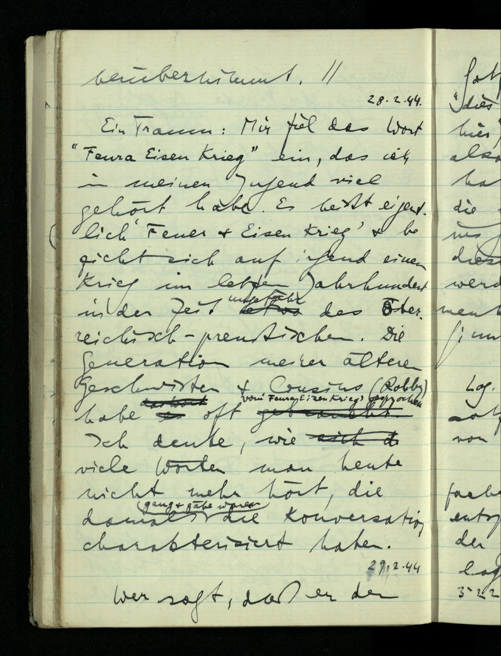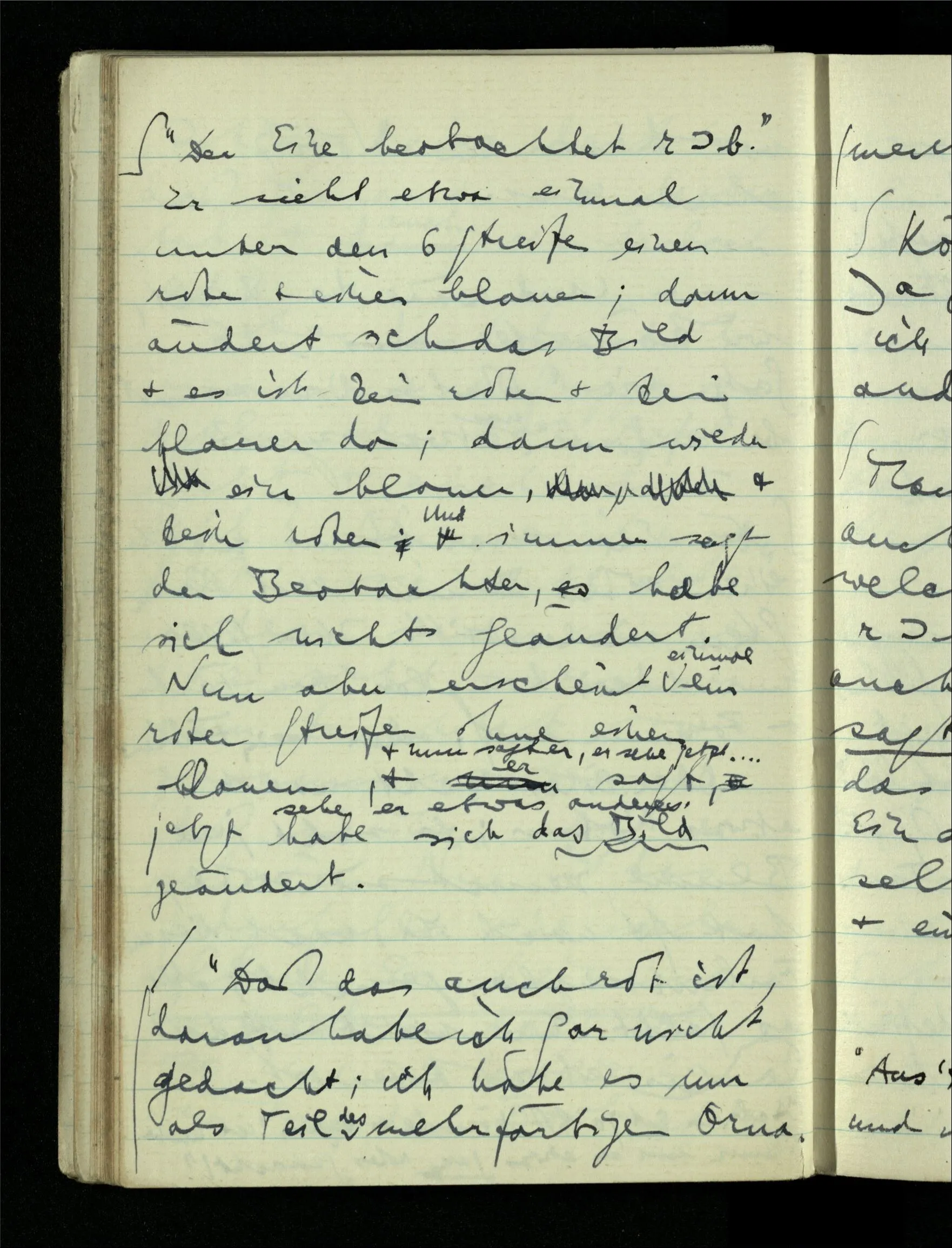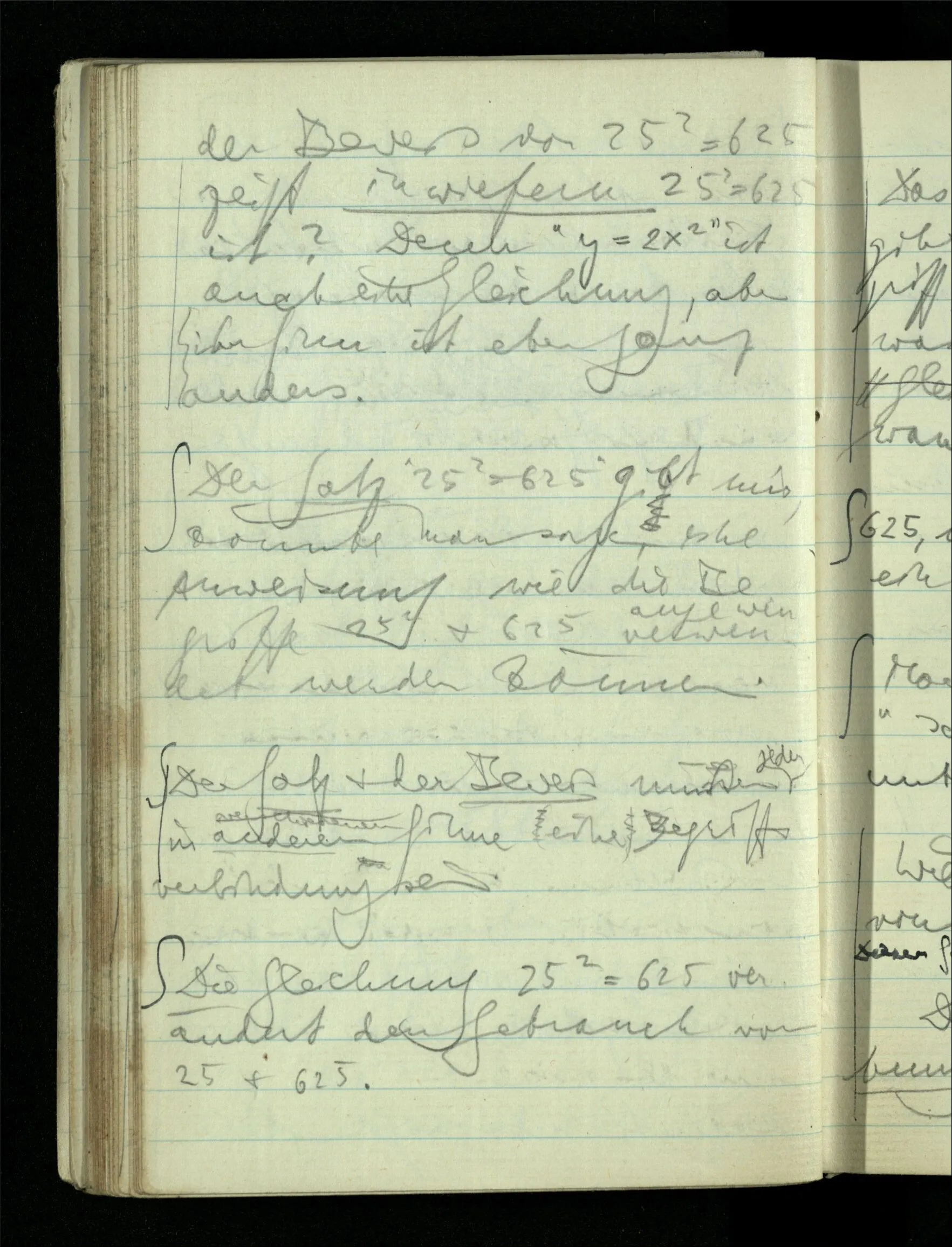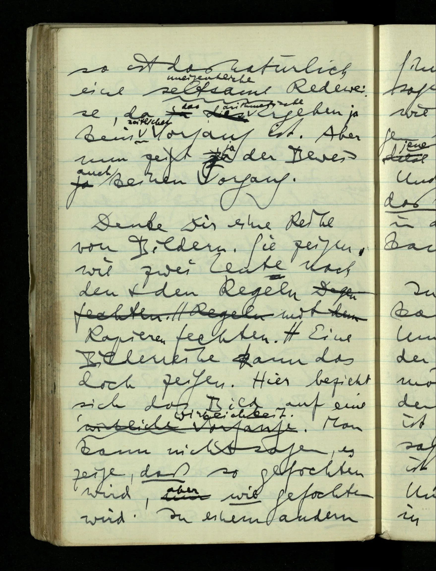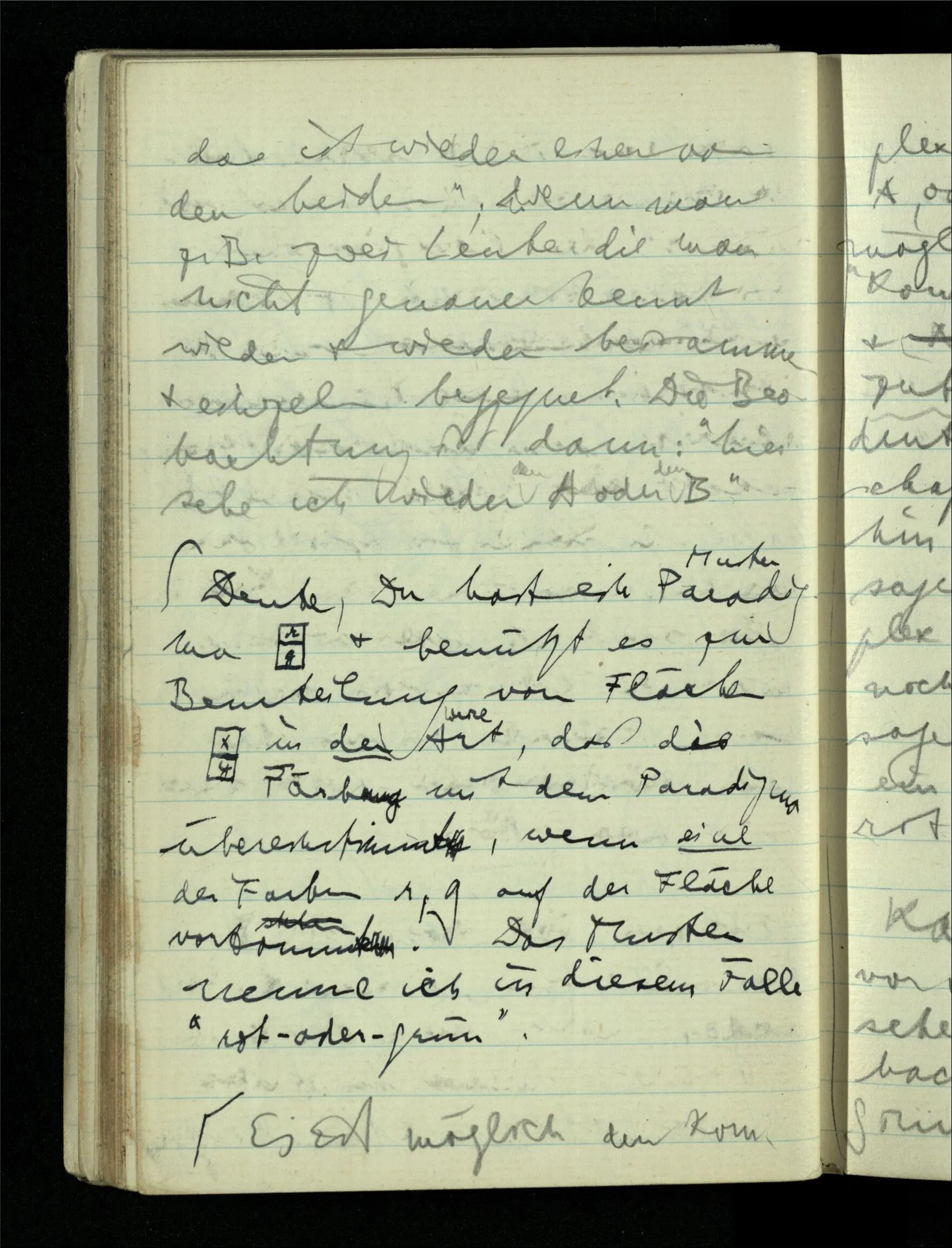 12.01.1943 Die irreführende Idee in der D’schen extensionalen Auffassung ist, daß die reellen Zahlen in der Zahlenlinie alle ausgebreitet da liegen. – Man kennt sie nicht alle, aber was macht das? Und so braucht man nur zu schneiden, oder in Klassen teilen & hat sie alle geteilt, die bekannten & die unbekannten.