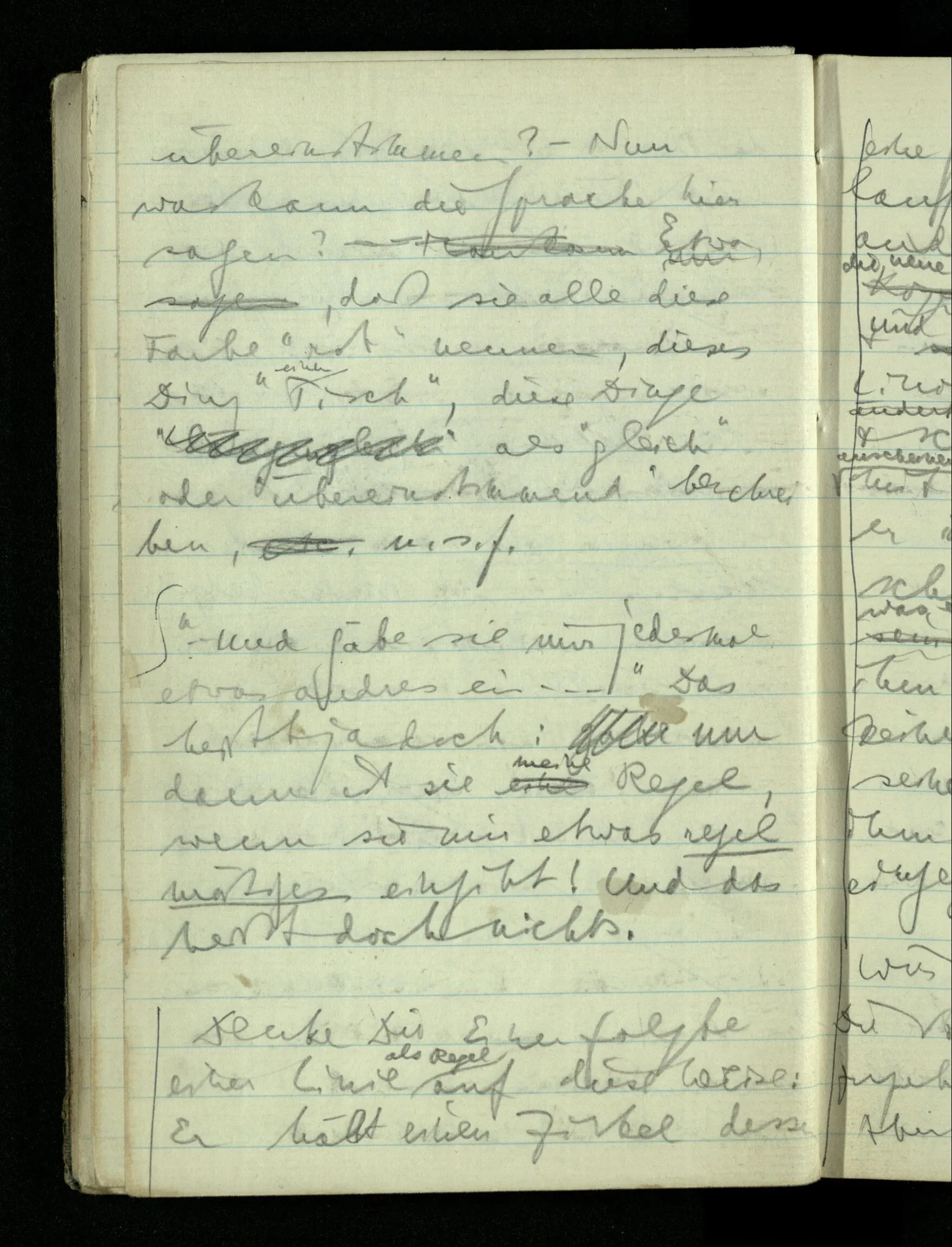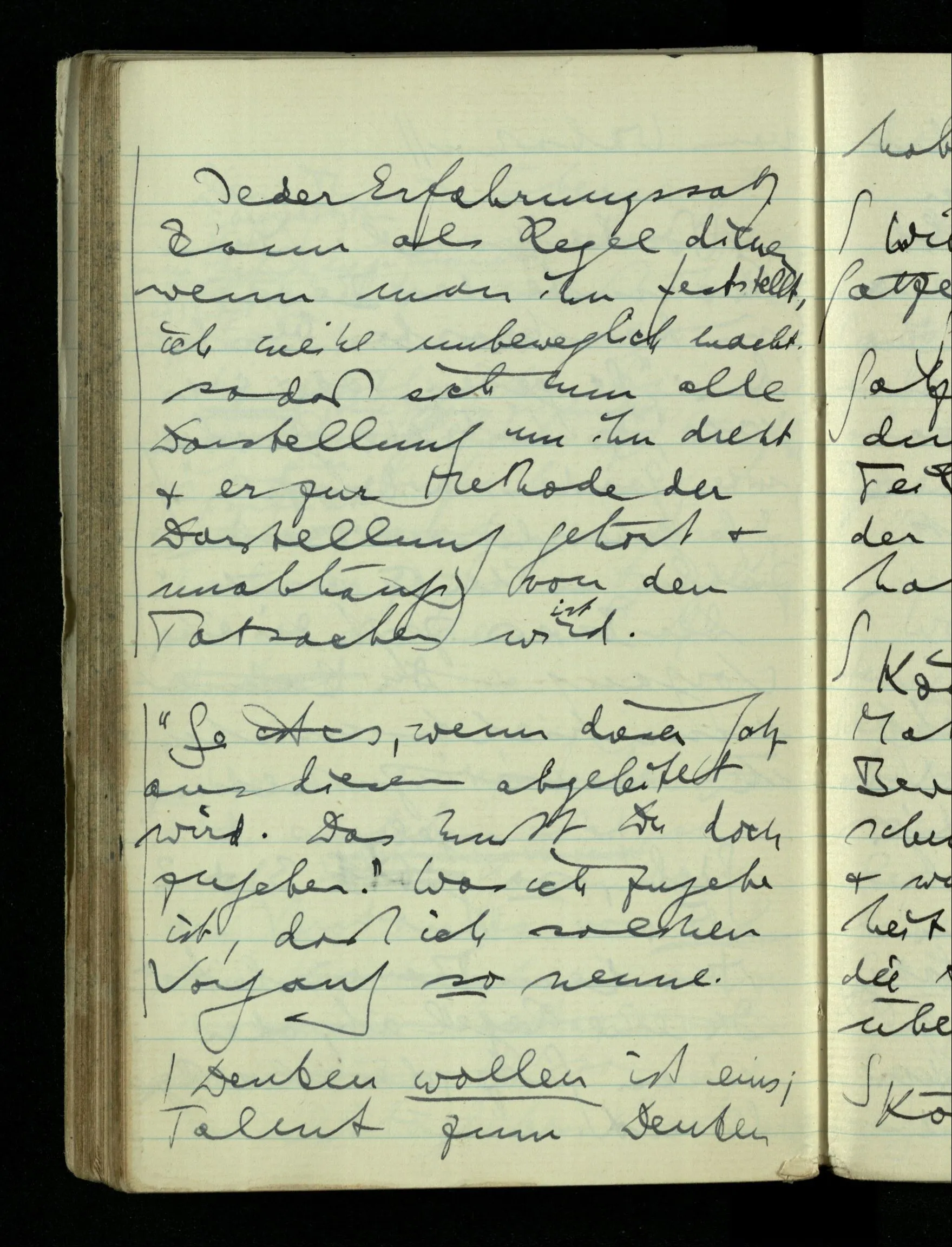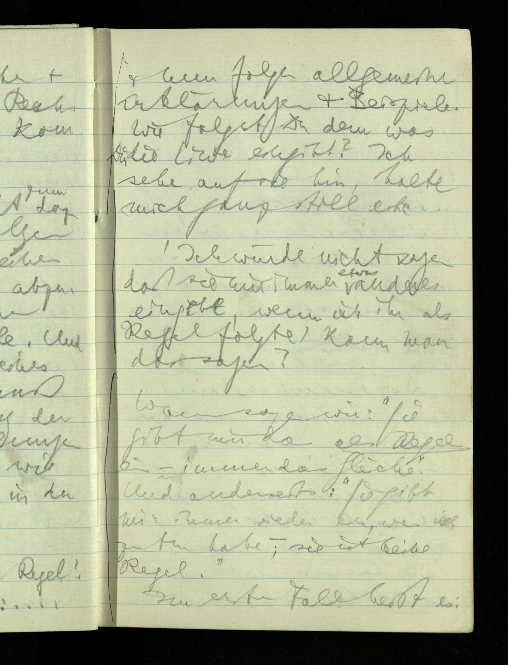 Jeder Erfahrungssatz kann als Regel dienen wenn man ihn feststellt, ich meine unbeweglich macht, so daß sich nun alle Darstellung um ihn dreht & er zur Methode der Darstellung gehört & unabhängig von den Tatsachen wird.