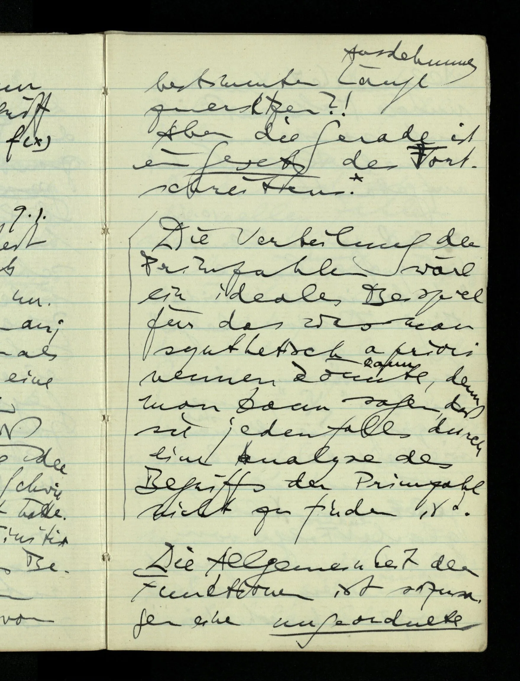 Die Verteilung der Primzahlen wäre ein ideales Beispiel für das was man synthetisch a priori nennen könnte, denn man kann sagen, daß sie jedenfalls durch eine Analyse des Begriffs der Primzahl nicht zu finden ist.