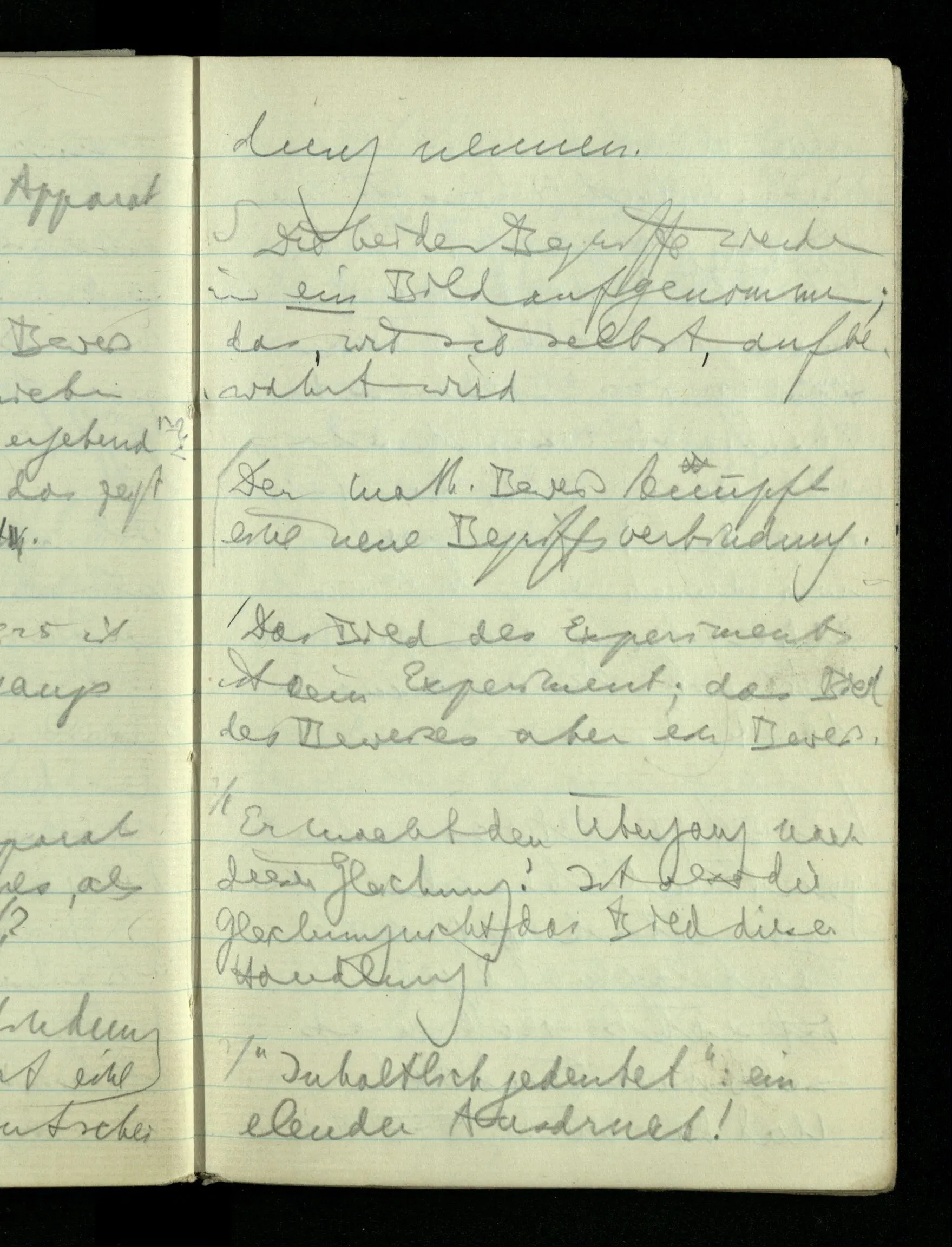 Könnte man sich denken daß Physik so gelehrt würde. Der Schüler dürfte die Apparate sehen, aber kein Experiment. Es würde ihm gesagt: “Wenn man diese Drähte so & so verbindet & dann diesen Hebel niederdrückt gibt dieser Zeiger einen Ausschlag & …”