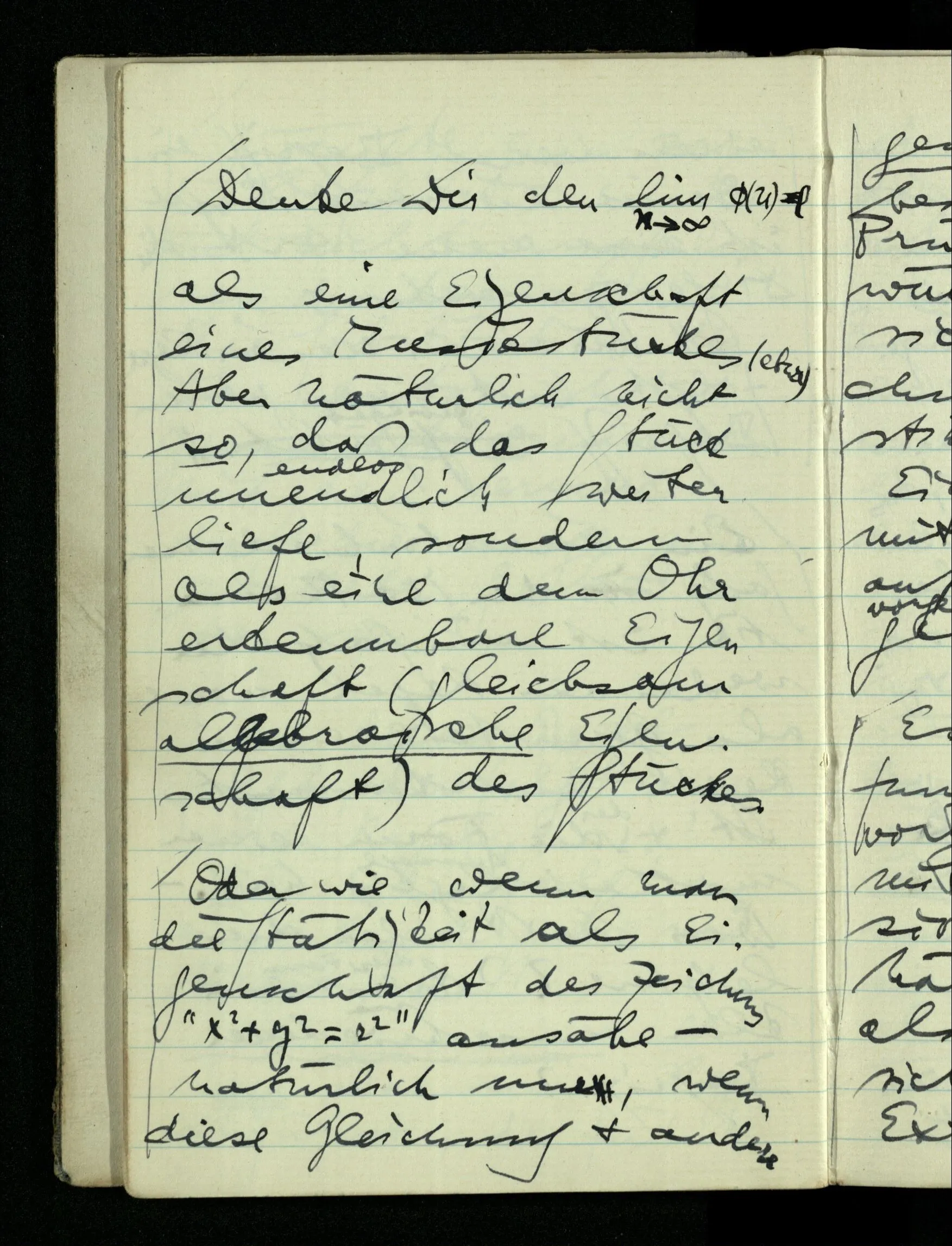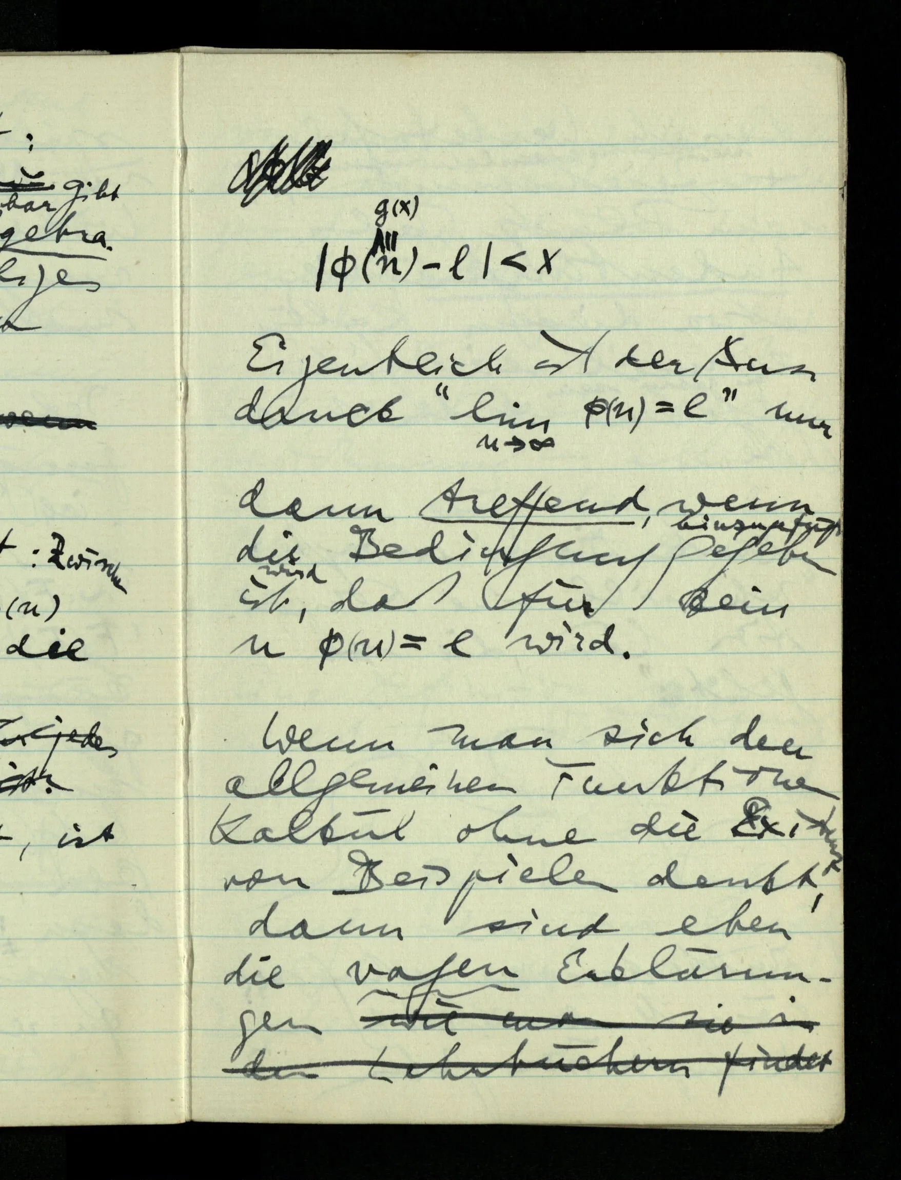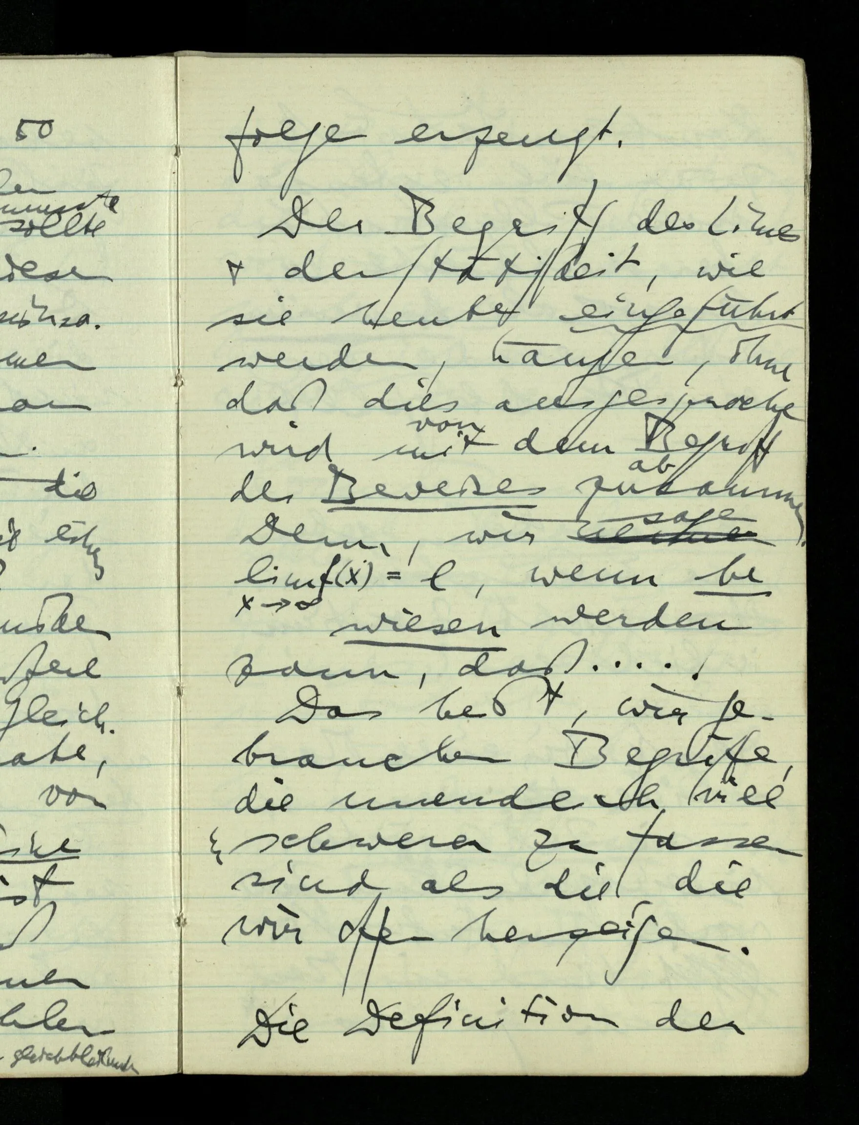 Der Begriff des Limes & der Stätigkeit, wie sie heute eingeführt werden, hängen, ohne daß dies ausgesprochen wird mit dem Begriff des Beweises zusammen. Denn wir sagen , wenn bewiesen werden kann, daß … Das heißt, wir gebrauchen Begriffe, die unendlich viel schwerer zu fassen sind als die, die wir offen herzeigen.