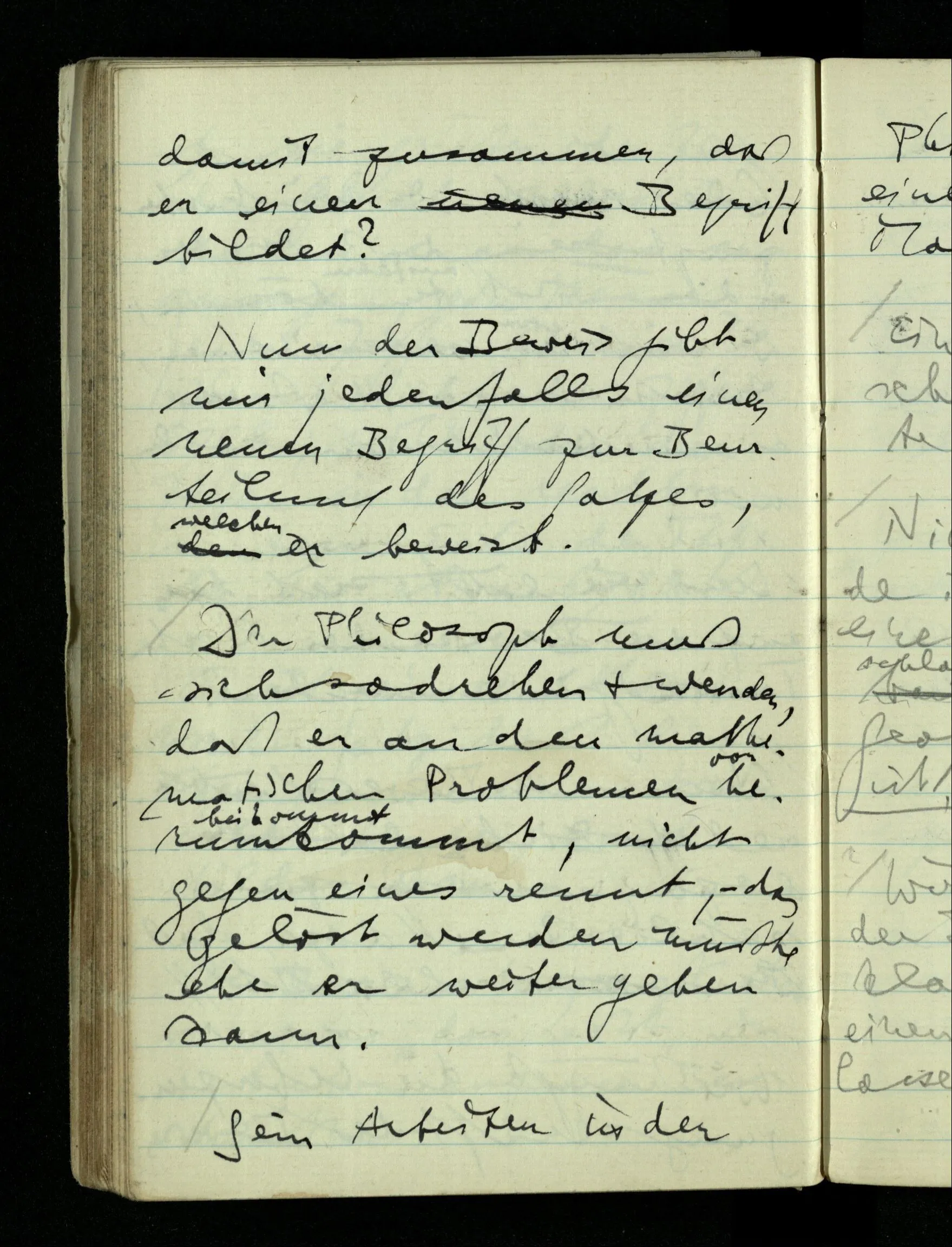 Von den Mathematikern kann man nur Mathematik lernen, aber nicht die Philosophie der Mathematik. Ich meine man kann ihnen nur absehen was sie treiben indem man ihnen zusieht aber ihnen nicht glauben, wenn sie darüber Rechenschaft ablegen.