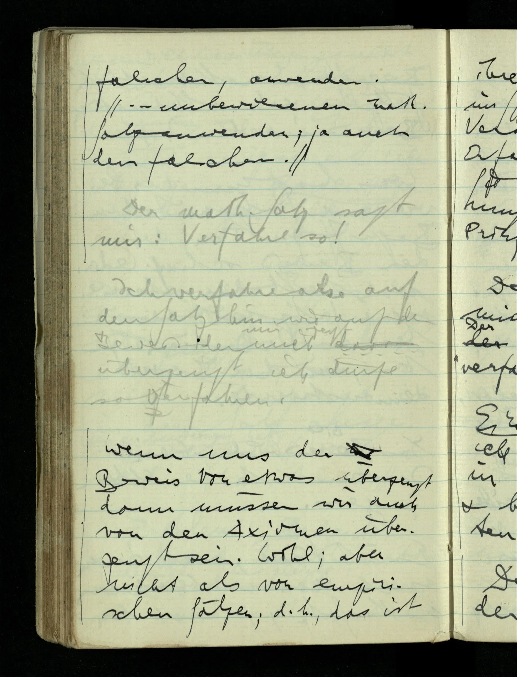 Ich verfahre also auf den Satz hin wie auf den Beweis der mich davon überzeugt ich dürfe so verfahren.