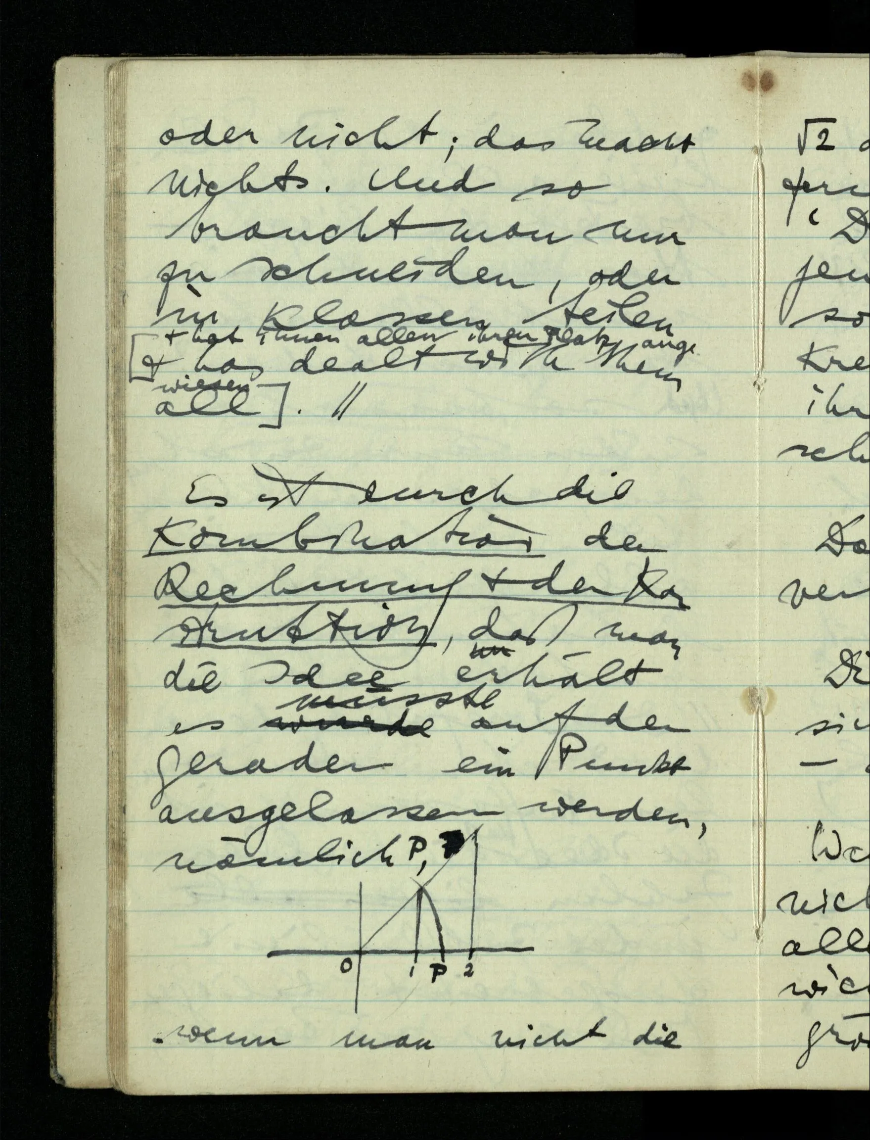 wenn man nicht die √2 als ein Maß der Entfernung von O zuließe. ‘Denn, wenn ich wirklich genau konstruierte, so müßte dann der Kreis die Gerade zwischen ihren Punkten hindurch schneiden’.