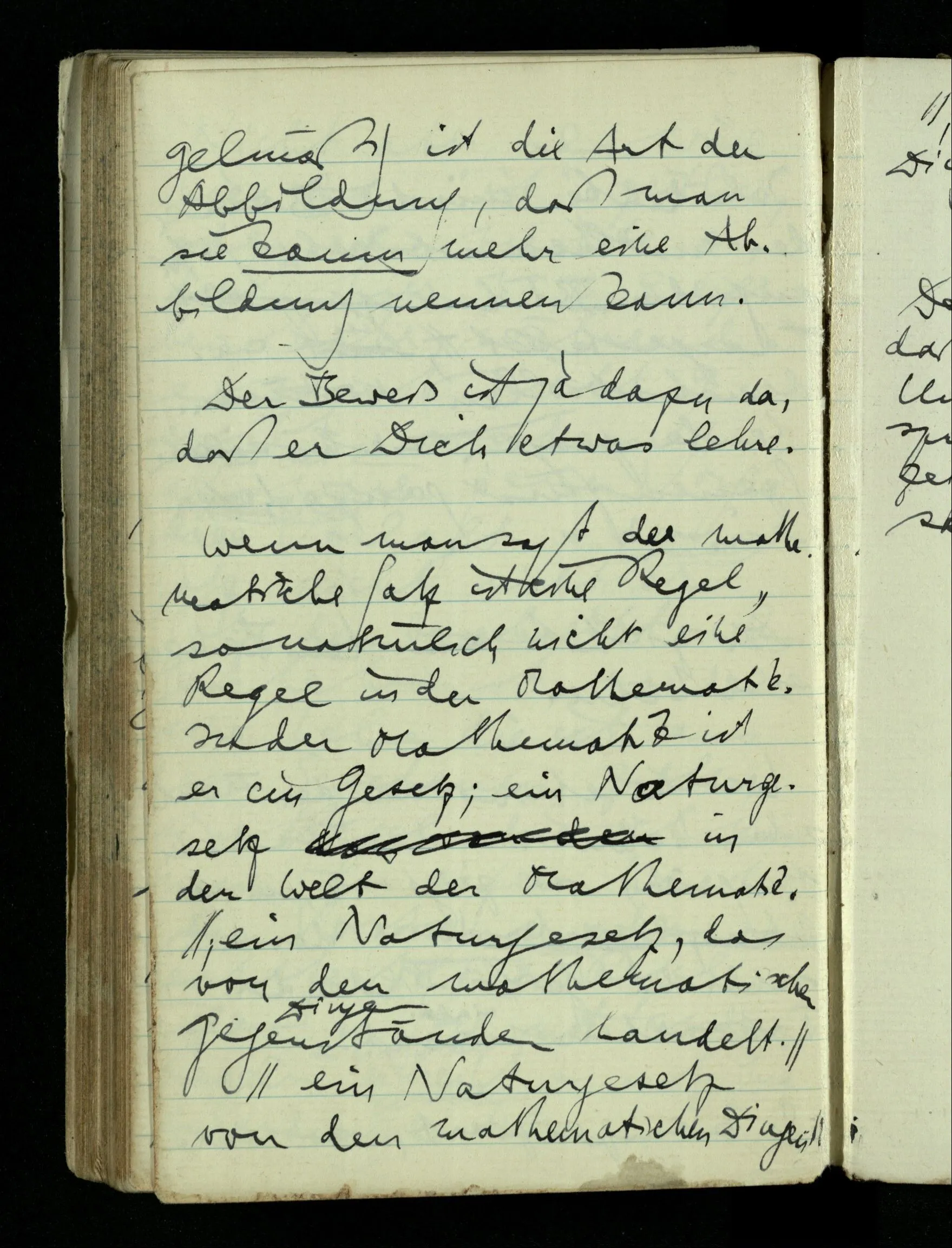 Wenn man sagt der mathematische Satz ist eine Regel, so natürlich nicht eine Regel in der Mathematik. In der Mathematik ist er ein Gesetz; ein Naturgesetz in der Welt der Mathematik.