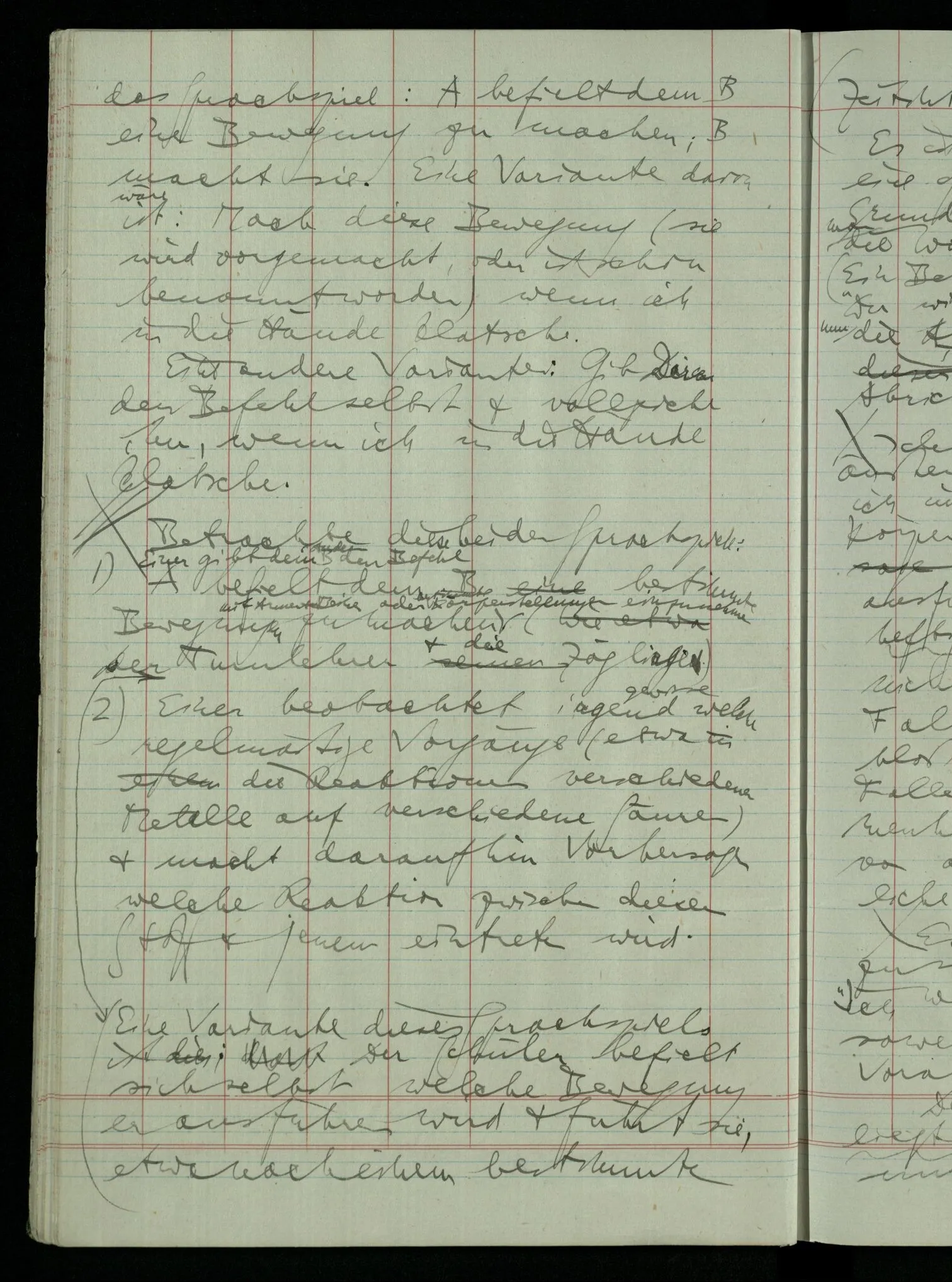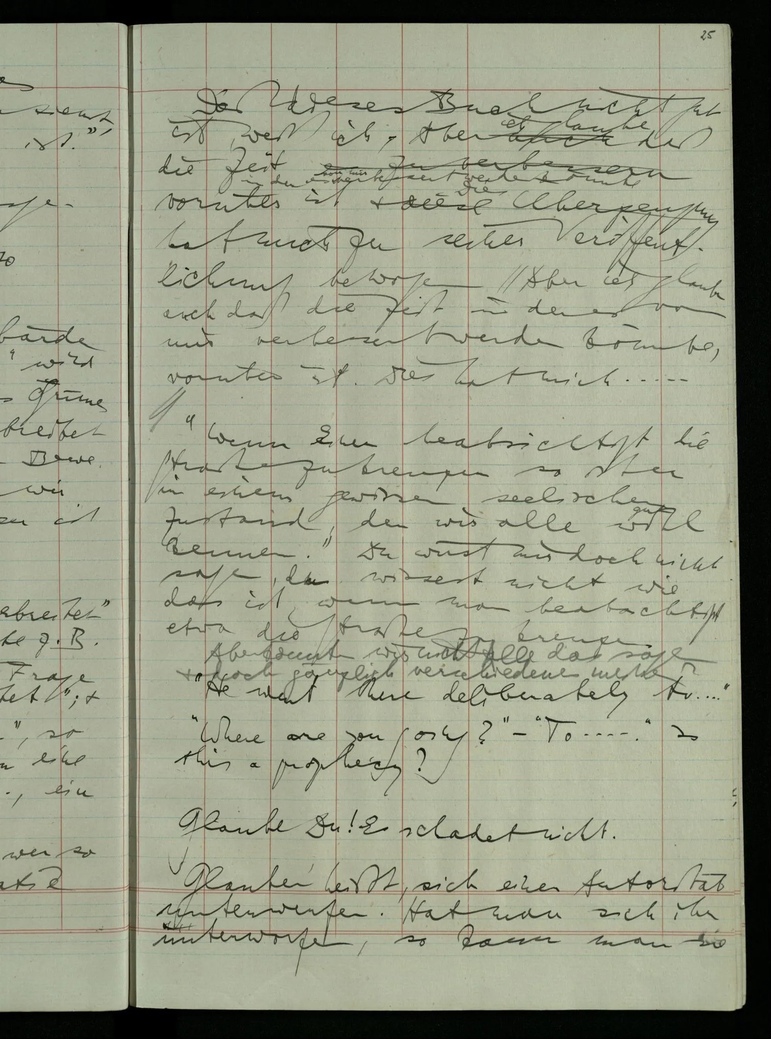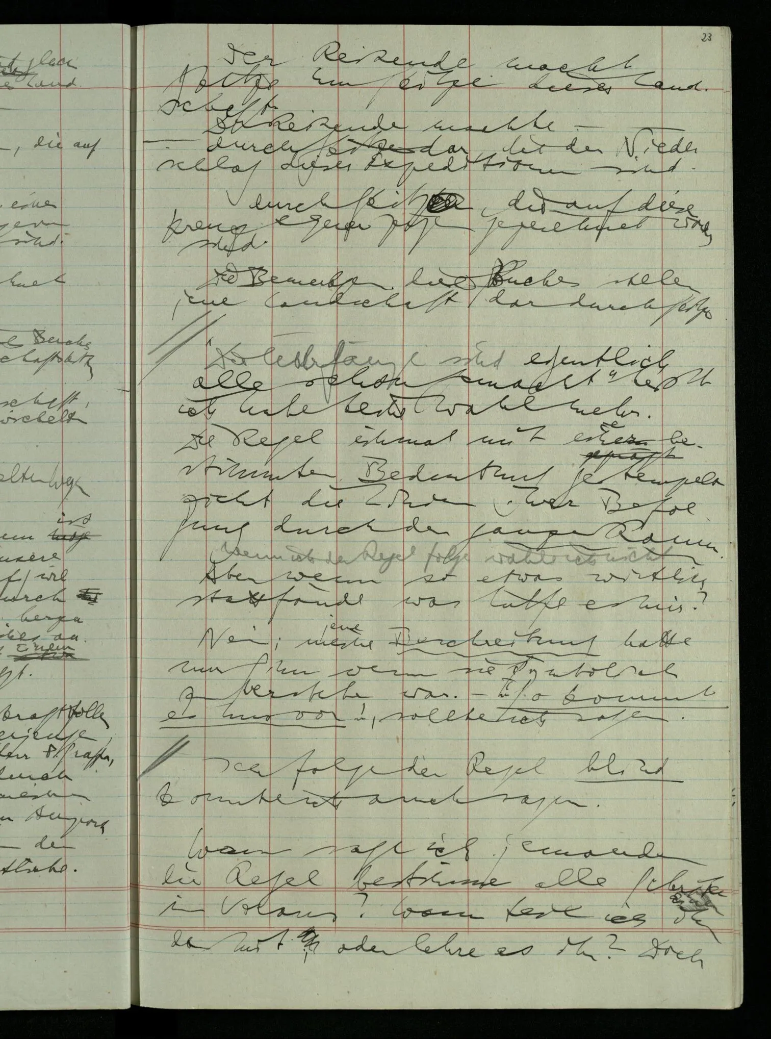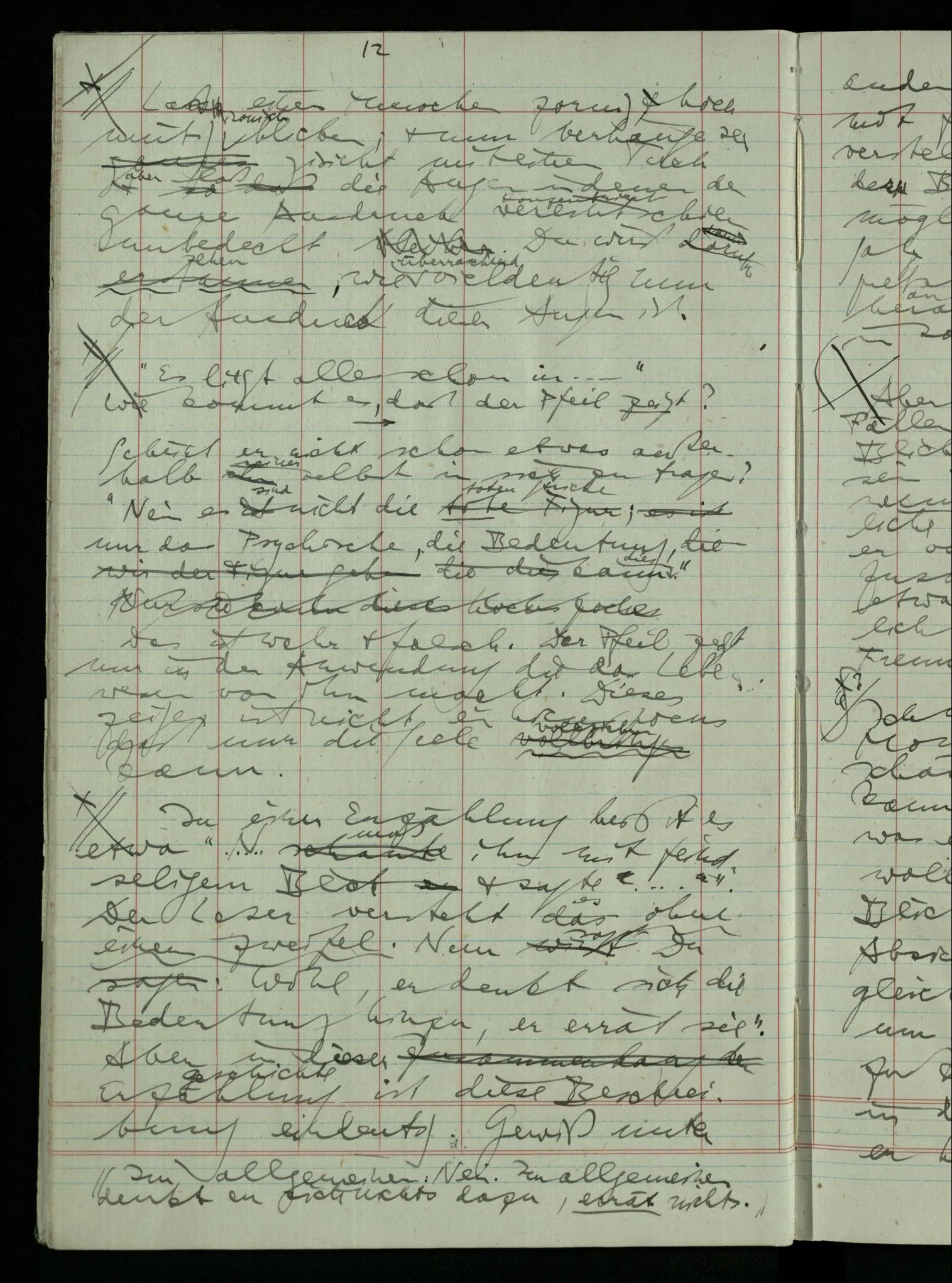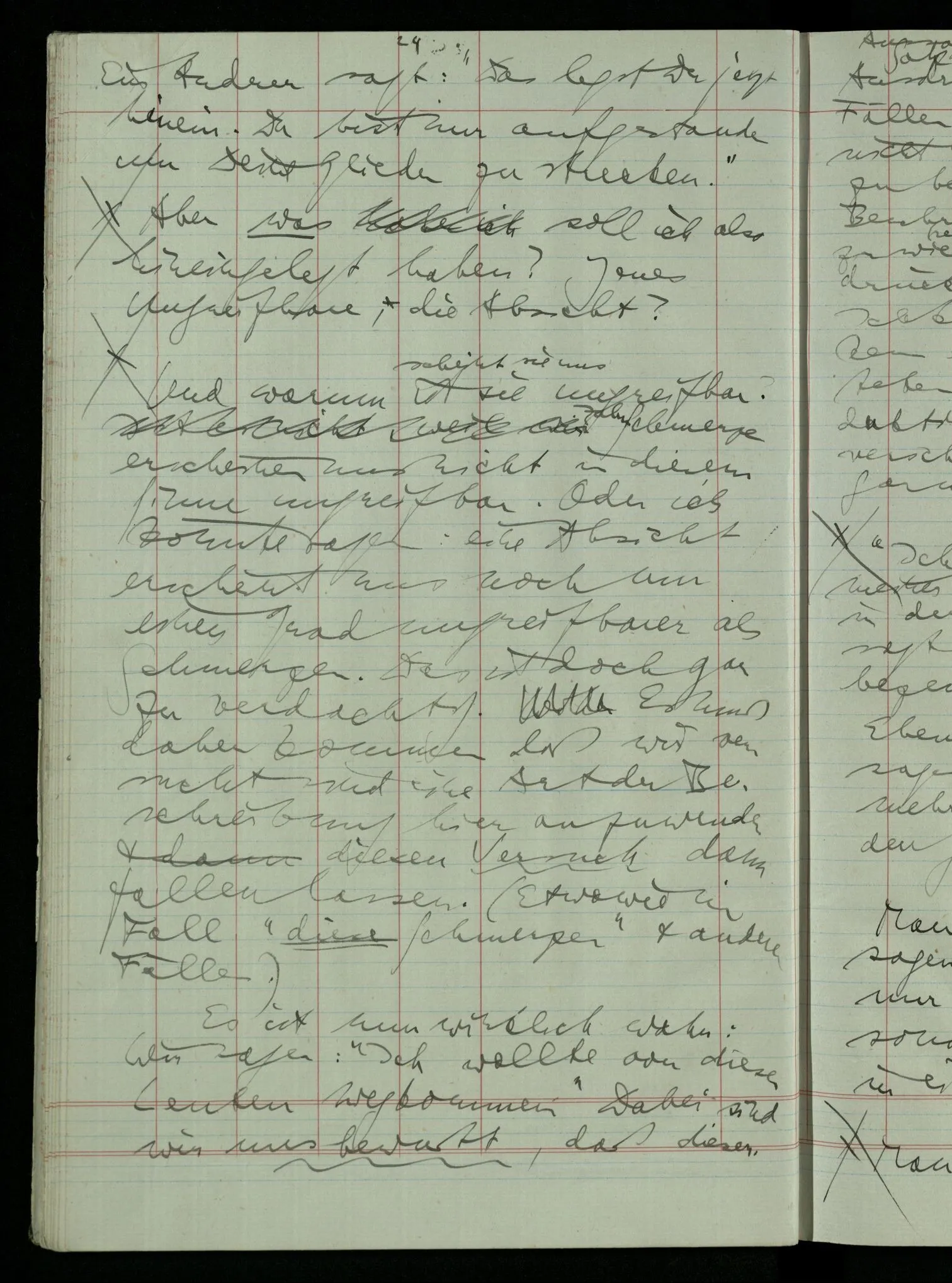 “Ich schäme mich nicht dessen was ich damals tat, sondern der Absicht die ich hatte.” – Aber lag die Absicht nicht auch in dem, was ich tat? Worin bestand das Beabsichtigen? Nur in dem was ich damals dachte, zu mir selber sagte? Wodurch ist die Absicht gegeben? Durch die ganze Geschichte –.