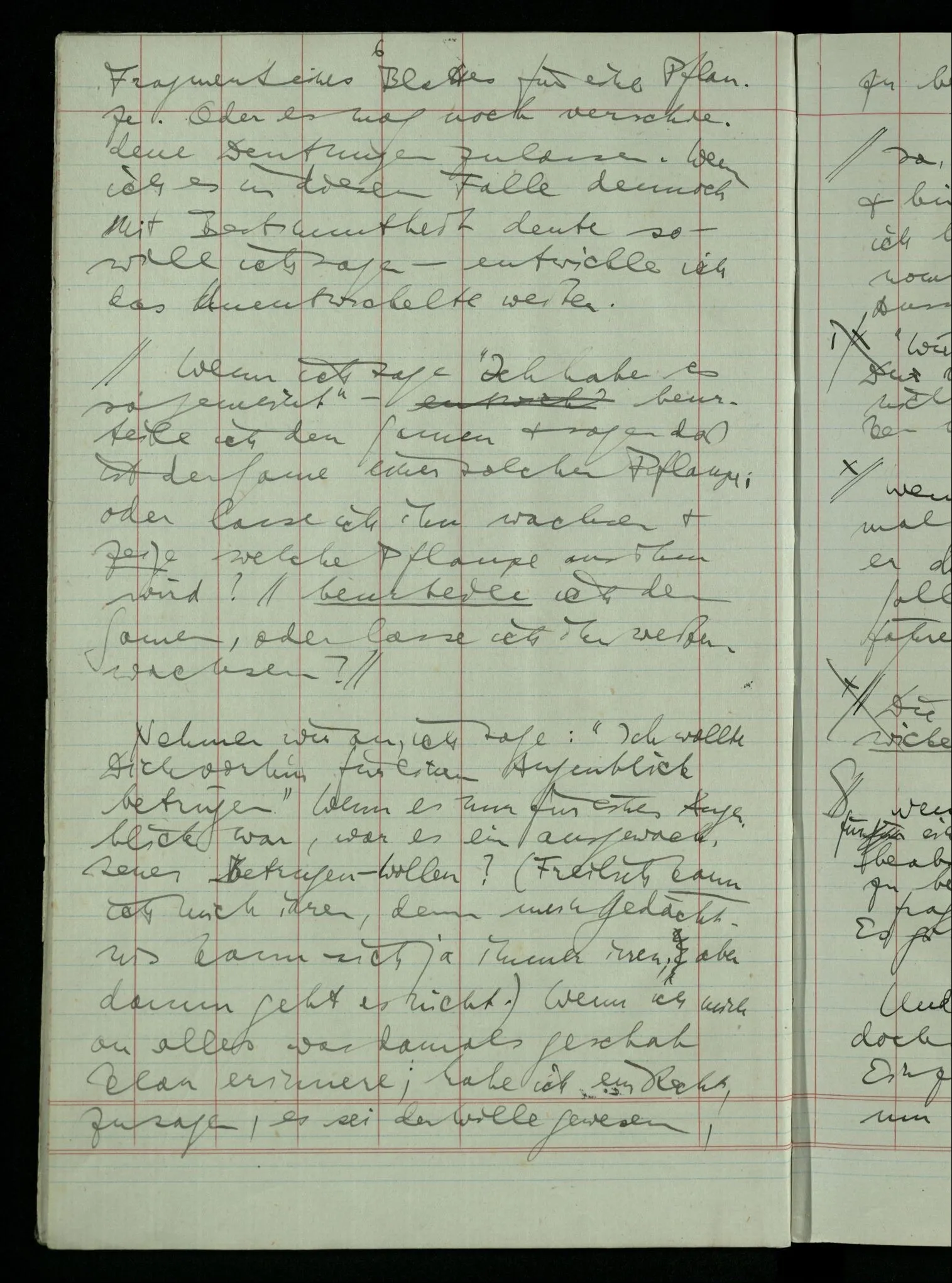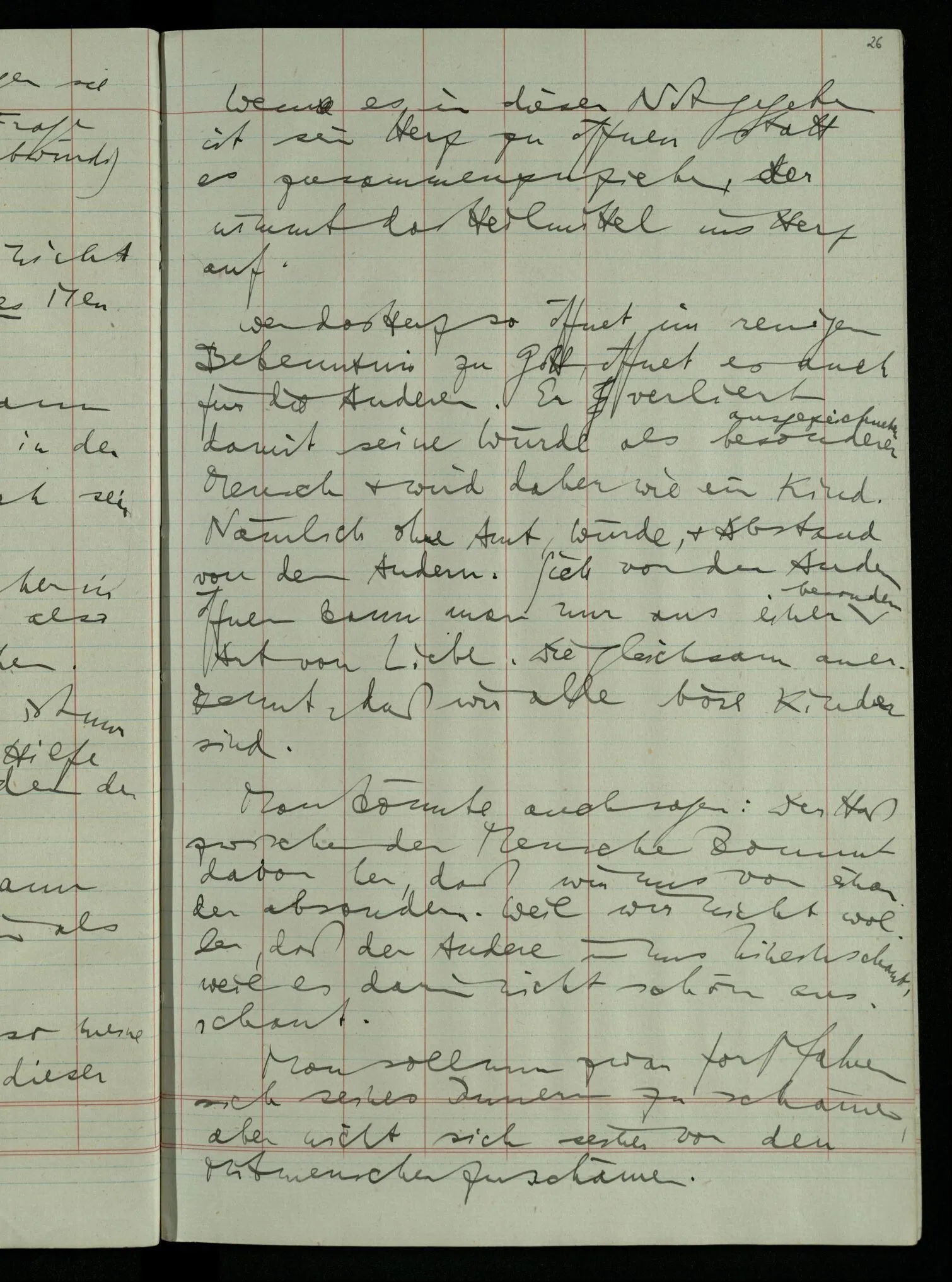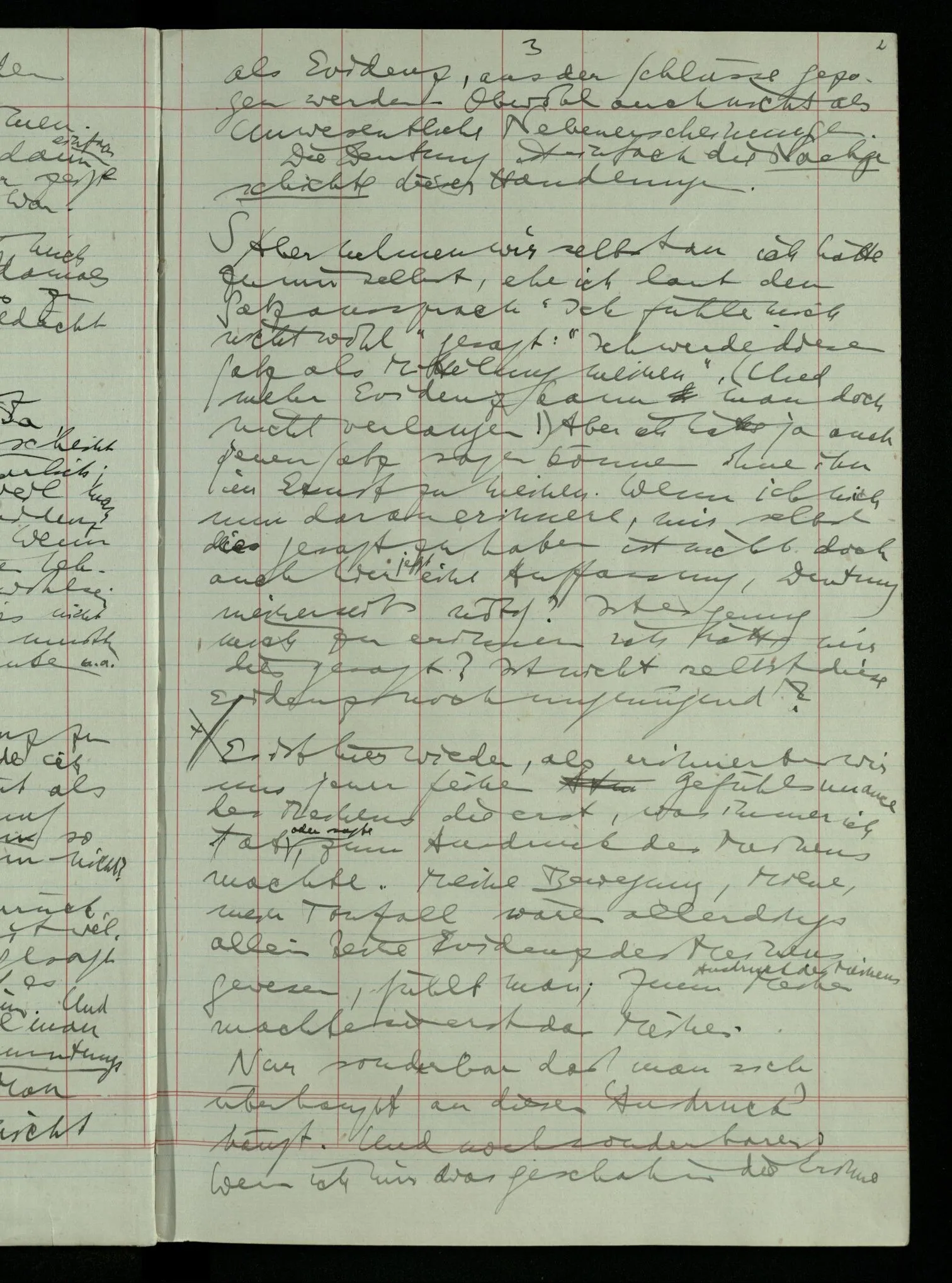 Ich schäme mich, daß ich ihn damals betrügen wollte. Daß ich diese Absicht hatte. Wessen schäme ich mich nun? Ich rufe mir den Vorfall in’s Gedächtnis – wie ich ihn anschaute etc. etc. Ich bin also ganz sicher damals etwas Böses getan zu haben.