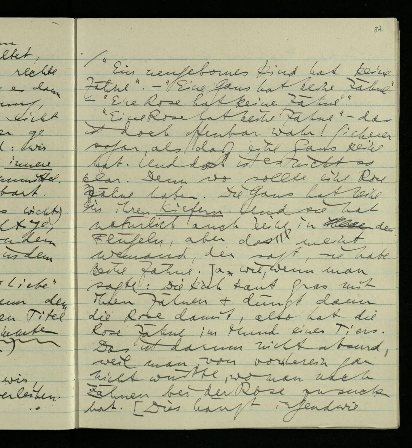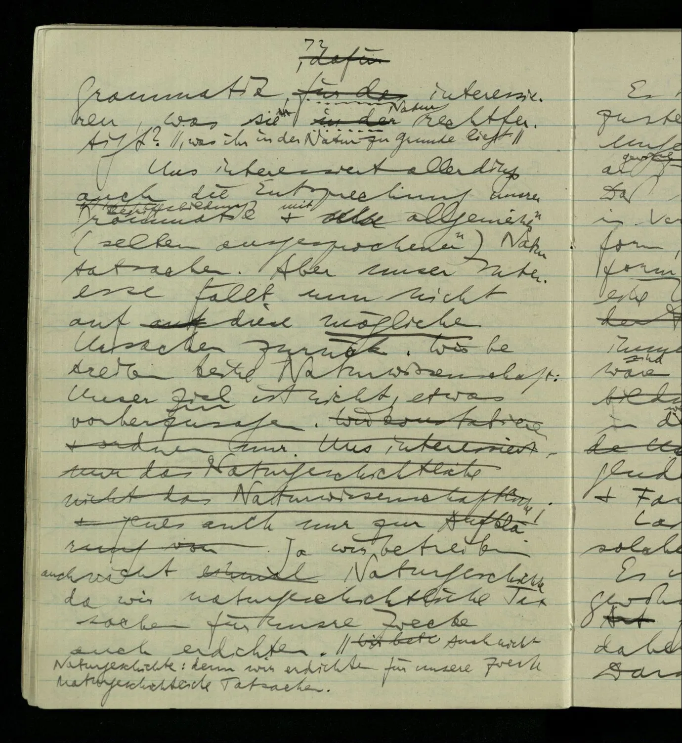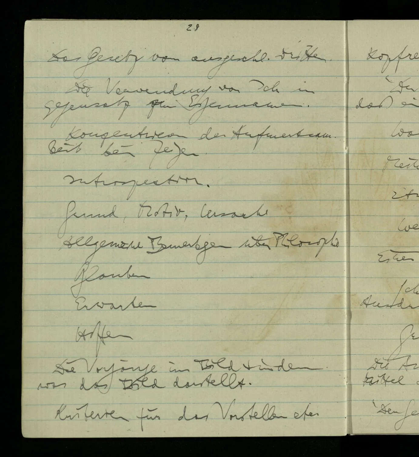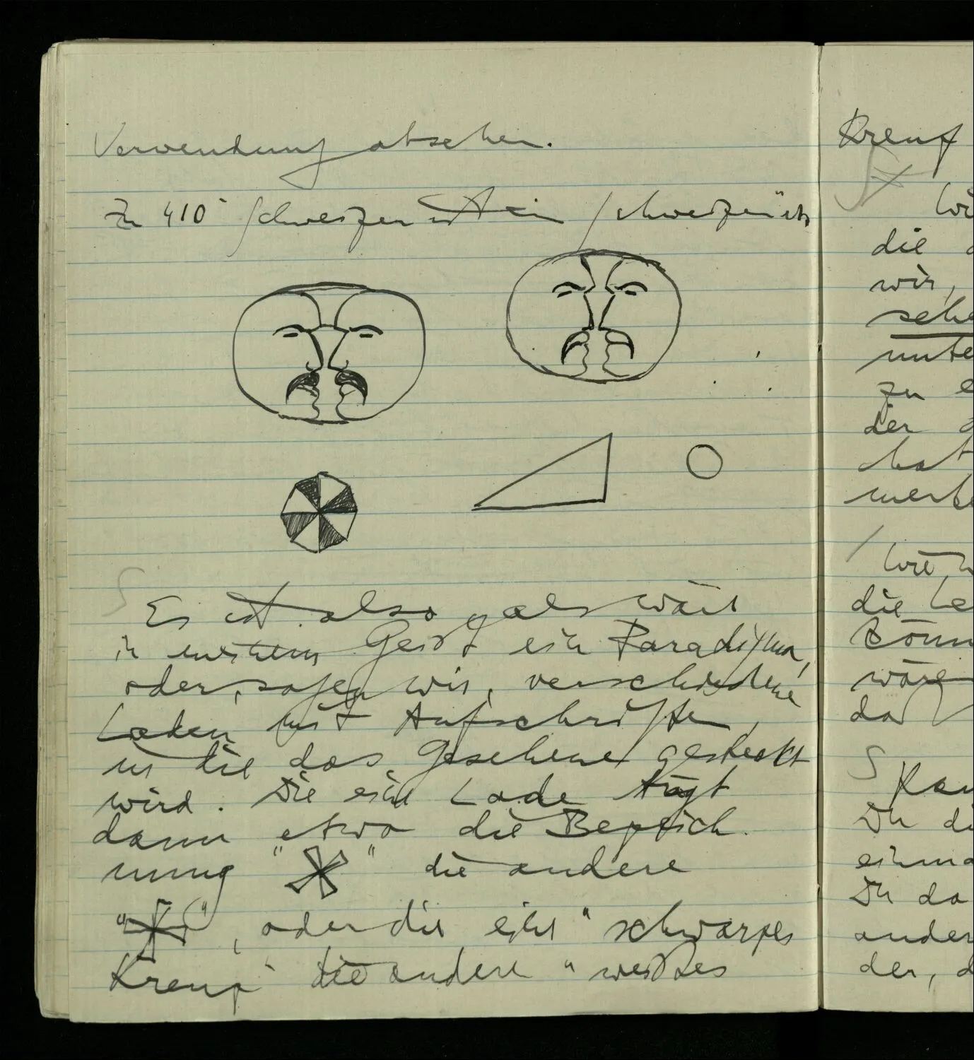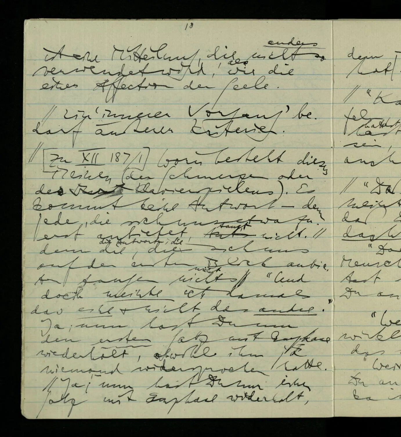 Im Gerichtssaal: “Hatten Sie die Absicht, zu ihm zu gehen, oder gingst Du nur zufällig an seinem Hause vorbei?” Wann hatte ich nun die Absicht? Auf dem ganzen Wege? Oder als ich mir sagte ‘ich will zu ihm gehen’? – Und als ich mir’s sagte, was geschah da in meinem Innern? Oder geschah nichts? – Wie sieht das aus, wenn nichts geschieht?