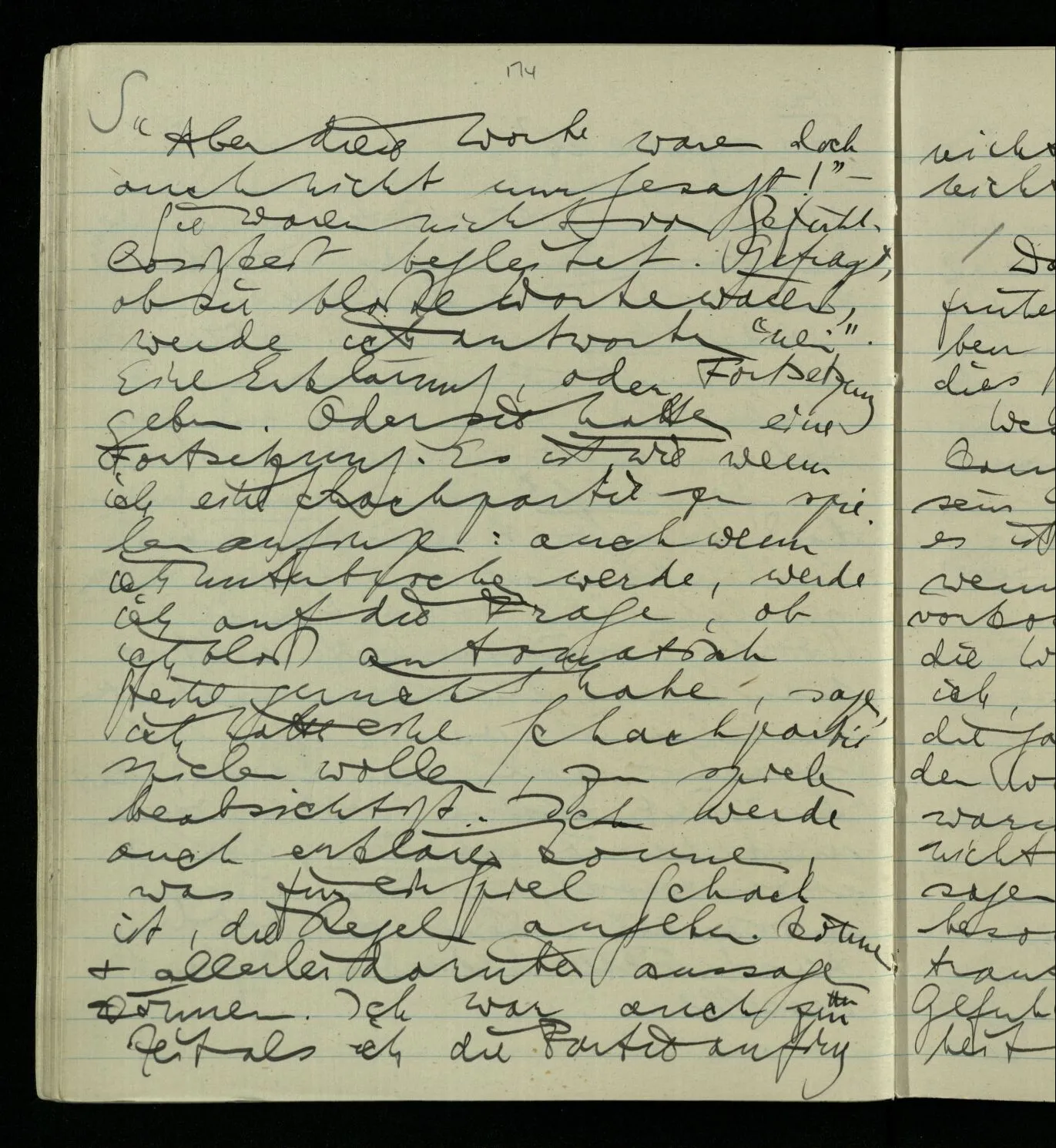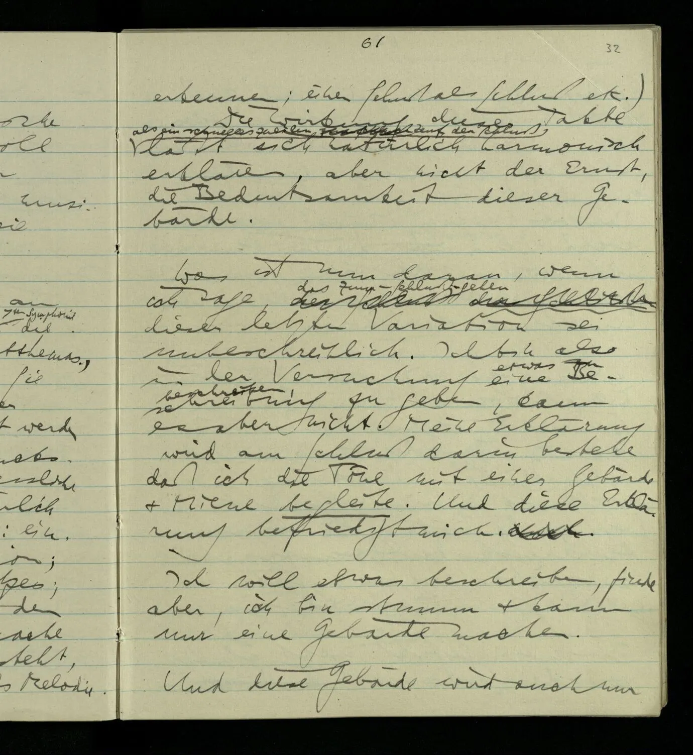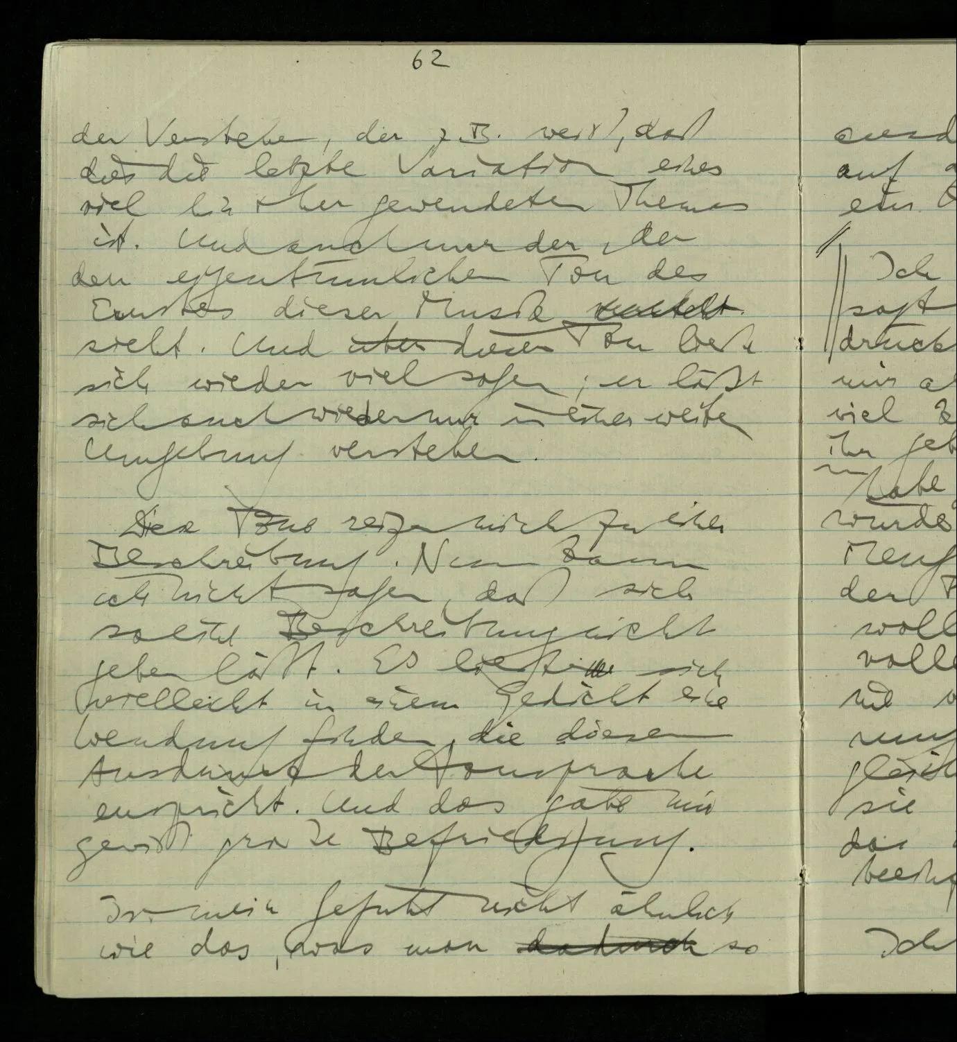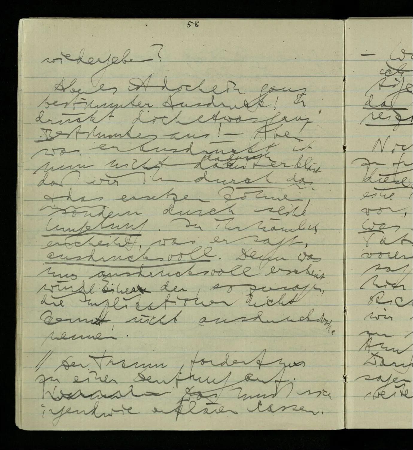 08.08.1946 Ich bin sehr traurig, sehr oft traurig. Ich fühle mich so, als sei das jetzt das Ende meines Lebens. Und doch ist es möglich daß mein Leben noch Jahrelang weitergeht; wie? weiß Gott. Das Eine was die Liebe zu B. für mich getan hat ist: sie hat die übrigen kleinlichen Sorgen, jene Stellung & Arbeit betreffend, in den Hintergrund gejagt; wenigstens auf kurze Zeit. Ich sehe manchmal, daß es wichtiger ist, zu leben, als die & die Stellung zu haben.
