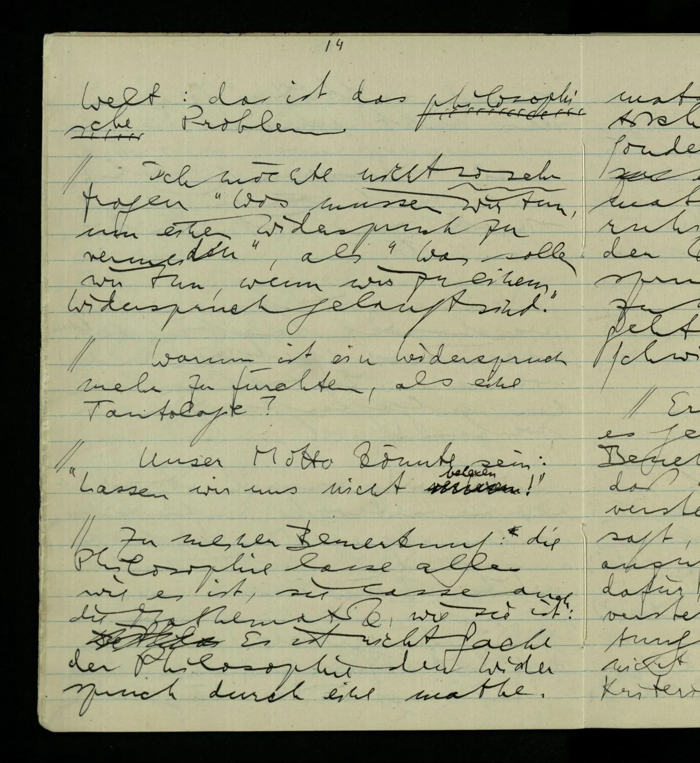 Ich möchte nicht so sehr fragen “Was müssen wir tun, um einen Widerspruch zu vermeiden”, als “Was sollen wir tun, wenn wir zu einem Widerspruch gelangt sind.”