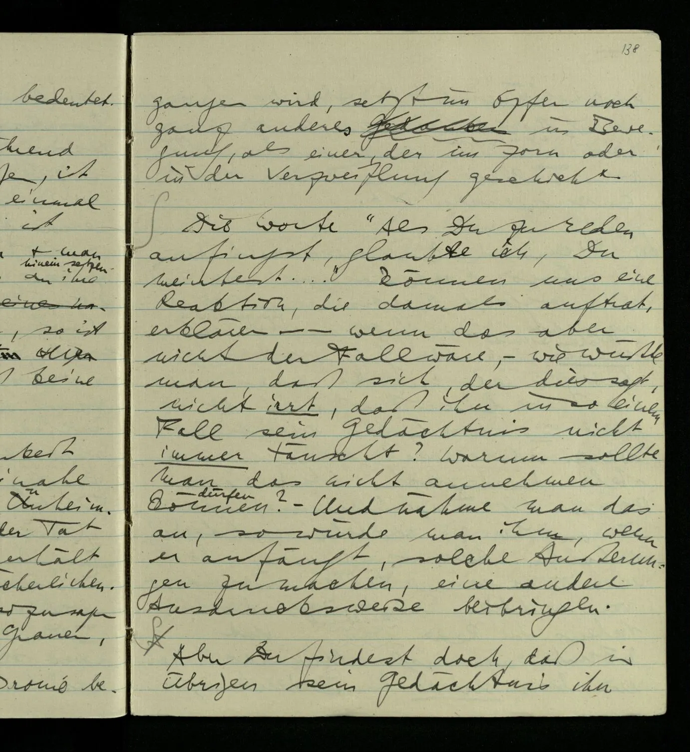 Aber Du findest doch, daß im übrigen sein Gedächtnis ihn nicht täuscht! – Aber das braucht mich nicht hindern, anzunehmen, daß ihm in einer andern Klasse von Fällen keine Bedeutung zuzumessen ist.