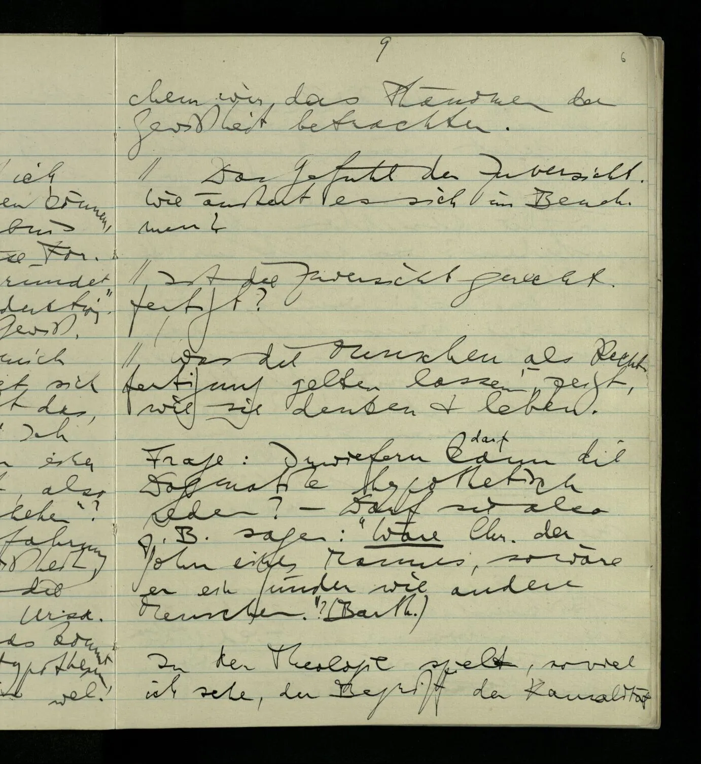 Frage: Inwiefern kann die Dogmatik hypothetisch reden? – Darf sie also z.B. sagen: “Wäre Christus der Sohn eines Mannes, so wäre er ein Sünder wie andere Menschen.”? (Barth.)