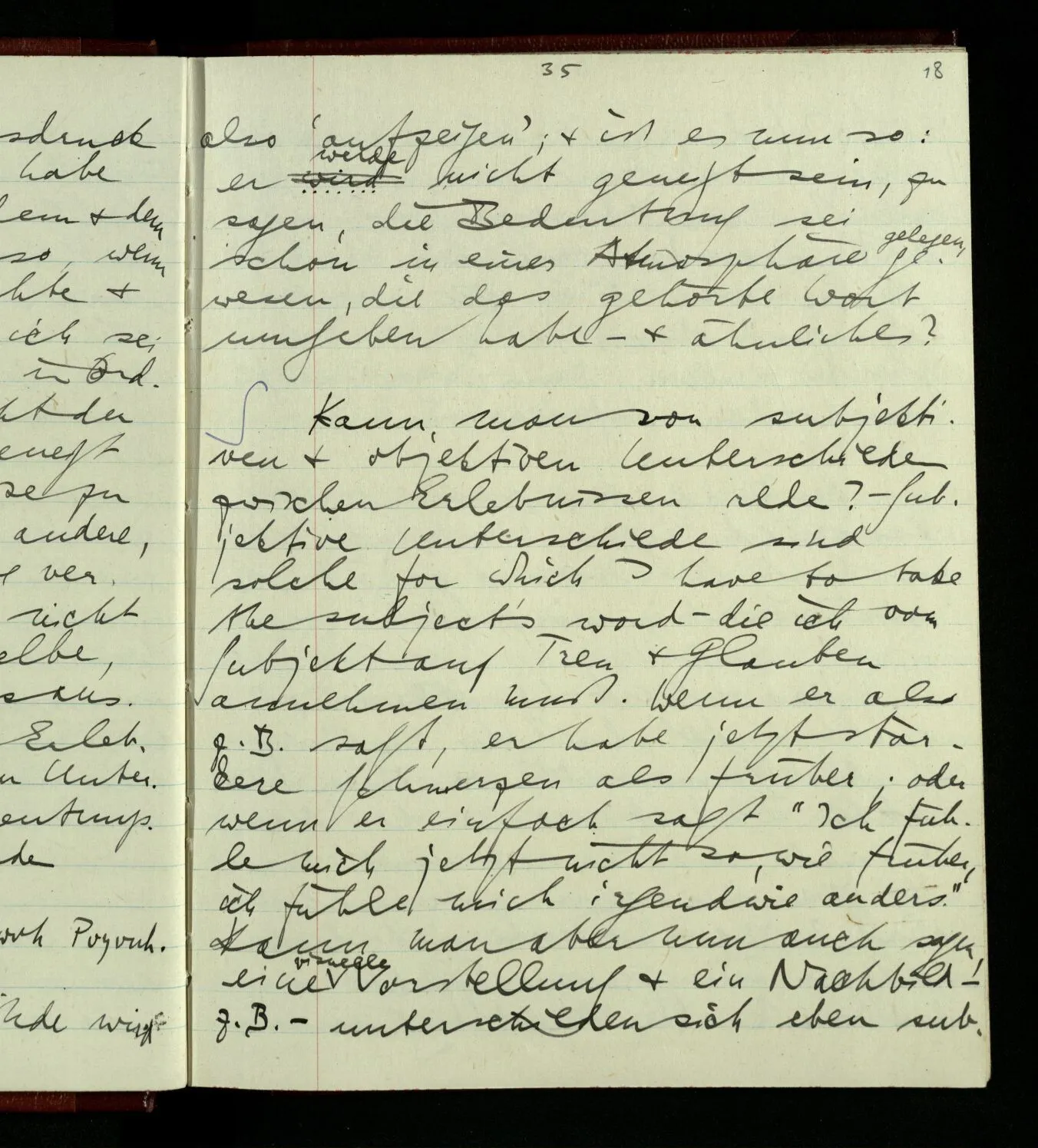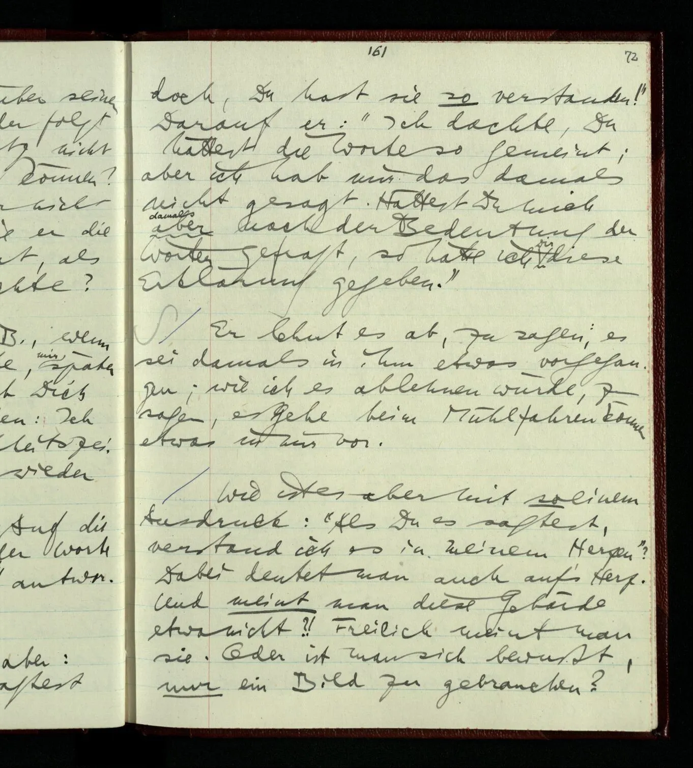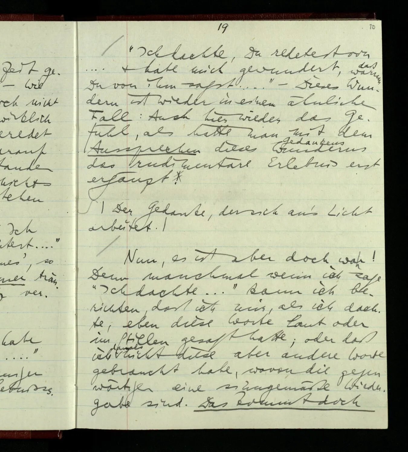 “Ich dachte, Du redetest von ‥‥ & habe mich gewundert, warum Du von ihm sagst ‥‥” – Dieses Wundern ist wieder in einem ähnlichen Fall: Auch hier wieder das Gefühl, als hätte man mit dem Aussprechen dieses Wunderns das rudimentäre Erlebnis erst ergänzt.