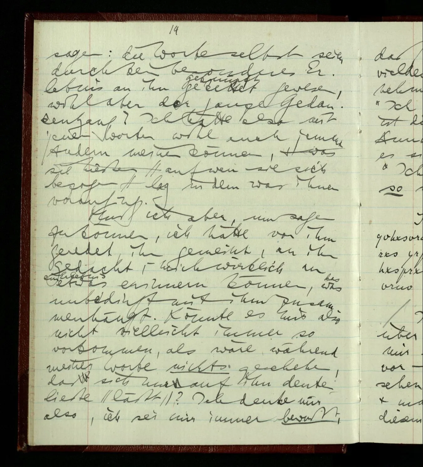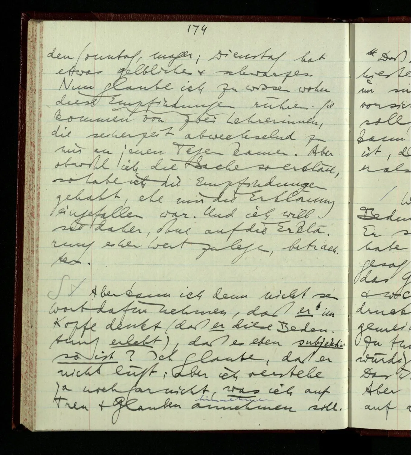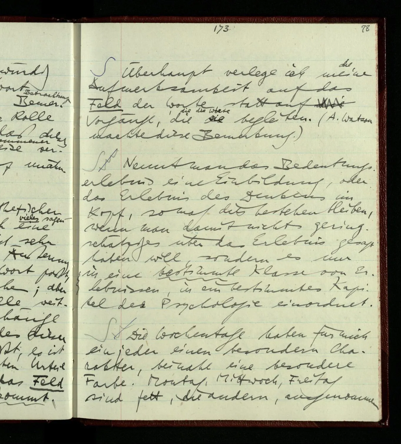 “Ich dachte, Du redetest von ‥‥ & habe mich gewundert, warum Du von ihm sagst ‥‥” – Dieses Wundern ist wieder in einem ähnlichen Fall: Auch hier wieder das Gefühl, als hätte man mit dem Aussprechen dieses Wunderns das rudimentäre Erlebnis erst ergänzt.