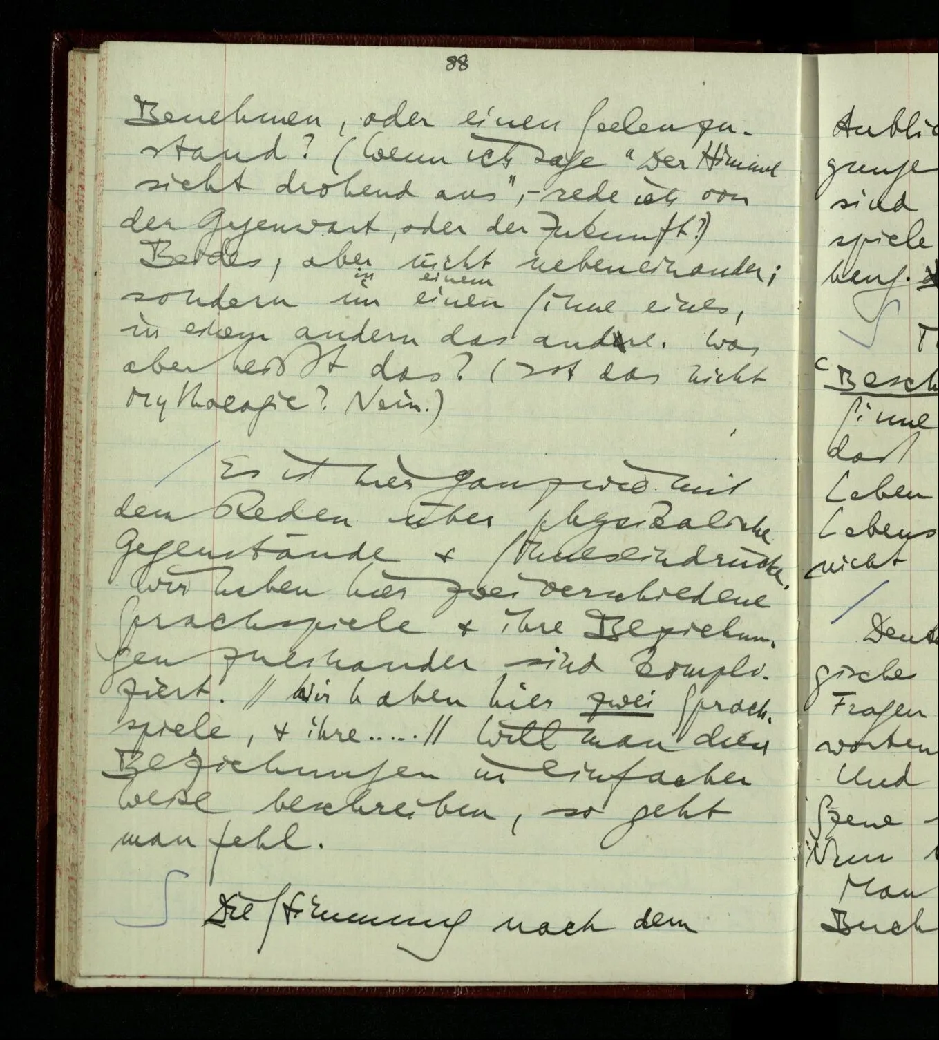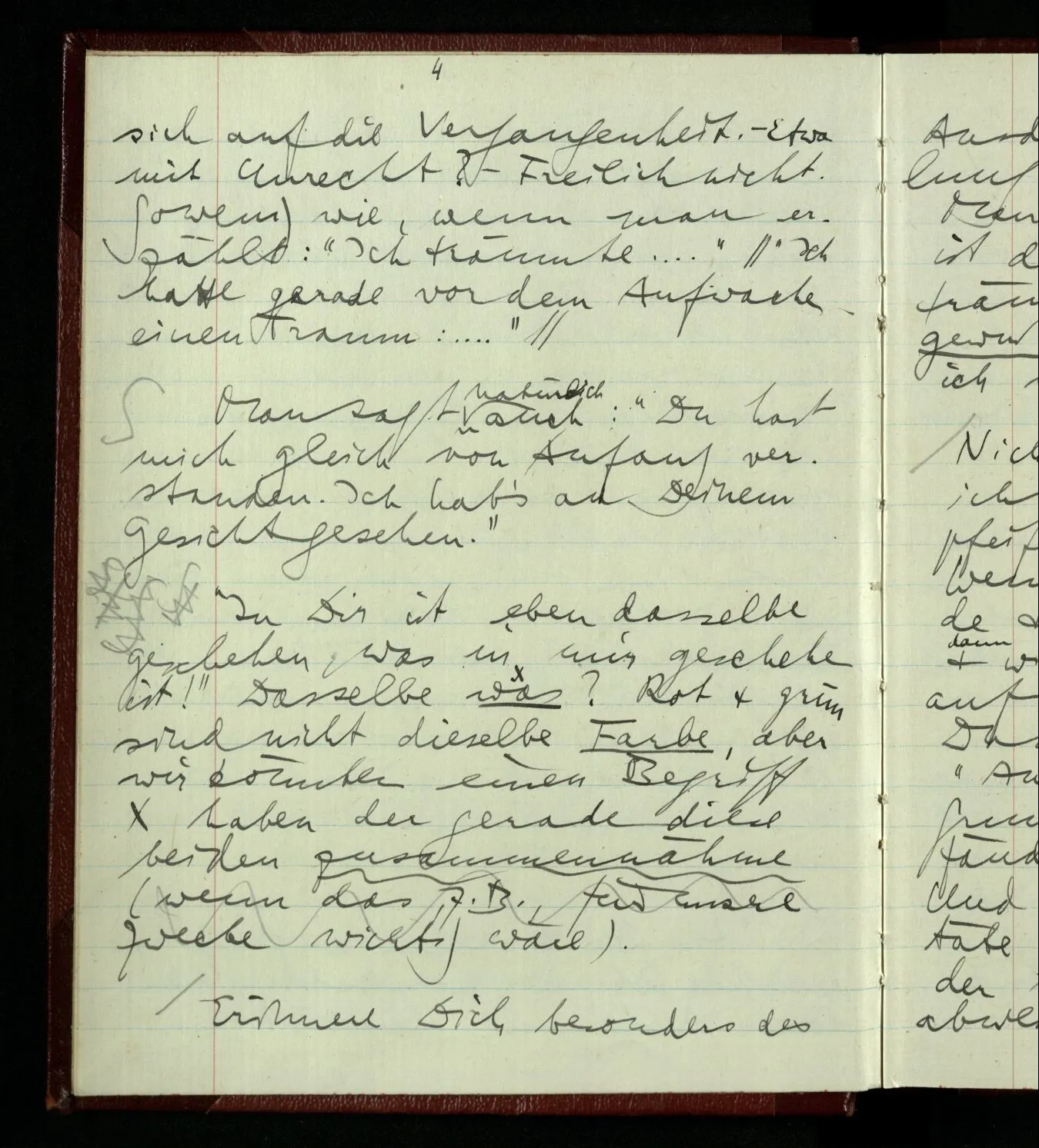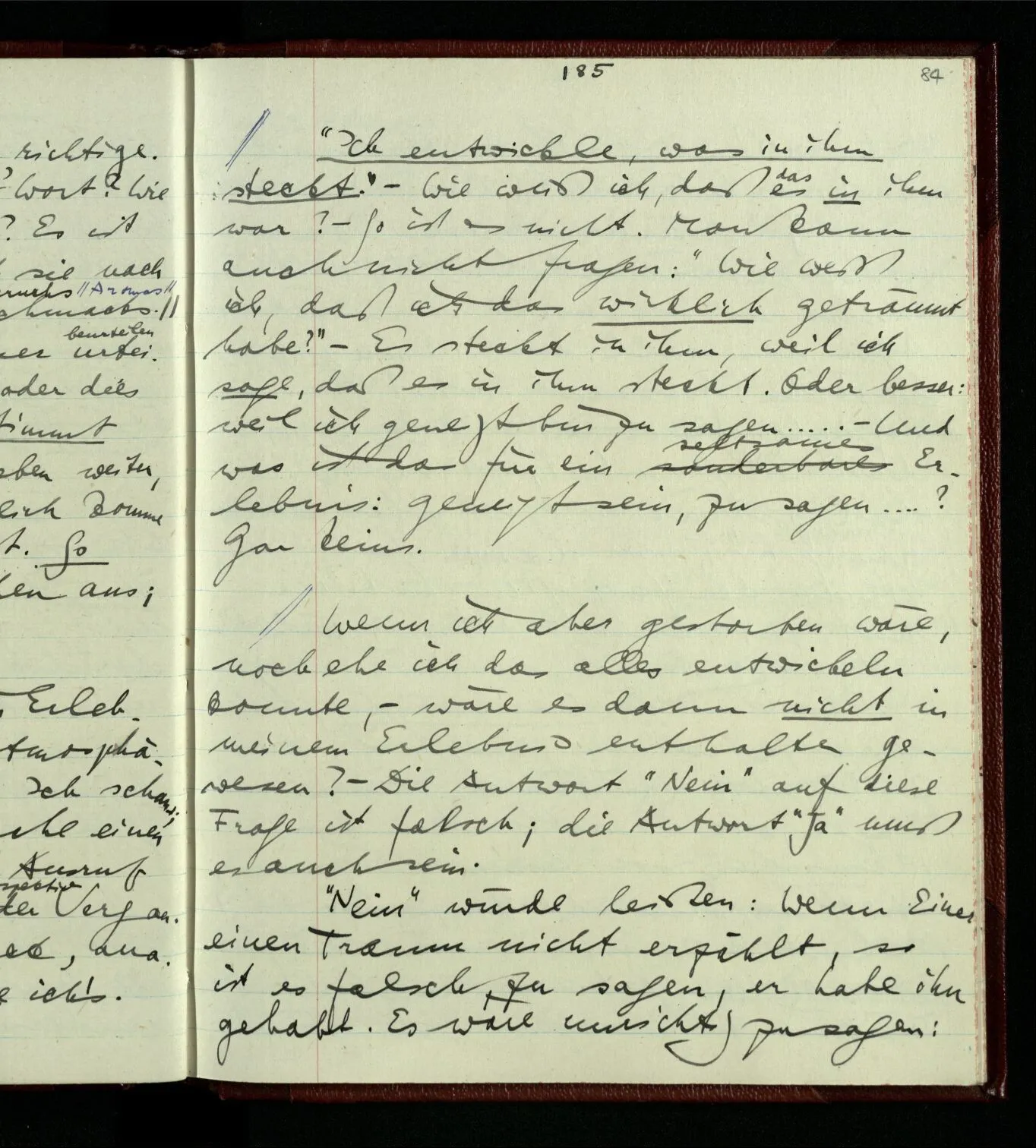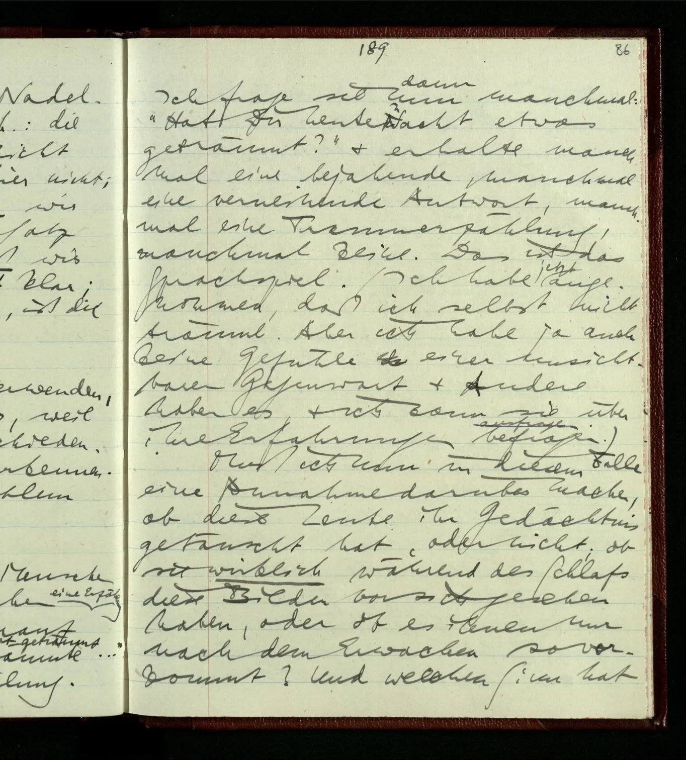 Und man kann wirklich sagen: Was gehen mich seine Träume an? Warum muß mich interessieren, was er träumt, & ob er träumt, während er zu mir spricht, oder mich hört? – Das heißt natürlich nicht, daß diese Träume mich nie interessieren können. Aber warum sollen sie das Wichtigste im sprachlichen Verkehr sein?