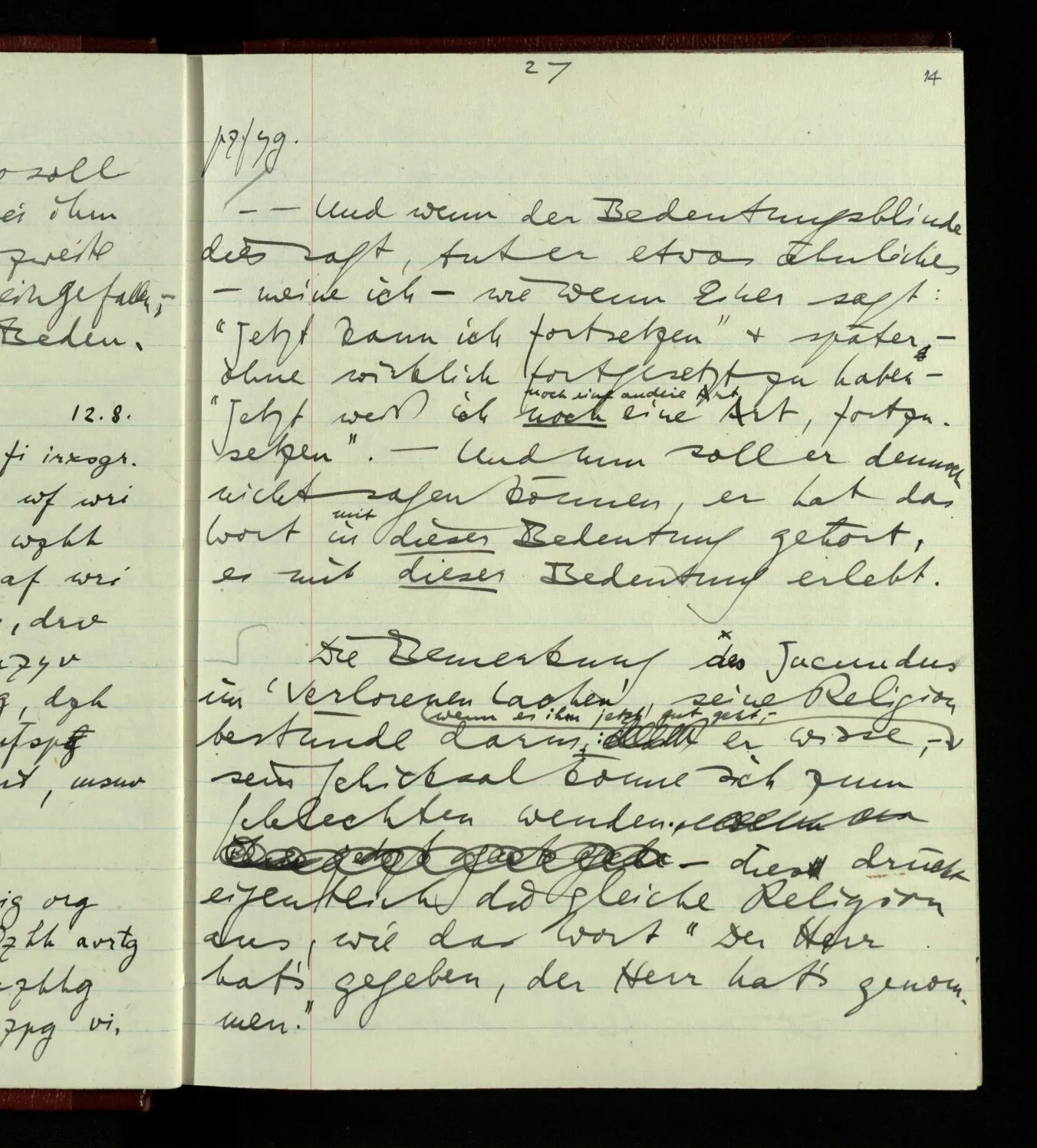 11.08.1946 Religion würde mir eine gewisse Bescheidenheit geben, die mir fehlt. Denn ich bilde mir auf alles halbwegs Menschliche in mir etwas ein, wie auf eine Eigenschaft die mich auszeichnet.