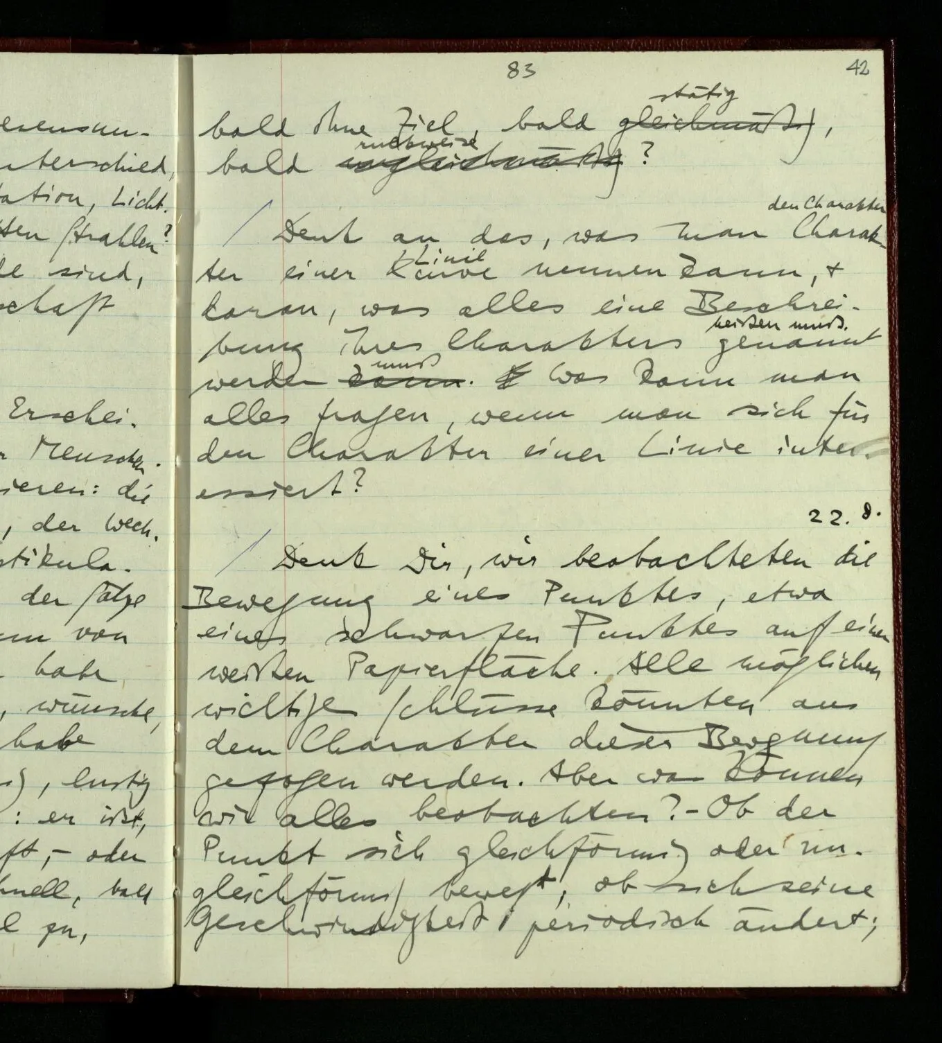 Was sollen wir antworten, wenn uns jemand entgegnet: “Wenn Du einem Menschen bei einer Bewegung die Hand (z.B.) führst, so zeigst Du ihm eben damit ein bestimmtes kinästhetisches Gefühl, welches er dann reproduziert, wenn er die Bewegung nun auf Befehl wiederholt”? Und kann man sagen, daß er wohl von dem Gesichtsbild der Bewegung so geleitet werden könne, aber nicht von einem kinästhetischen Bild?