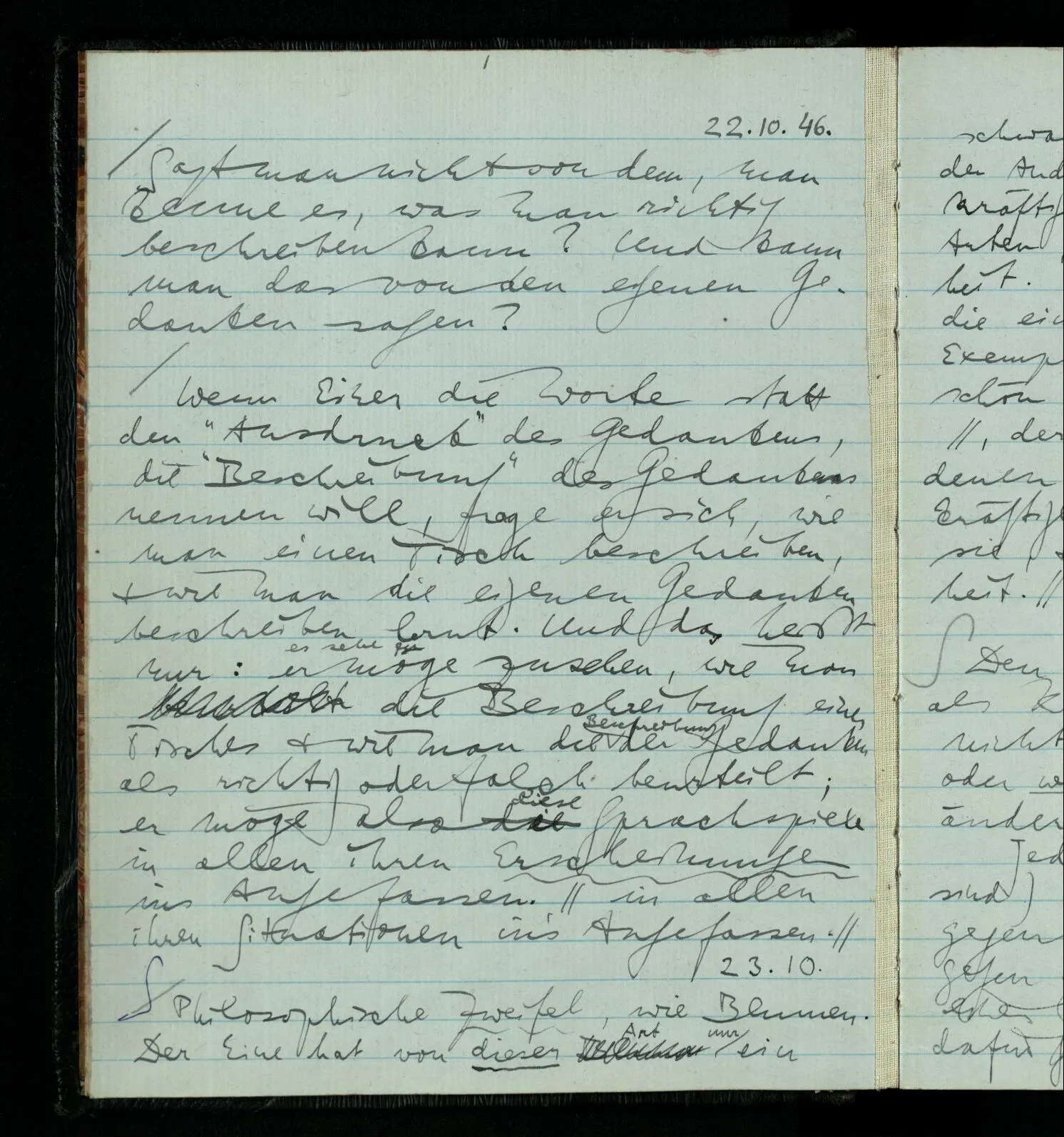 22.10.1946 Sagt man nicht von dem, man kenne es, was man richtig beschreiben kann? Und kann man das von den eigenen Gedanken sagen?