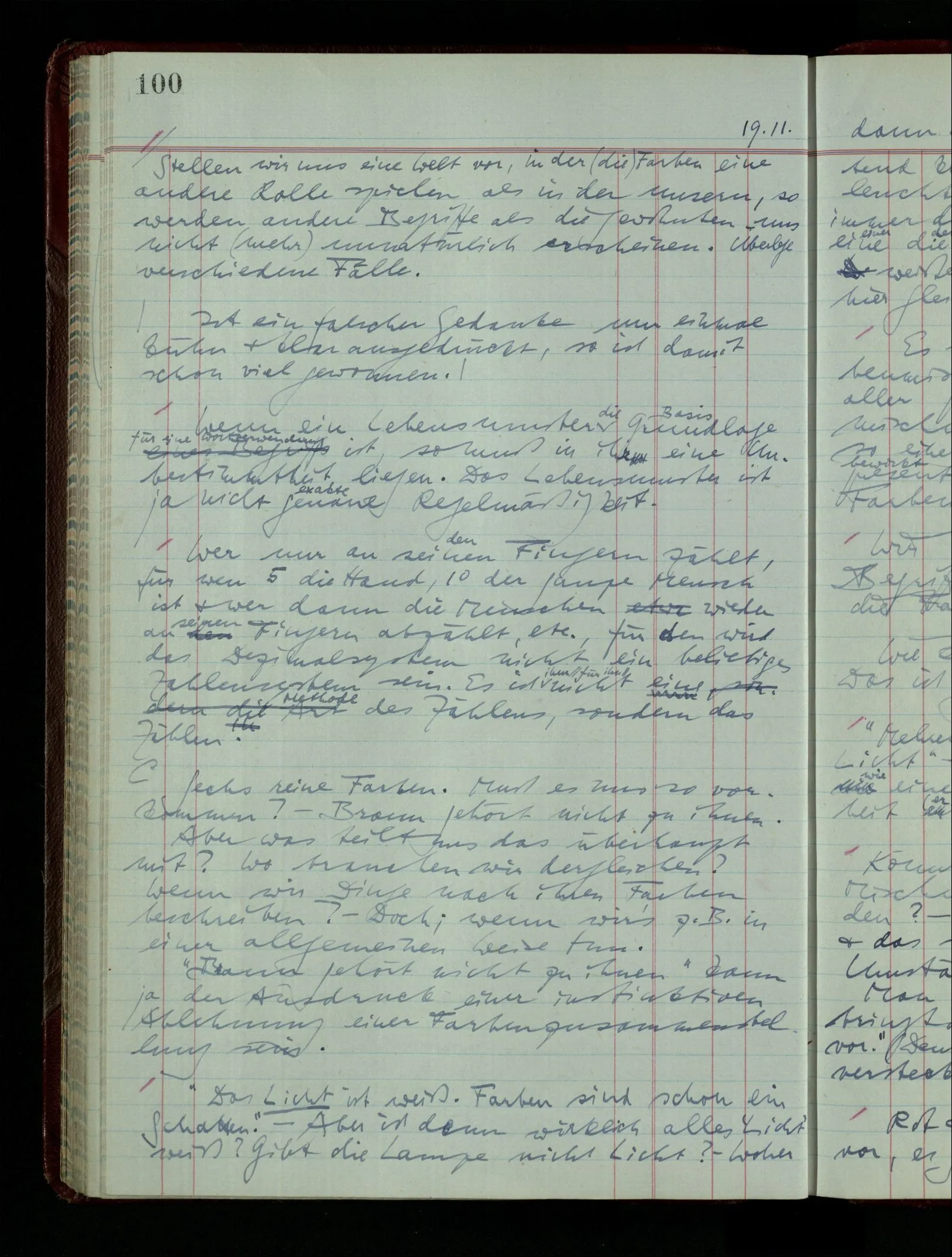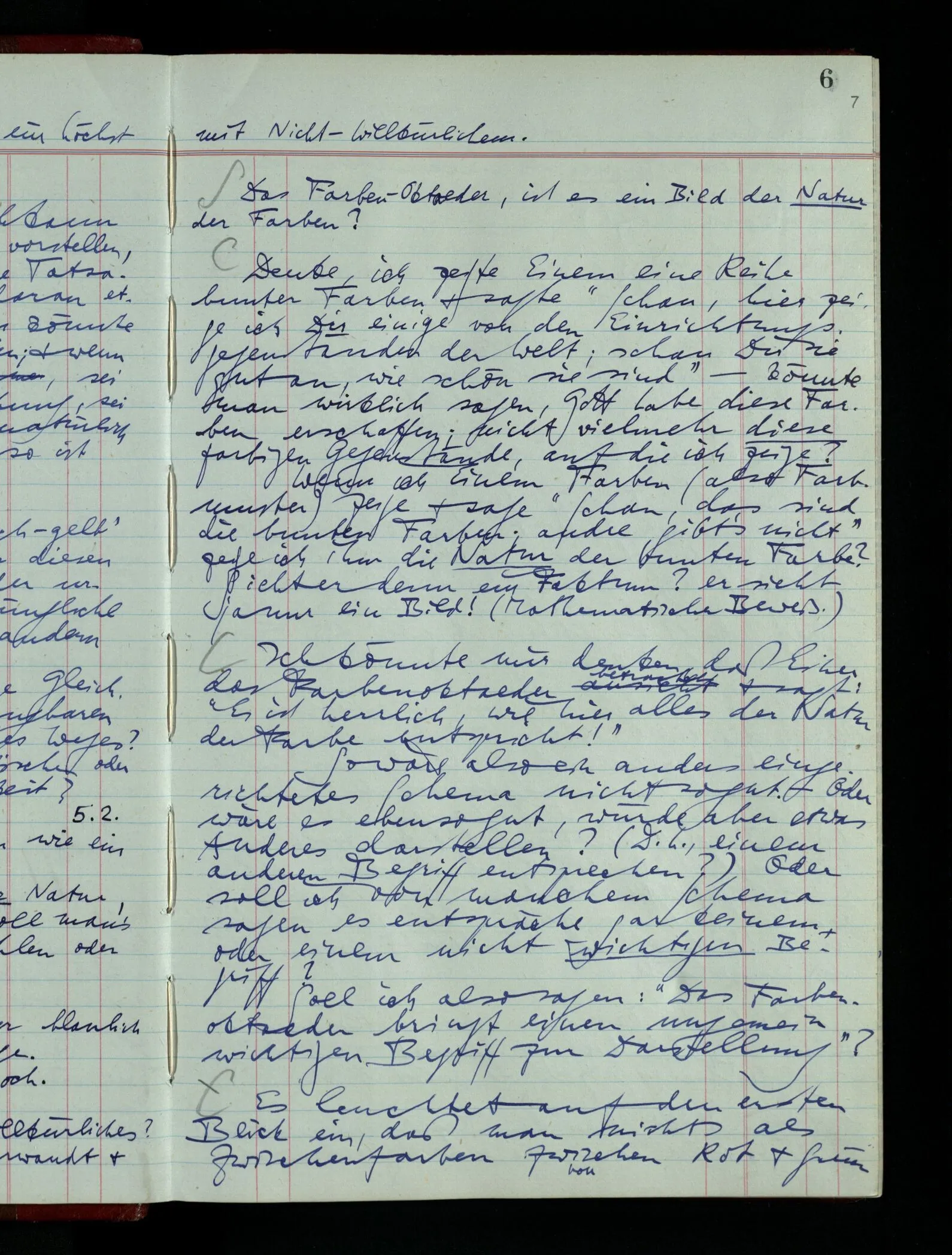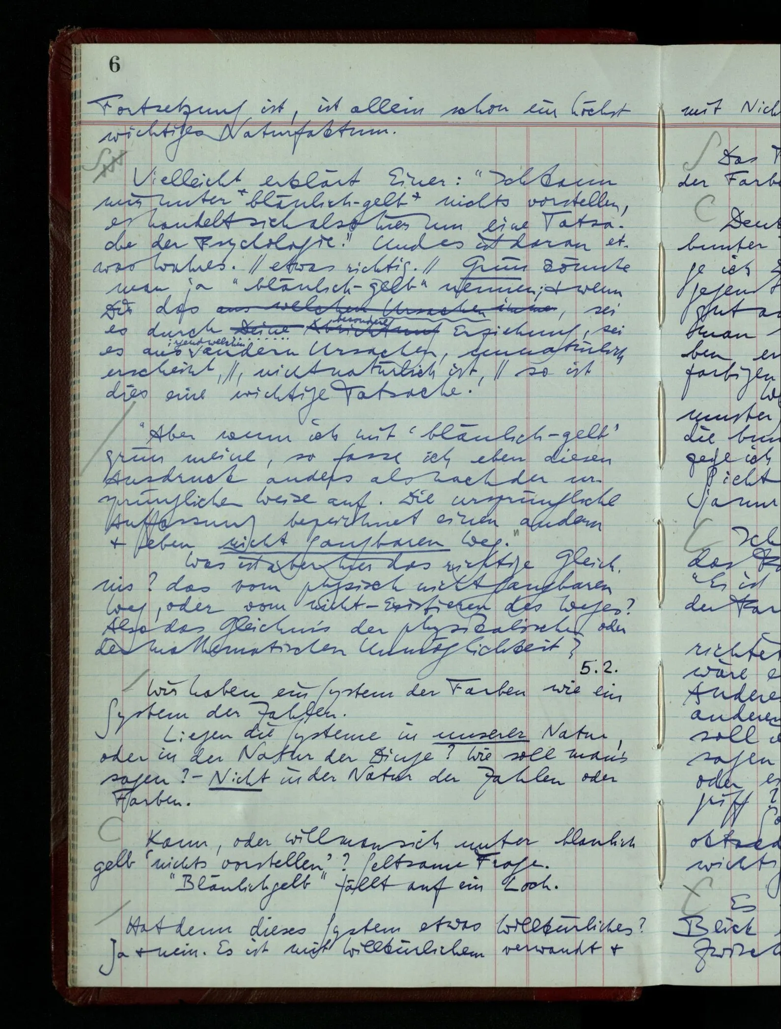 05.02.1948 Wir haben ein System der Farben wie ein System der Zahlen. Liegen die Systeme in unserer Natur, oder in der Natur der Dinge? Wie soll man’s sagen? – Nicht in der Natur der Zahlen oder Farben.