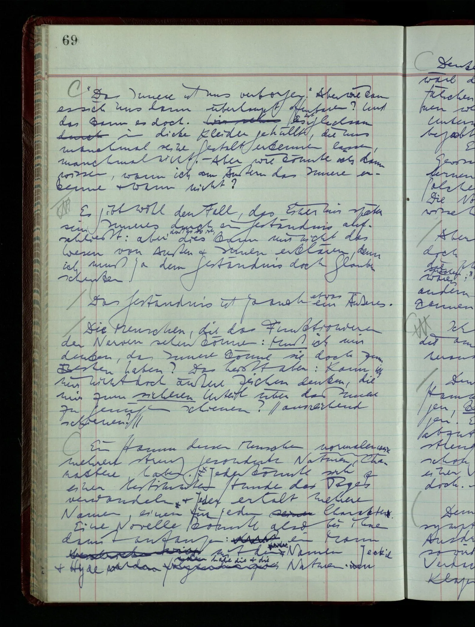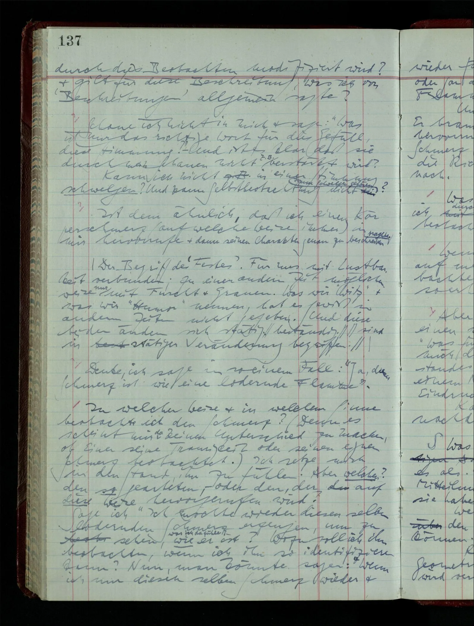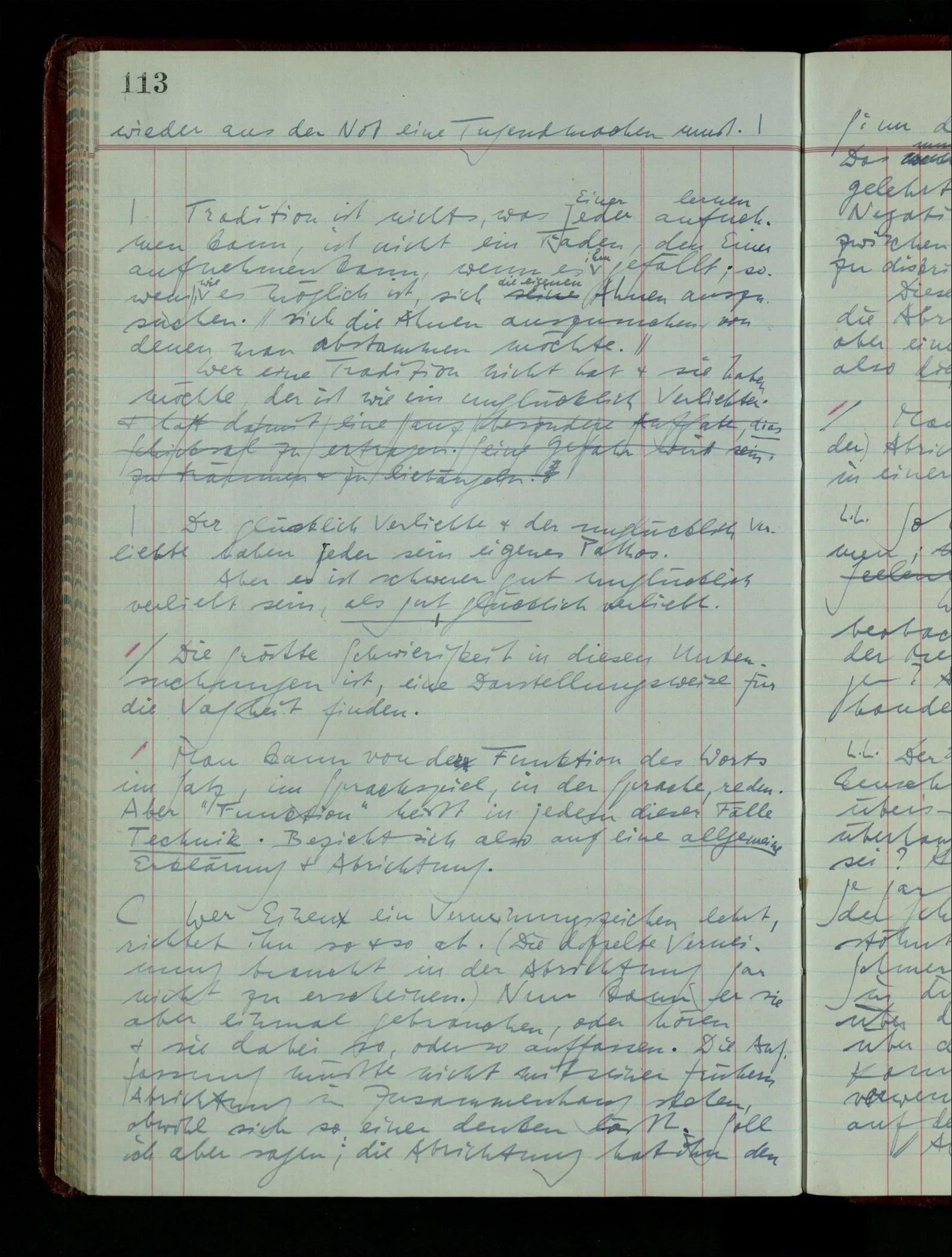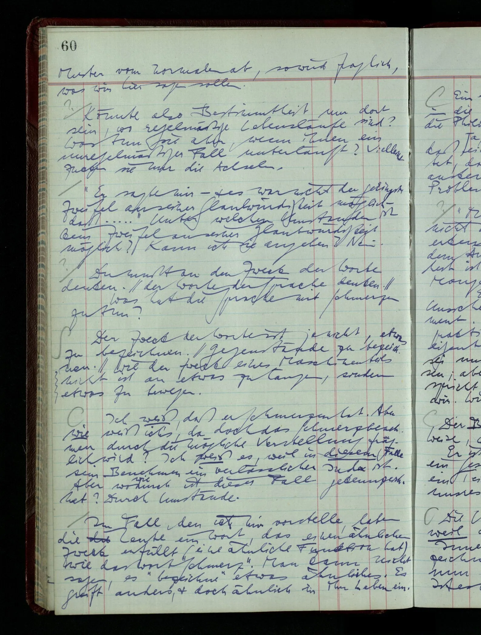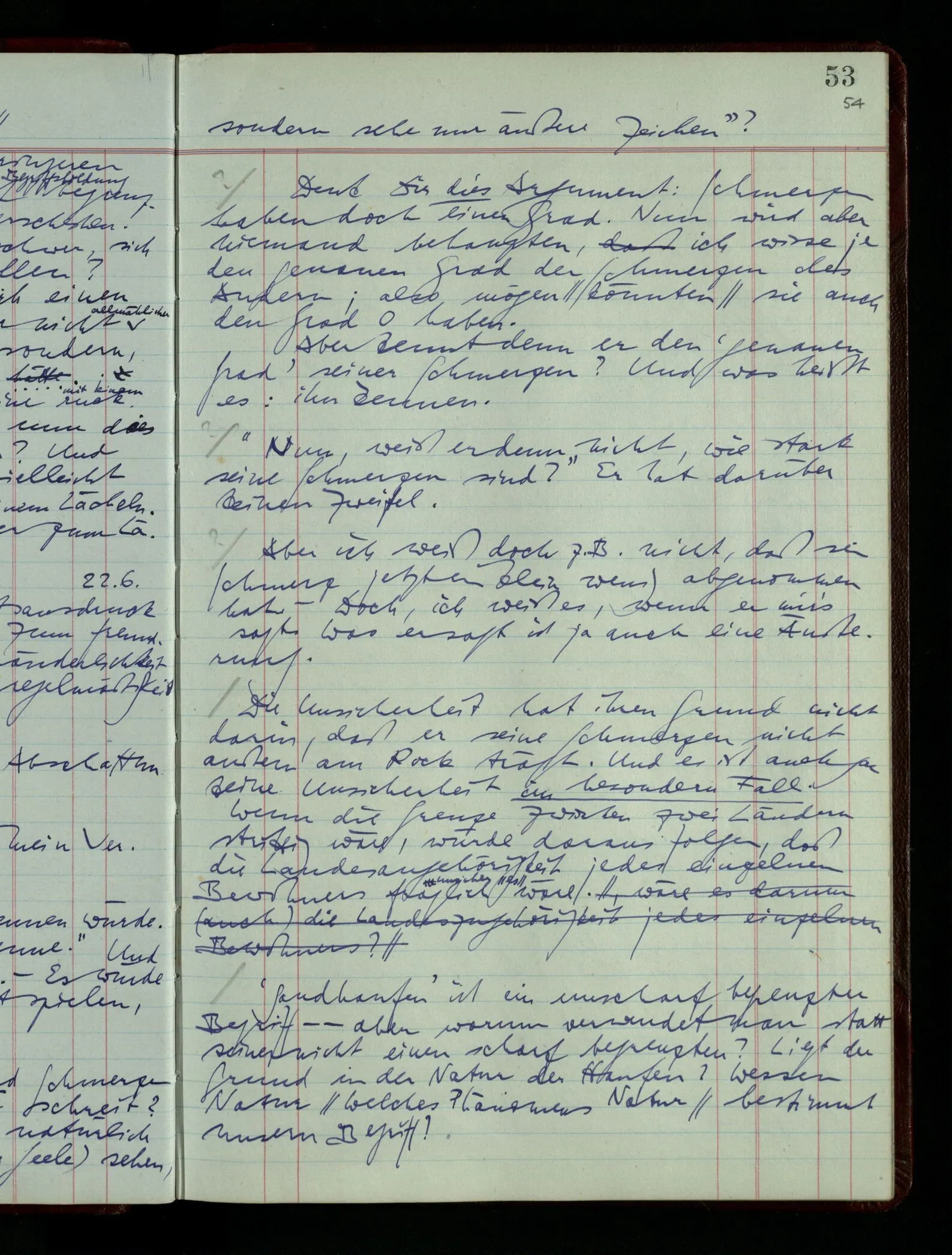Denk dir eine Sitte, nach welcher man ein Recht nur hat, über den eigenen Zustand etwas auszusagen. Alles andere gilt als Vermessenheit. Die Leute leben aber, in praktischer Hinsicht, doch so wie wir.