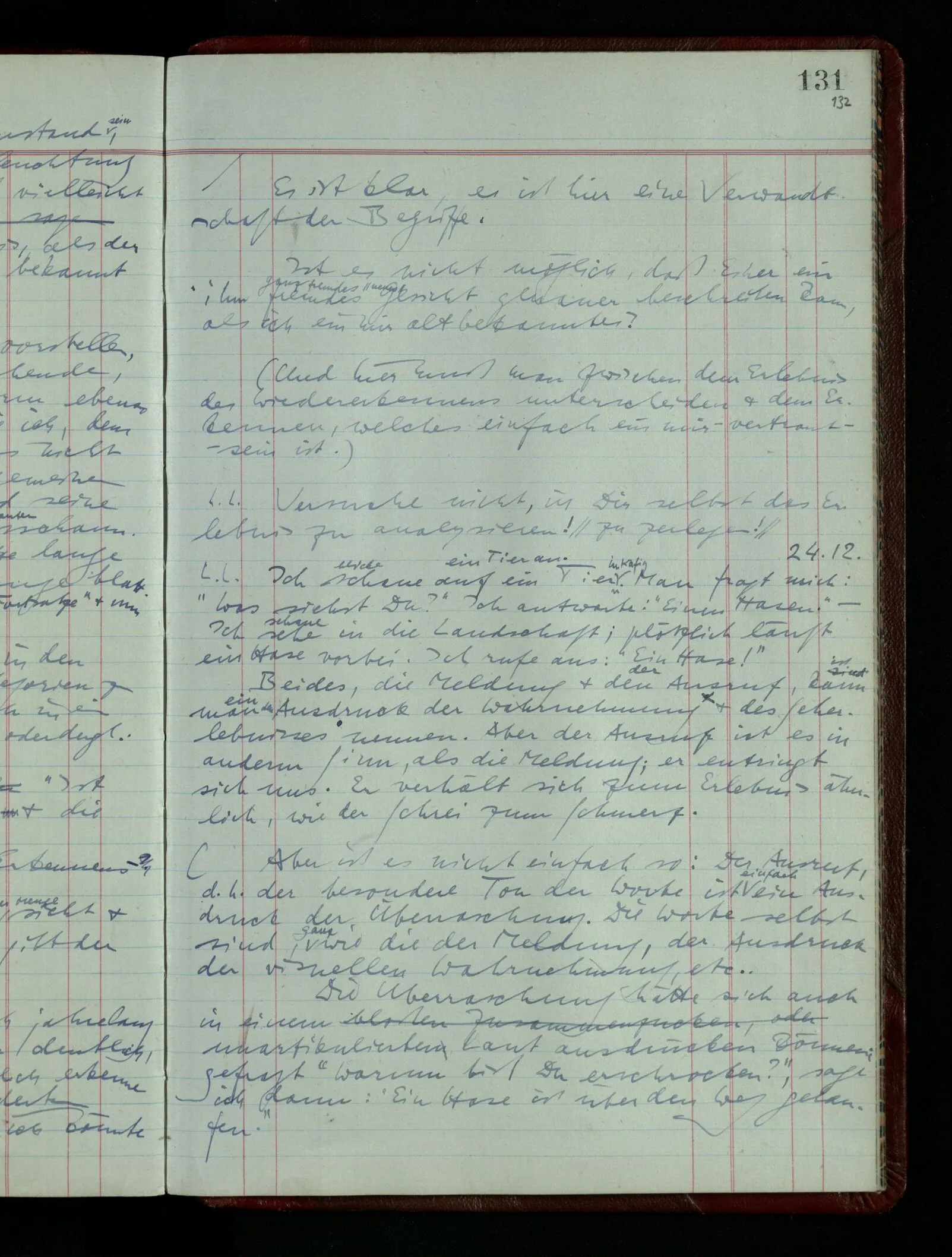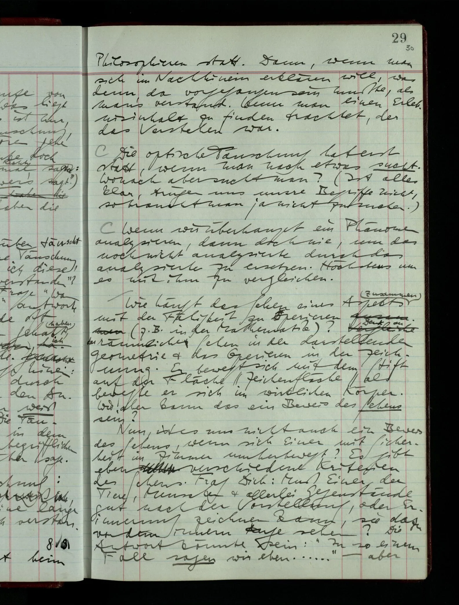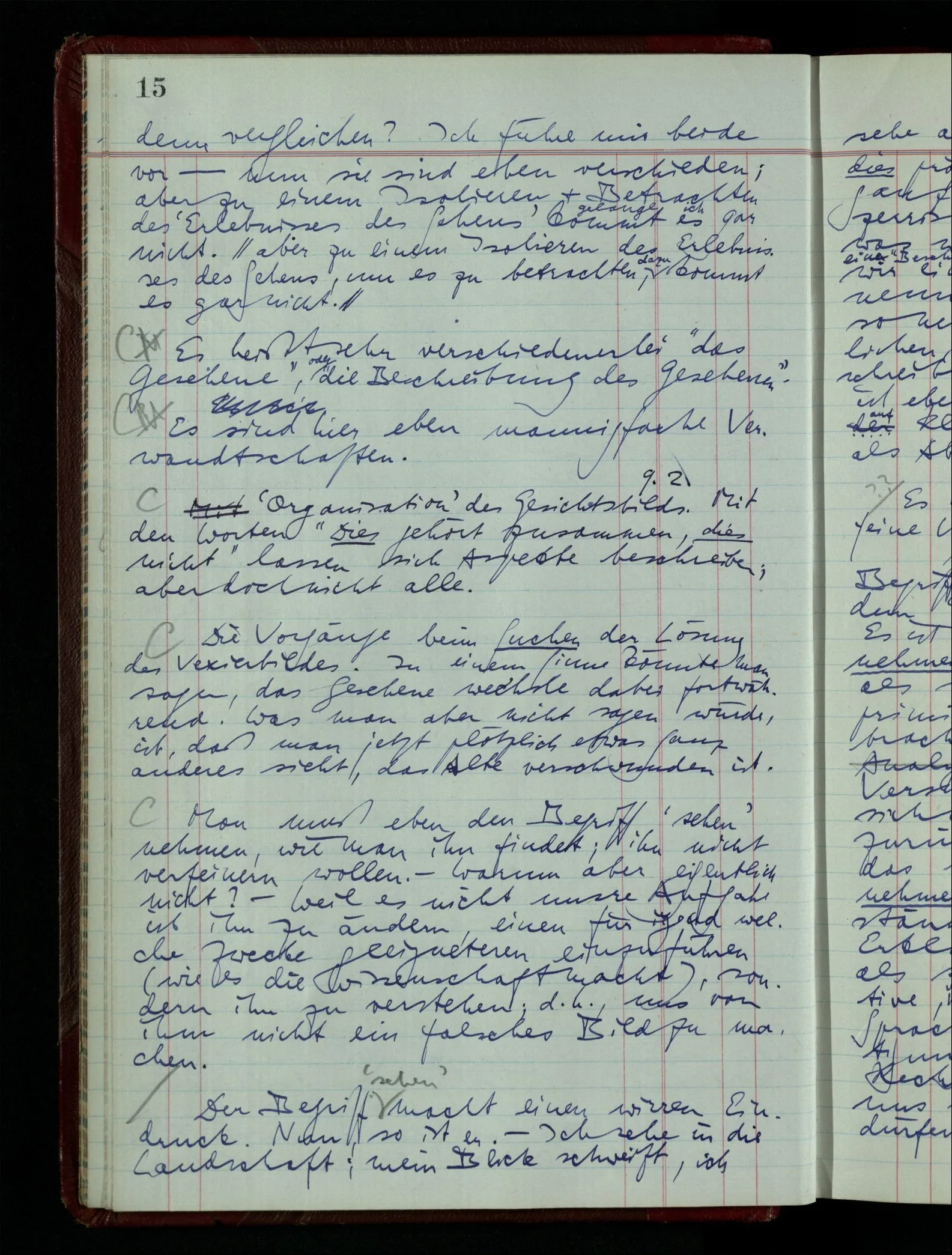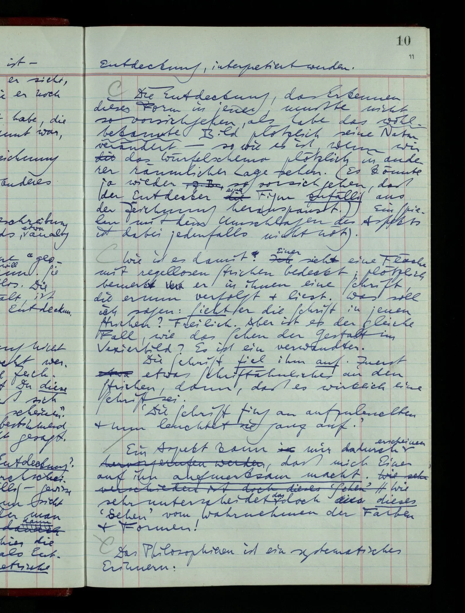 Aber die Frage ist nun: Ist dies “Leben” ein “Sehen” oder: mit welchem Recht könnte ich es ein “Sehen” nennen? Was hat dieser Begriff mit einem Sehbegriff gemeinsam?
