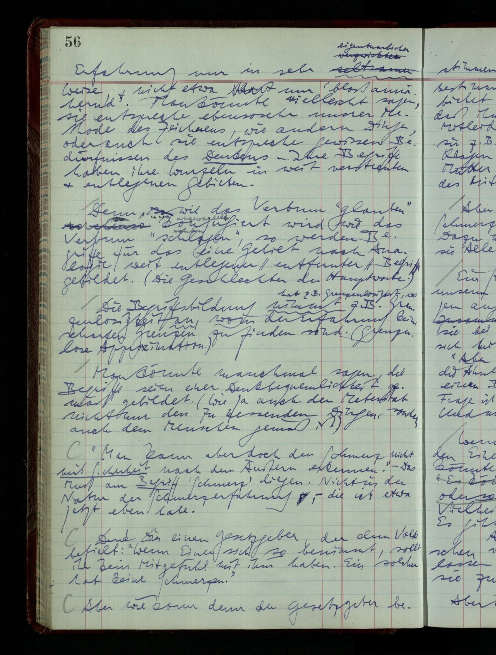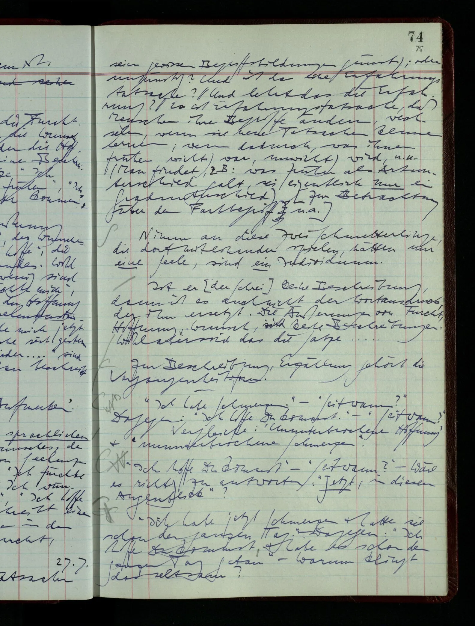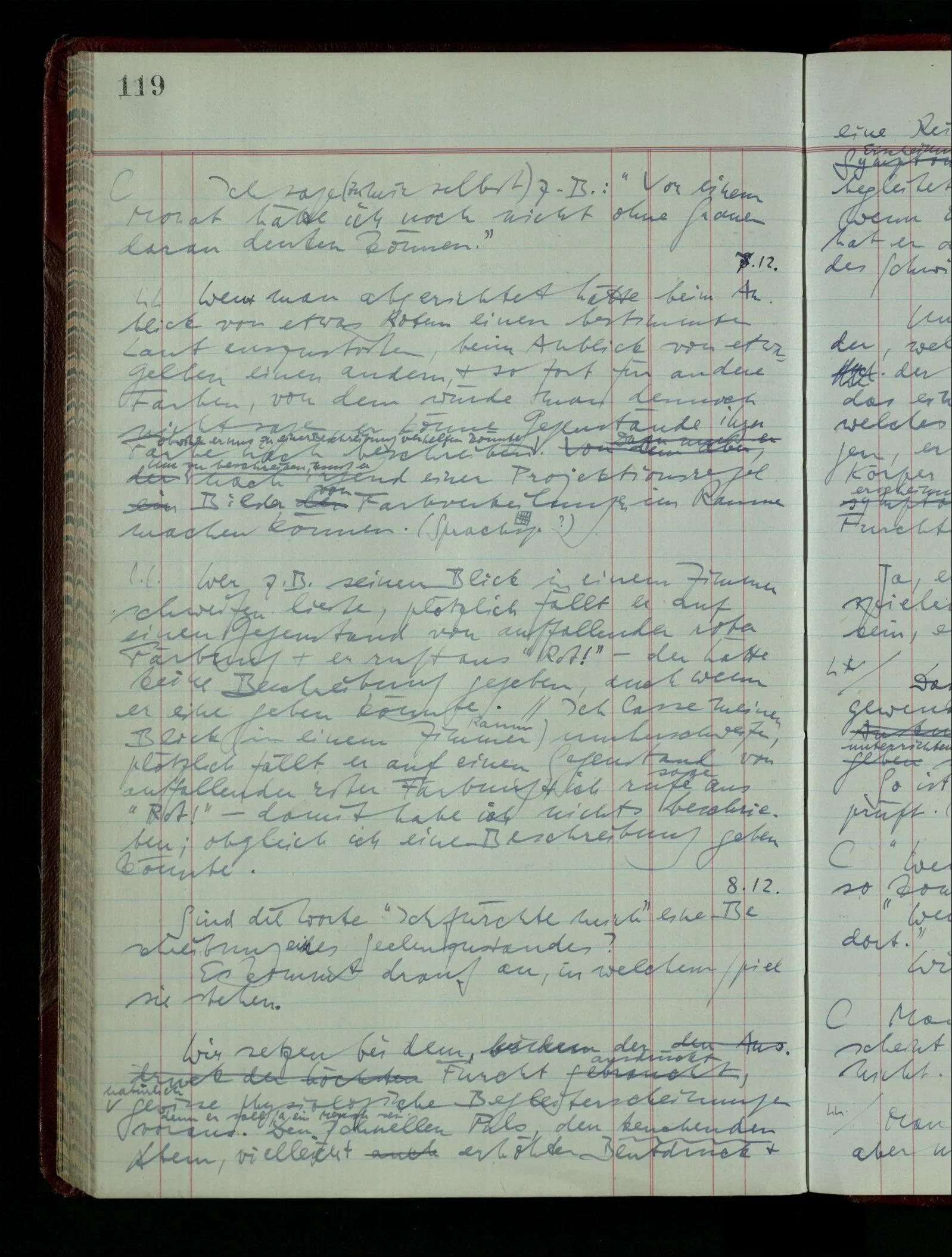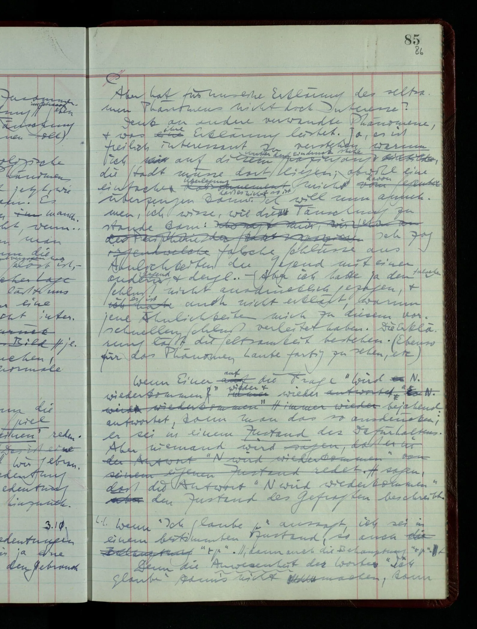 Kann man dem Arzt als Symptom einer geistigen Erkrankung mitteilen “Ich glaube …”? – Wohl aber etwa: “Ich glaube immer Stimmen zu hören”. “Ich nehme immer an, er sei mir untreu, er ist es aber nicht.” Die Linie des Begriffs scheint jäh abgebrochen! –