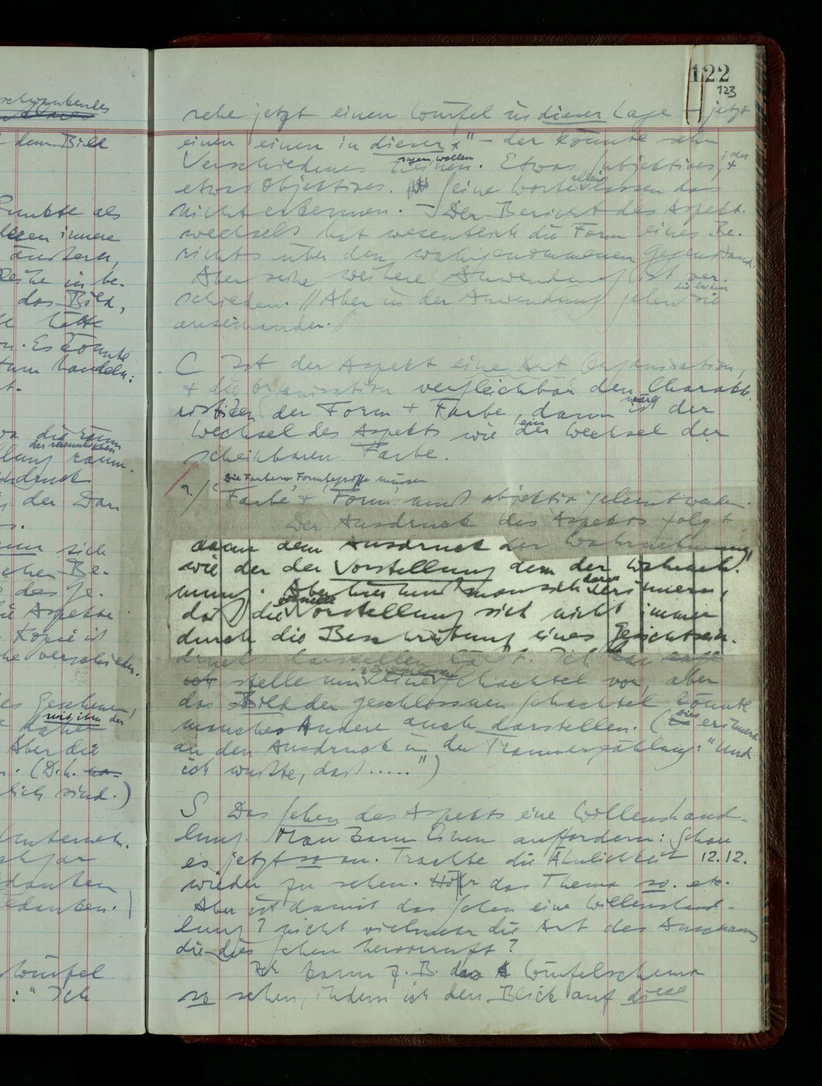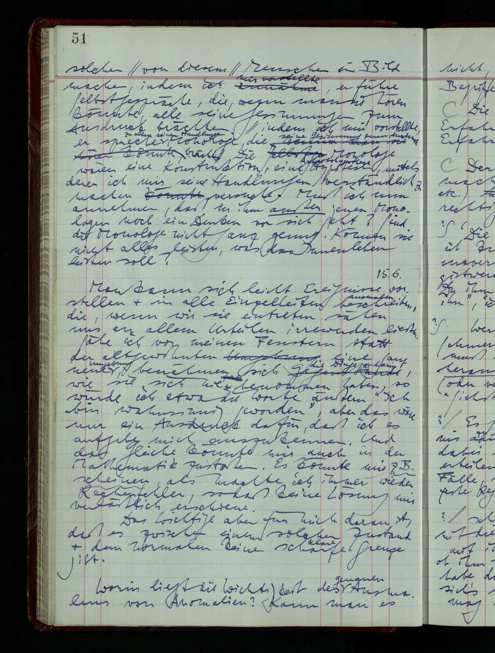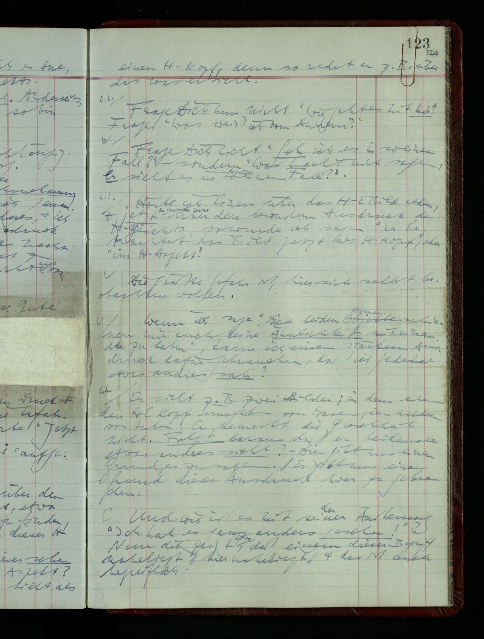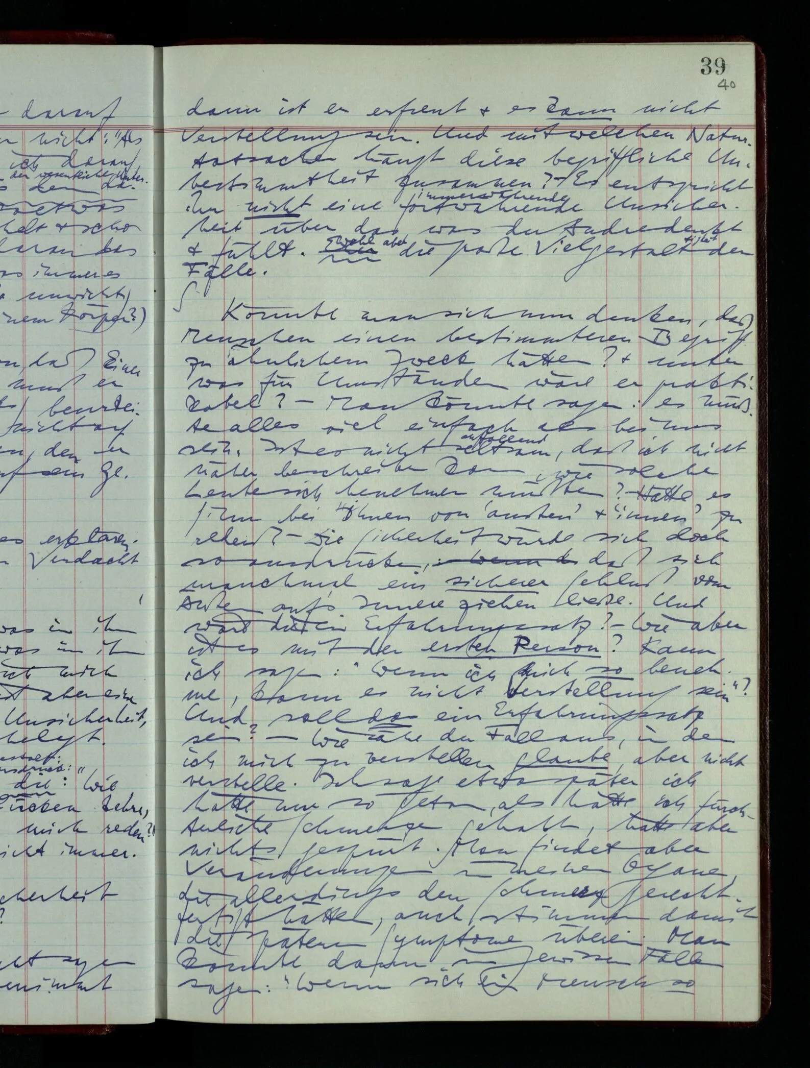 Kann man dem Arzt als Symptom einer geistigen Erkrankung mitteilen “Ich glaube …”? – Wohl aber etwa: “Ich glaube immer Stimmen zu hören”. “Ich nehme immer an, er sei mir untreu, er ist es aber nicht.” Die Linie des Begriffs scheint jäh abgebrochen! –