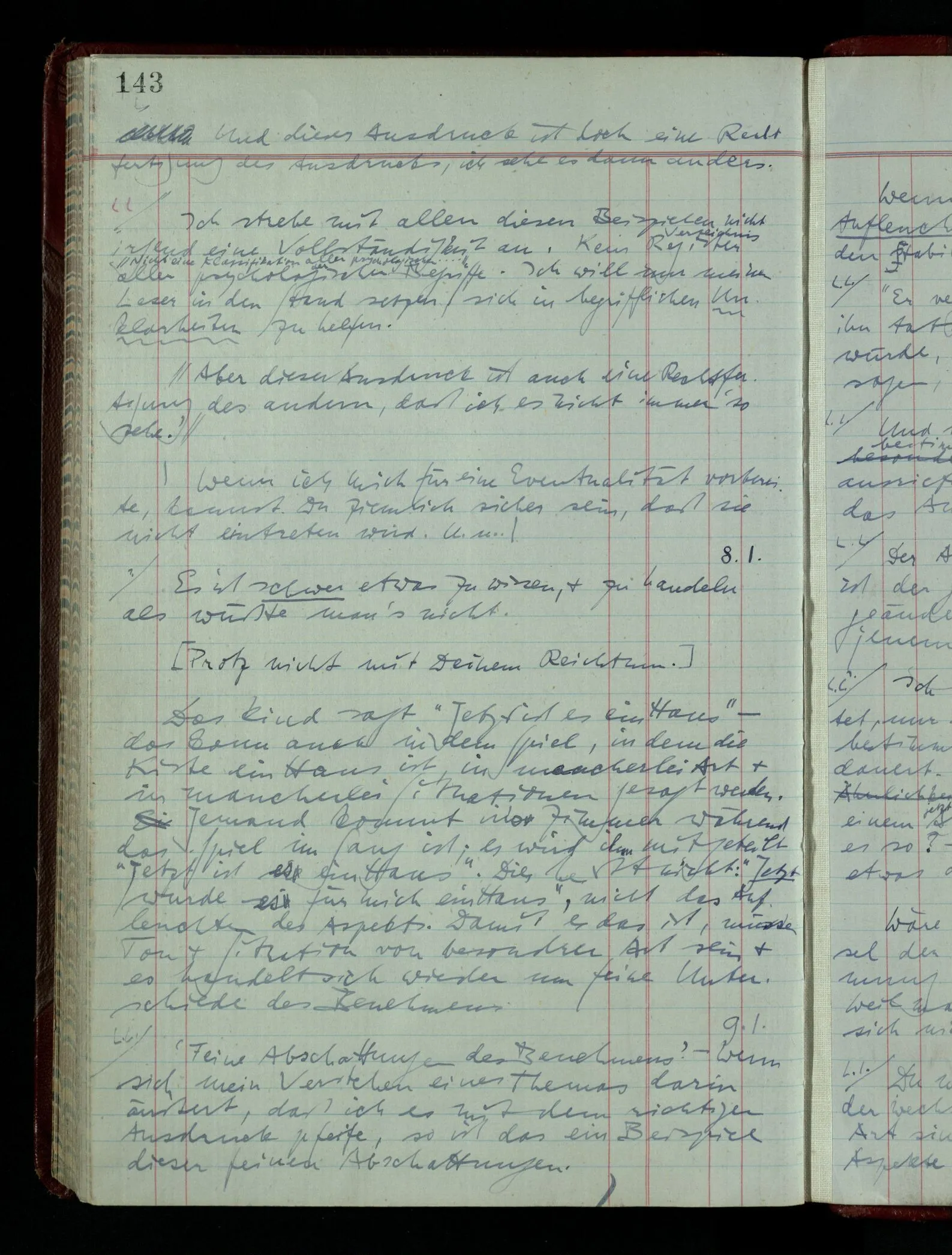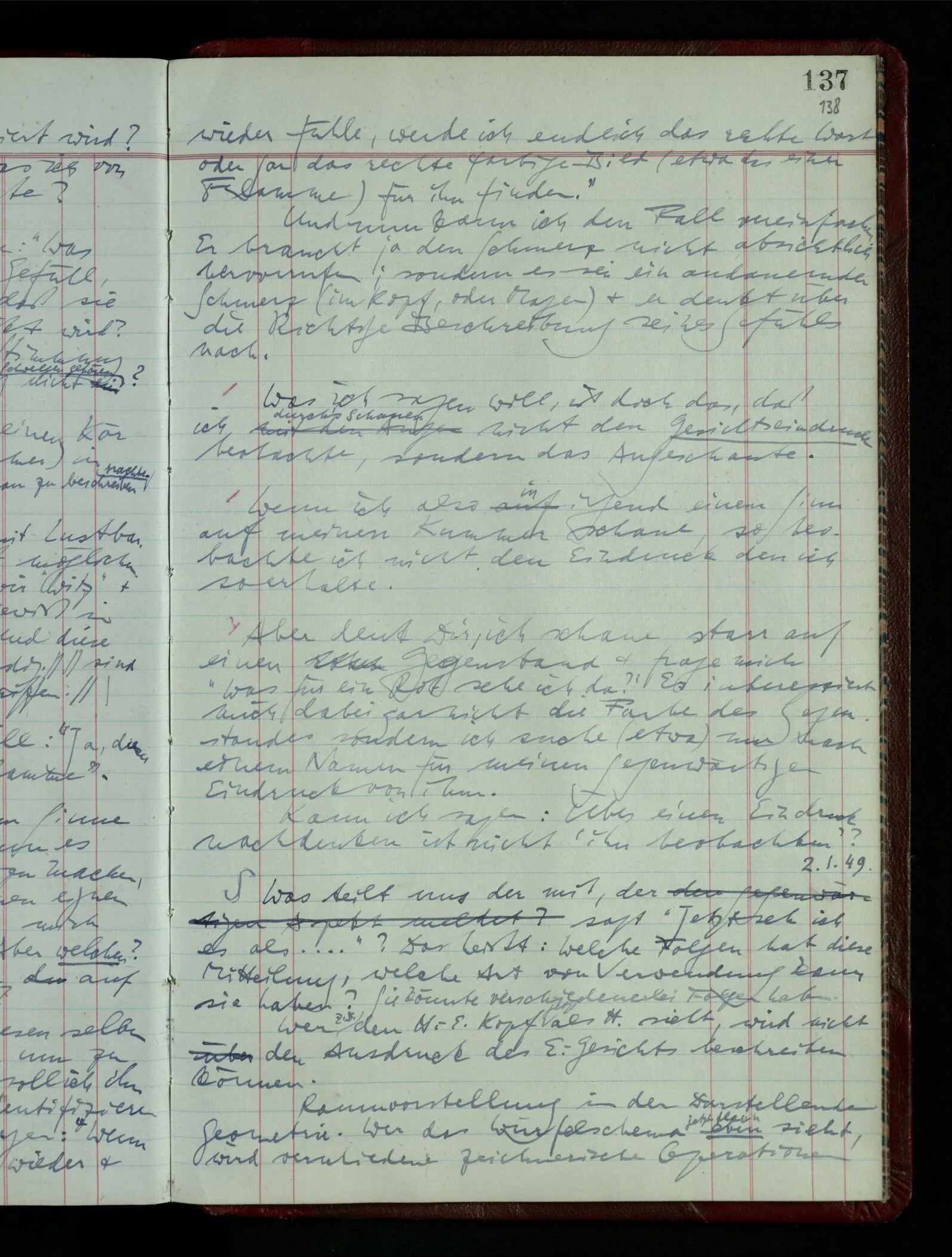 09.01.1949 ‘Feine Abschattungen des Benehmens’ – Wenn sich mein Verstehen eines Themas darin äußert, daß ich es mit dem richtigen Ausdruck pfeife, so ist das ein Beispiel dieser feinen Abschattungen.