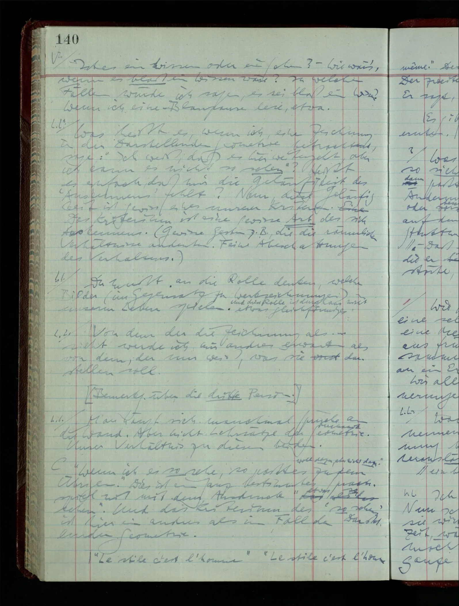 “Le stile c’est l’homme” “Le stile c’est l’homme même.” Der erste Ausdruck hat eine billige epigrammatische Kürze. Der zweite, richtige, eröffnet eine ganz andere Perspektive. Er sagt, daß der Stil das Bild des Menschen sei.