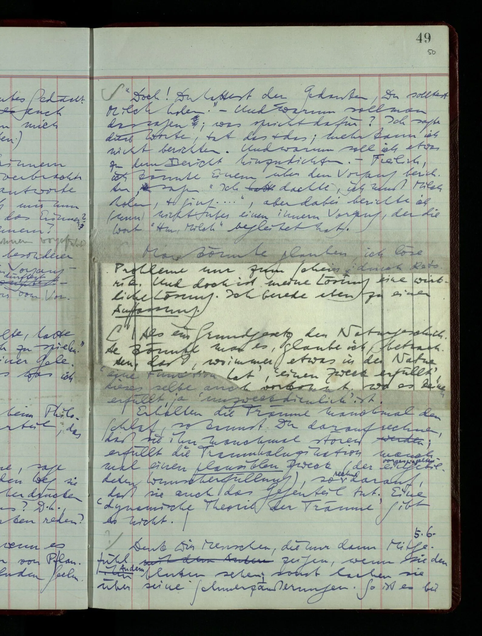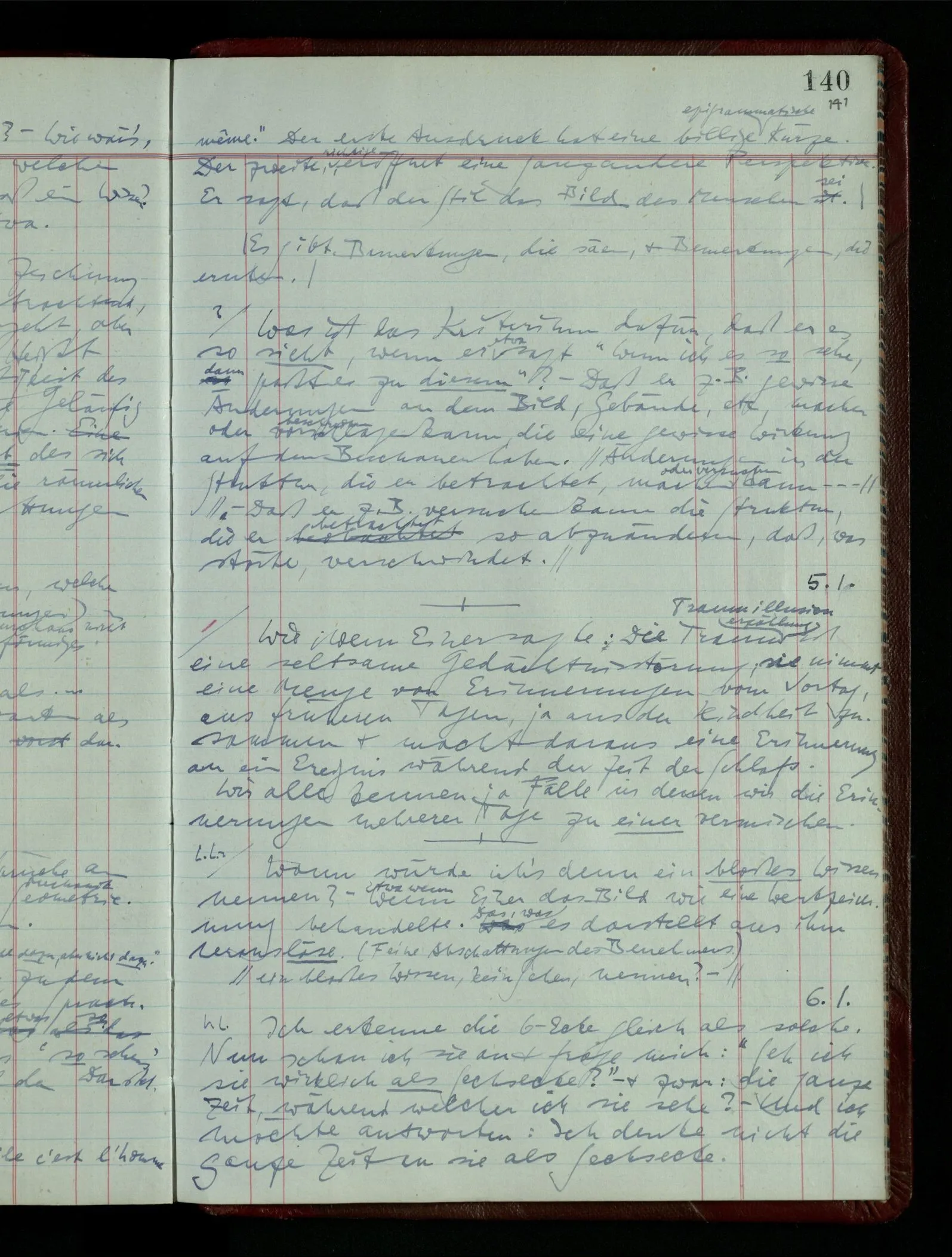 Wie, wenn Einer sagte: Die Traumerzählung ist eine seltsame Gedächtnisstörung; sie nimmt eine Menge von Erinnerungen vom Vortag, aus früheren Tagen, ja aus der Kindheit zusammen & macht daraus eine Erinnerung an ein Ereignis während der Zeit des Schlafs. Wir alle kennen ja Fälle in denen wir die Erinnerungen mehrerer Tage zu einer vermischen.