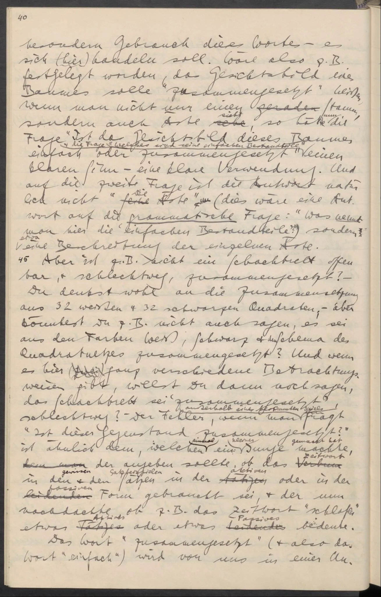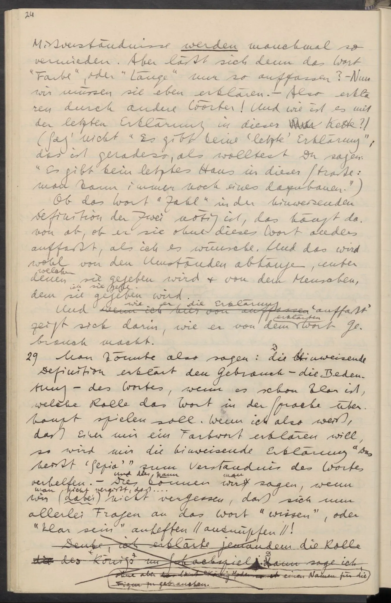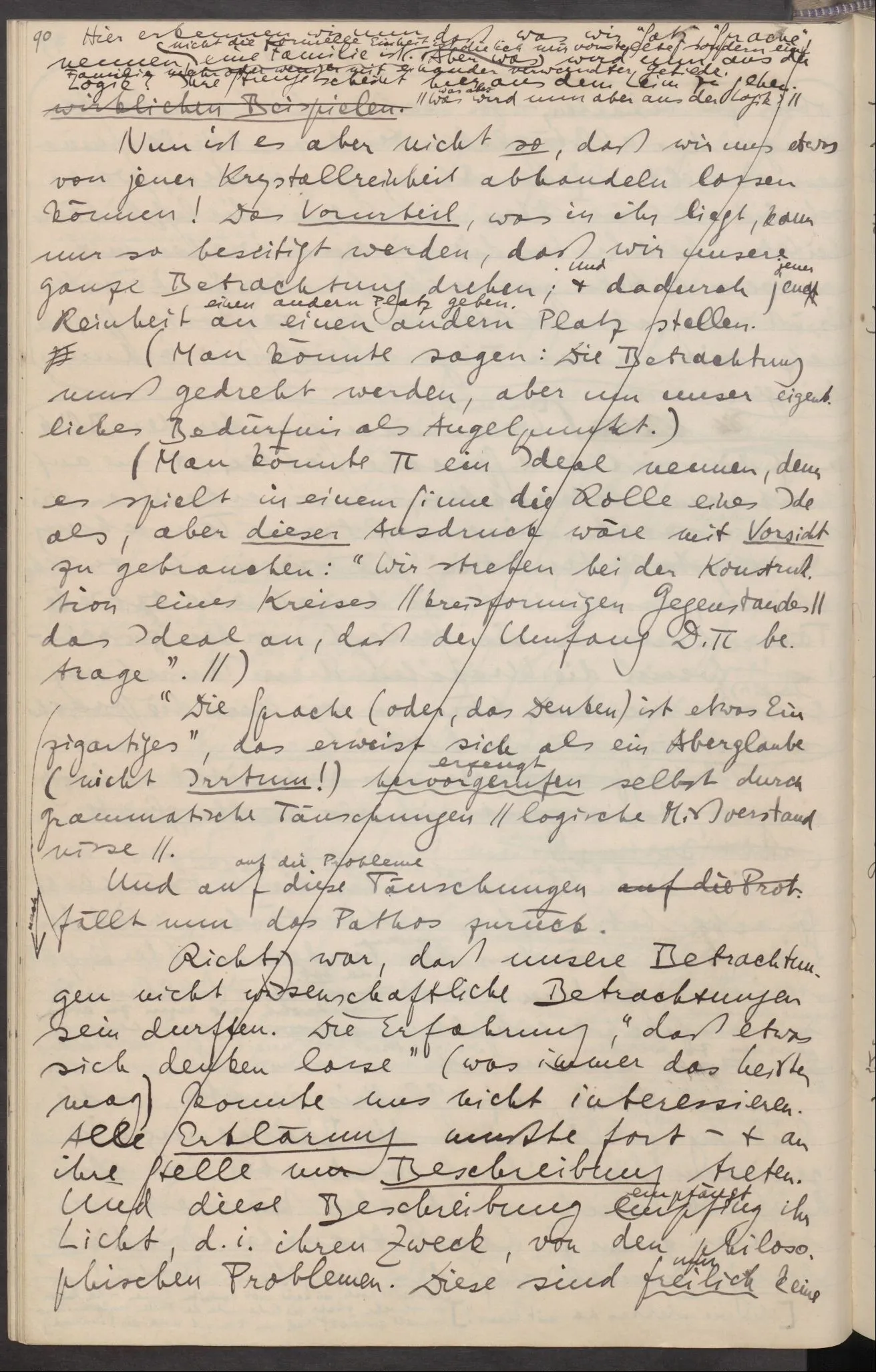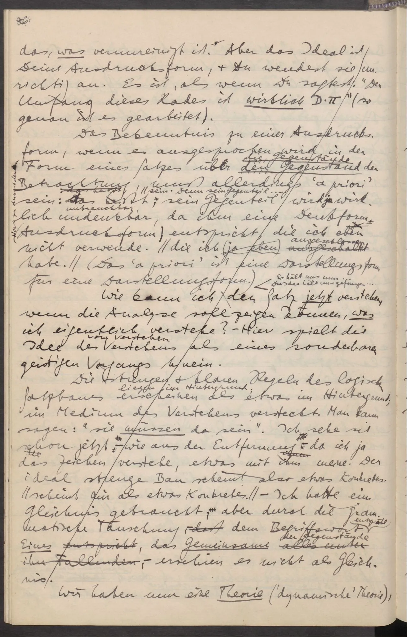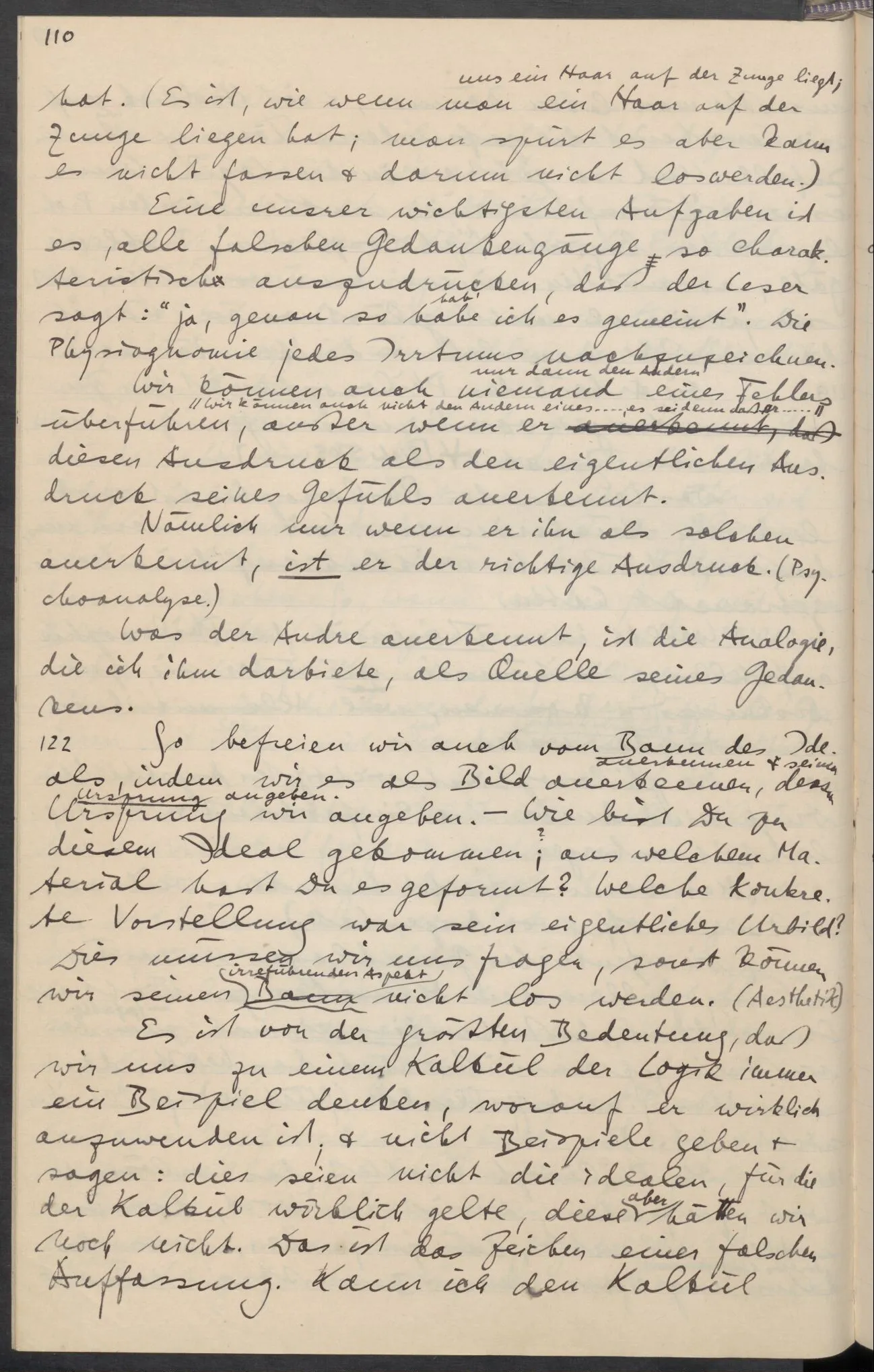 – Es ist interessant die Mannigfaltigkeit der Werkzeuge der Sprache & ihrer Verwendungsweisen – die Mannigfaltigkeit der Wort- & Satzarten – mit dem zu vergleichen, was Logiker über den Bau der Sprache gesagt haben. (Und auch der Verfasser der Log. Phil. Abh..)
