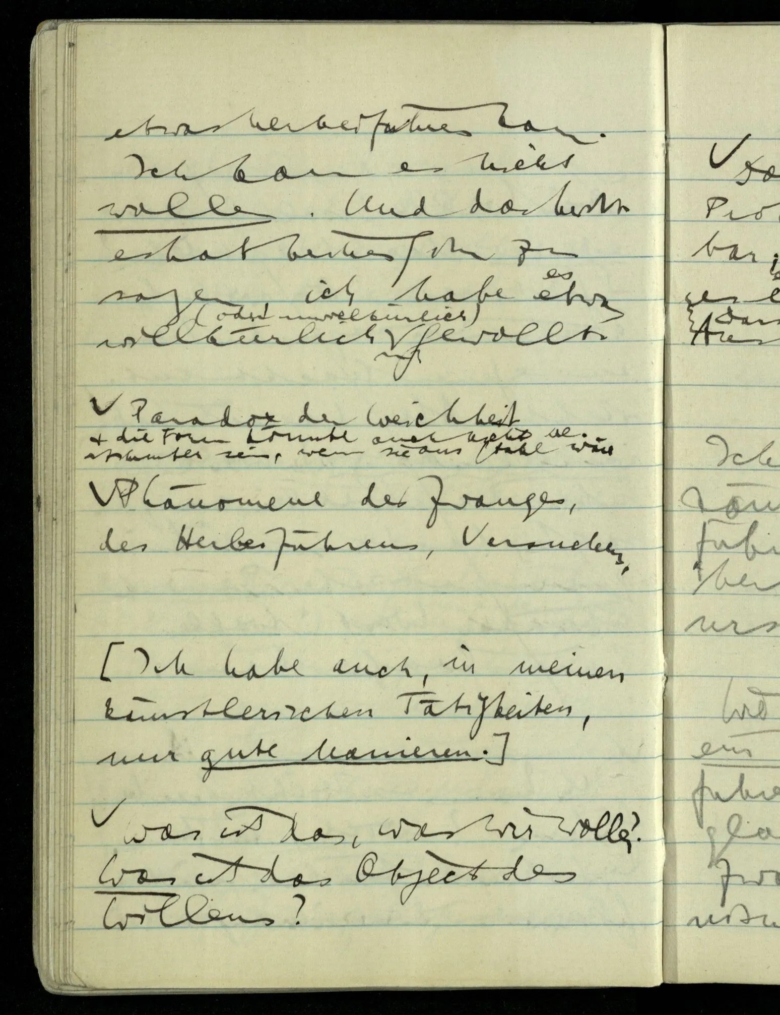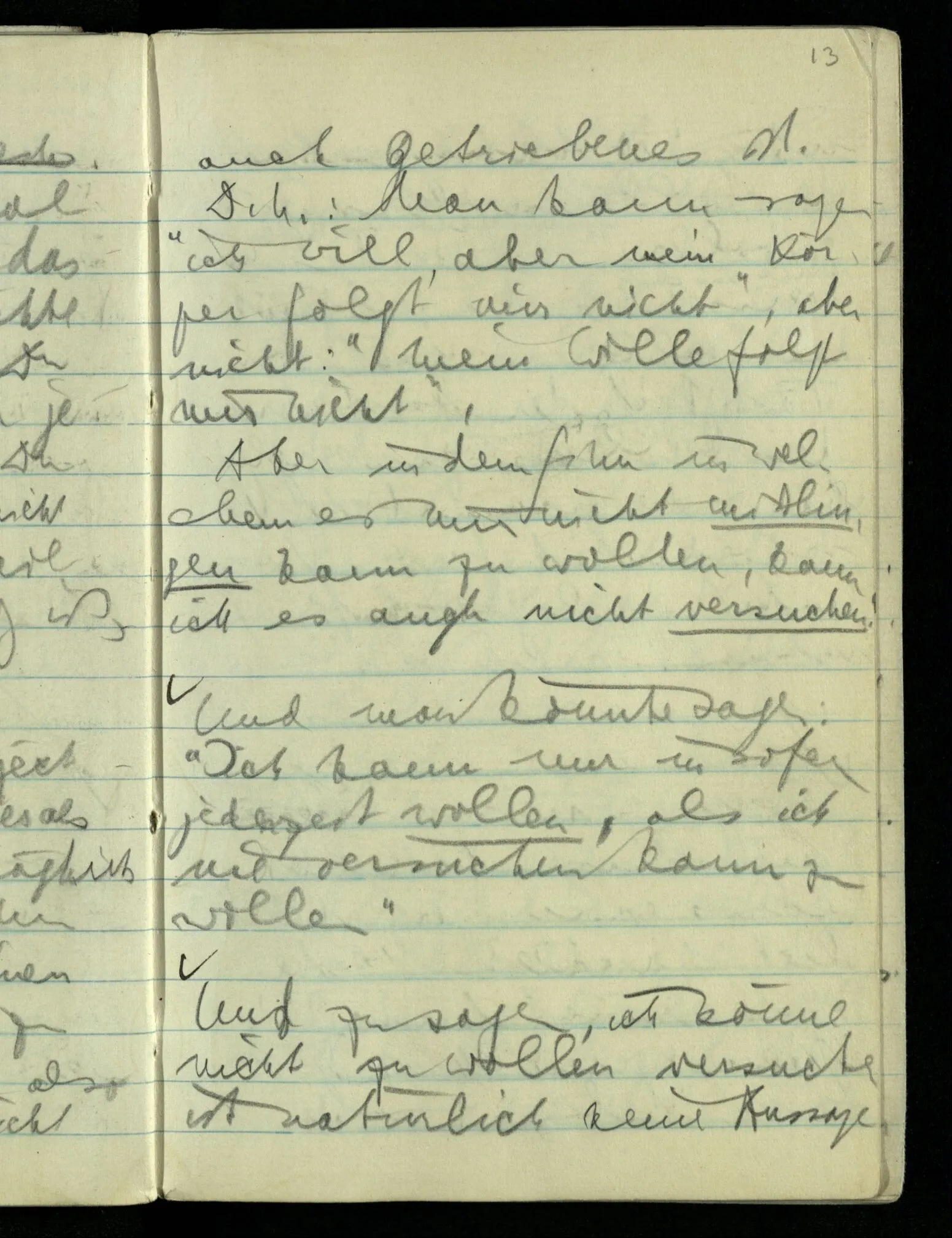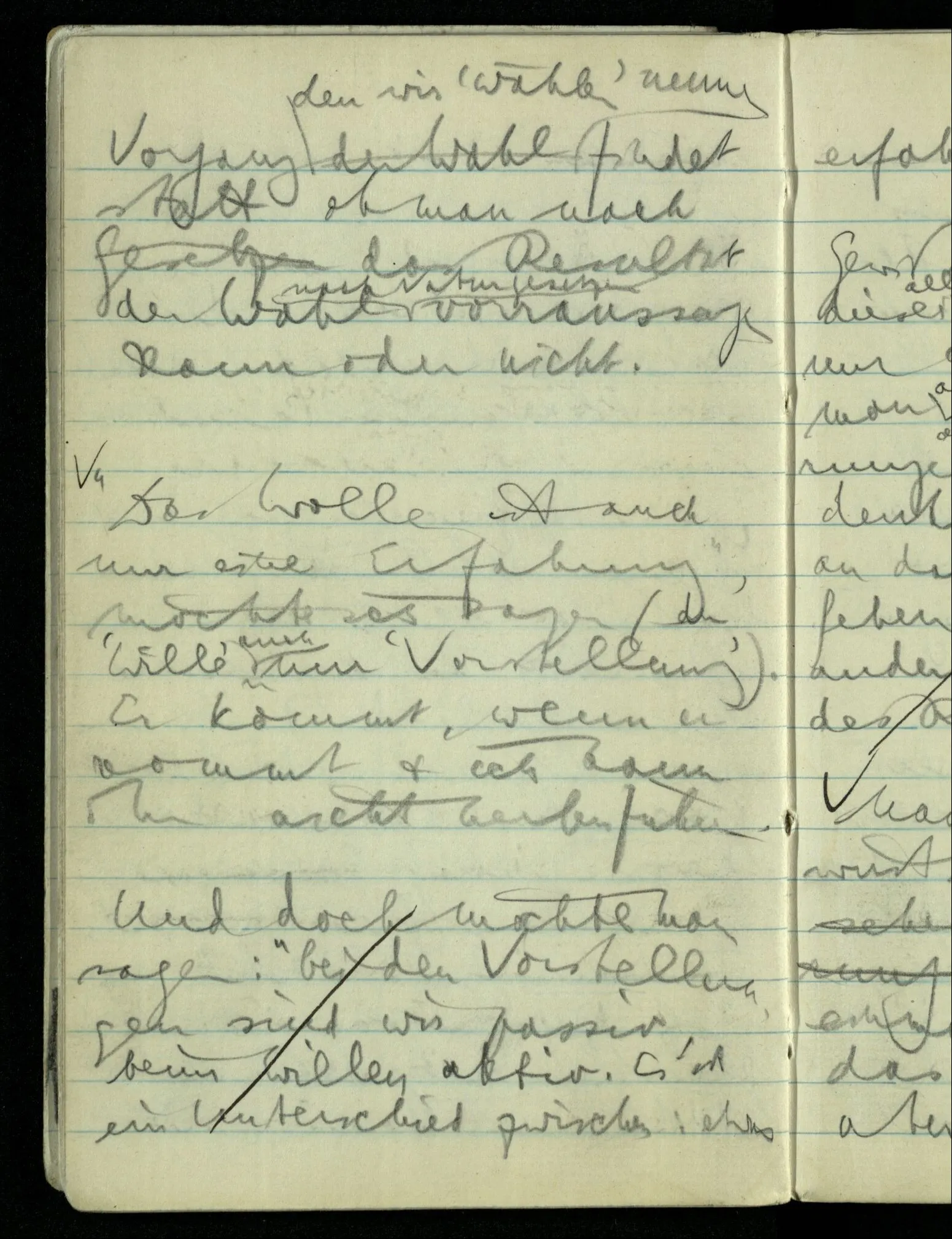 “Das Wollen ist auch nur eine Erfahrung”, möchte ich sagen (der ‘Wille’ auch nur ‘Vorstellung’). Er kommt, wenn er kommt & ich kann ihn nicht herbeiführen.