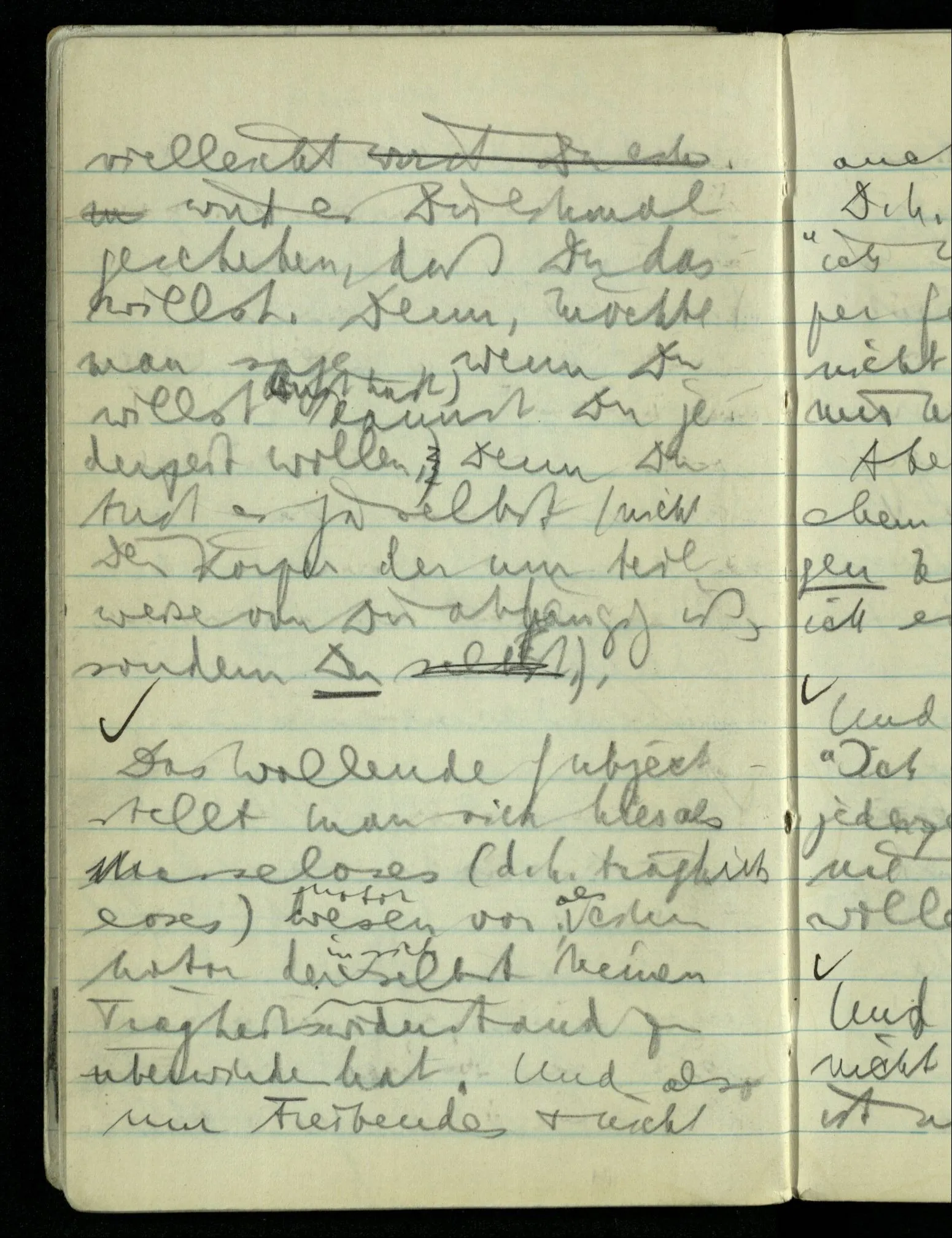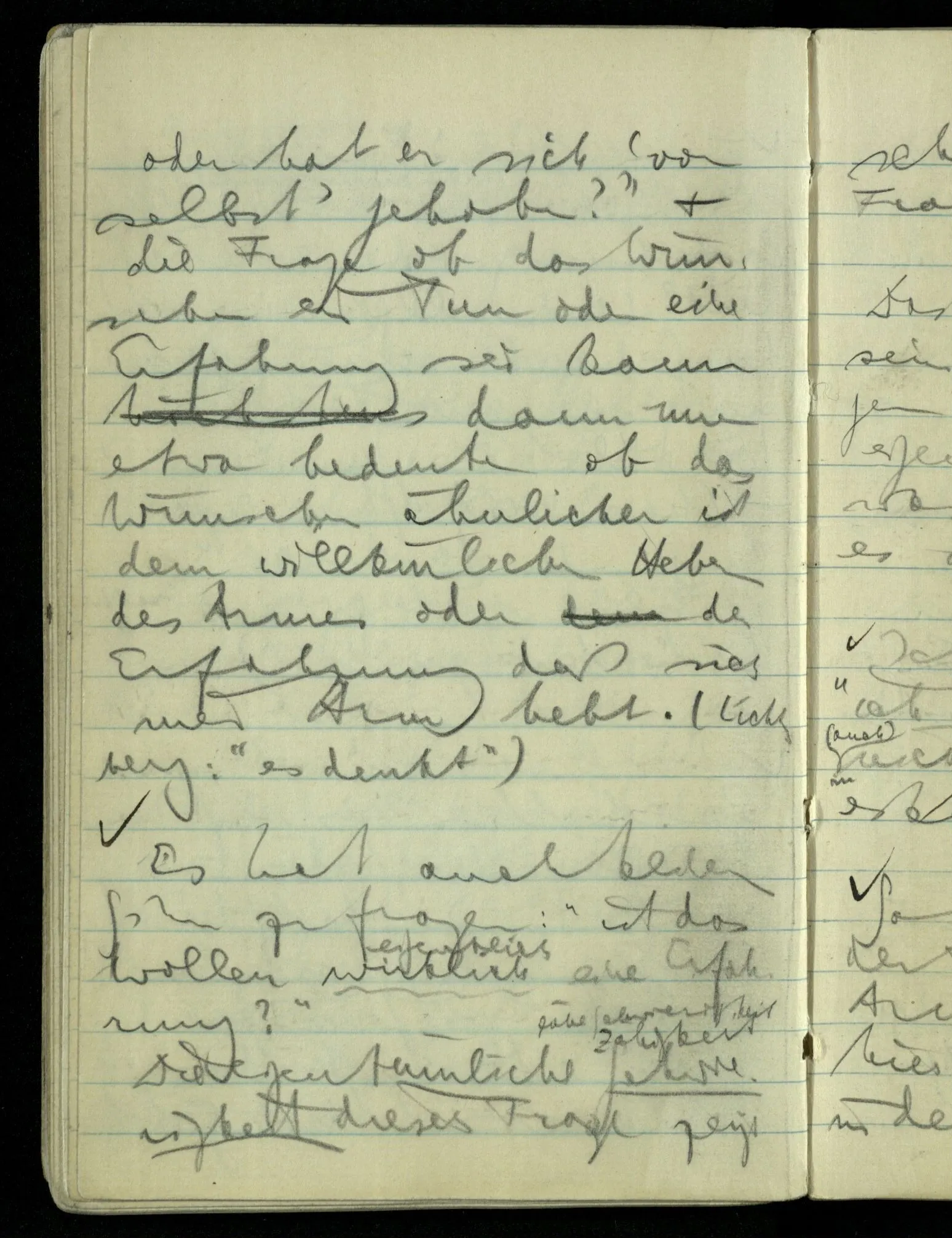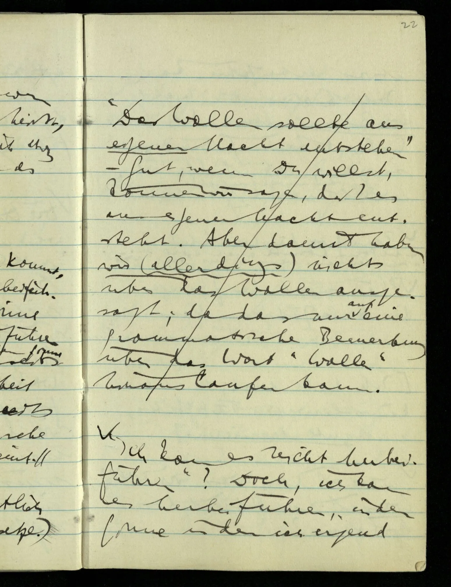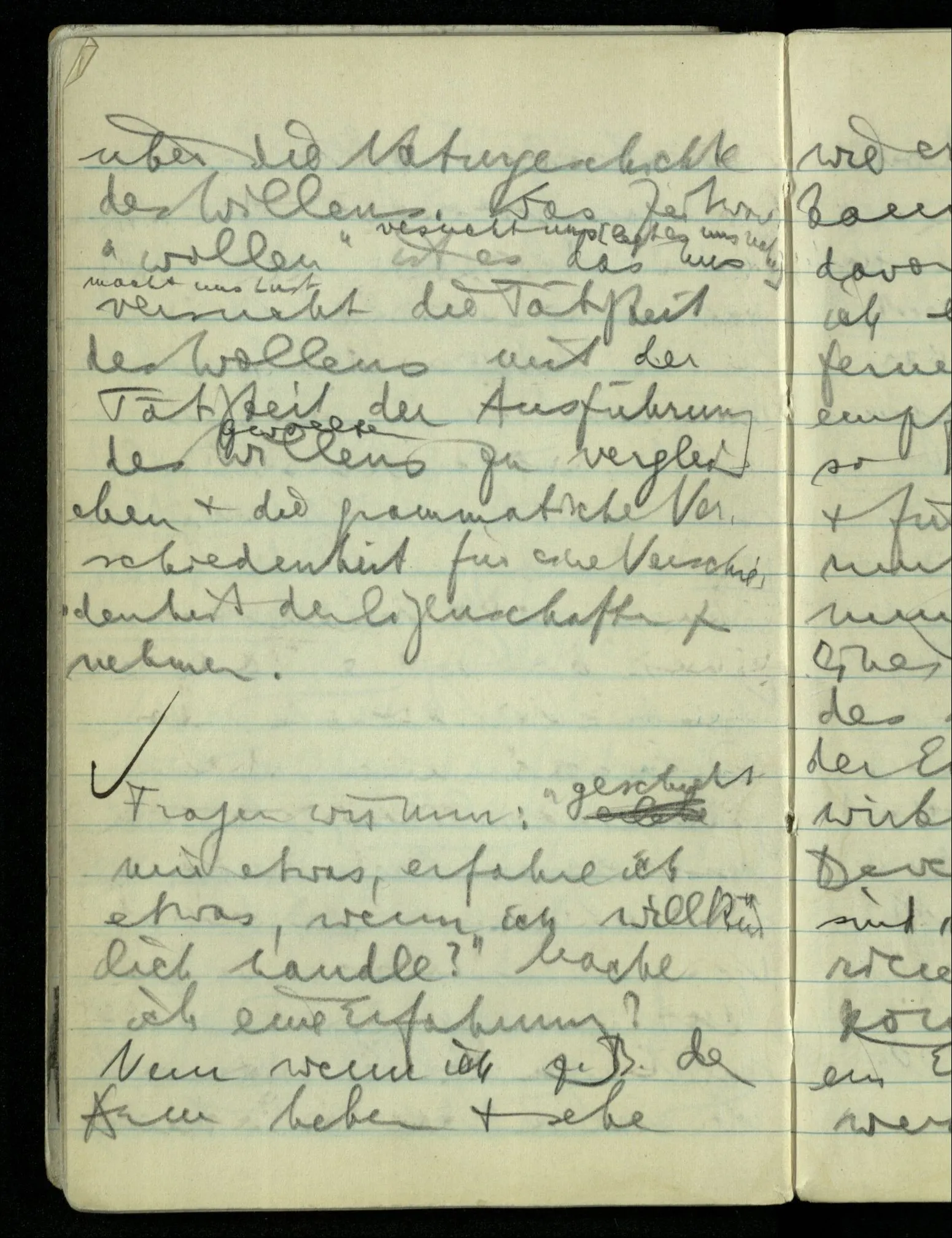 “Das Wollen ist auch nur eine Erfahrung”, möchte ich sagen (der ‘Wille’ auch nur ‘Vorstellung’). Er kommt, wenn er kommt & ich kann ihn nicht herbeiführen.